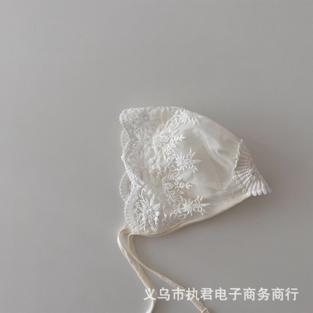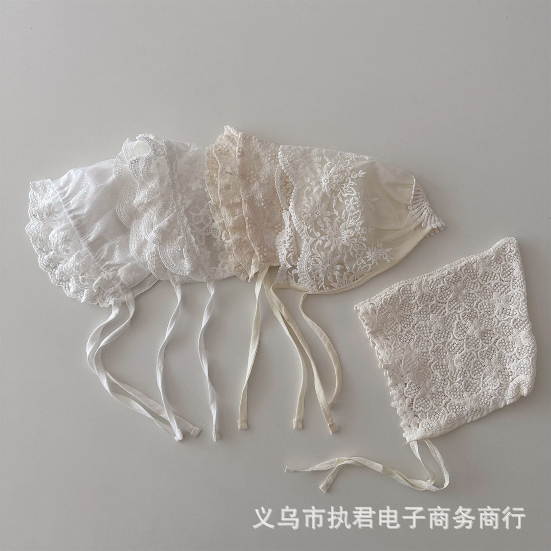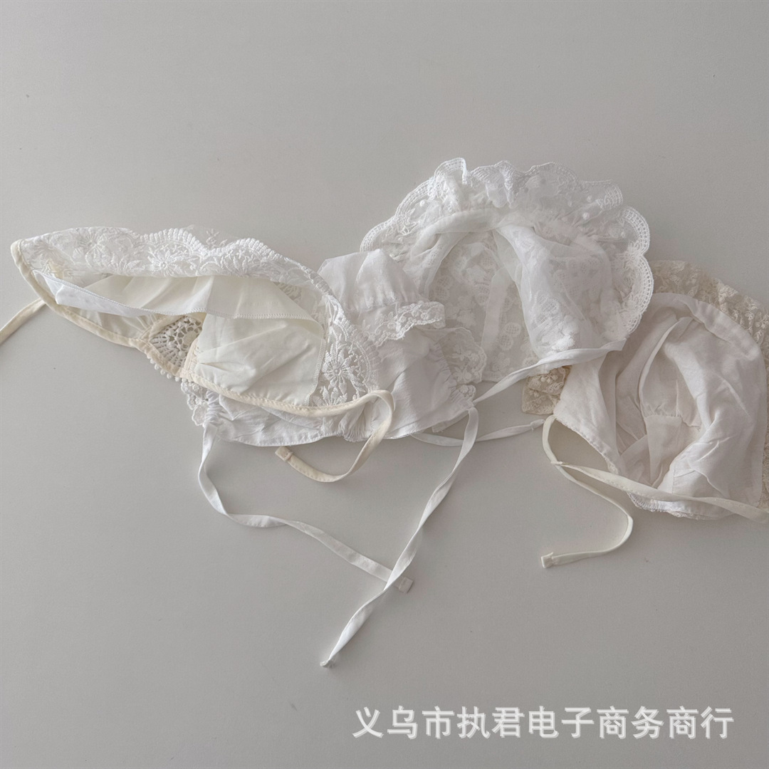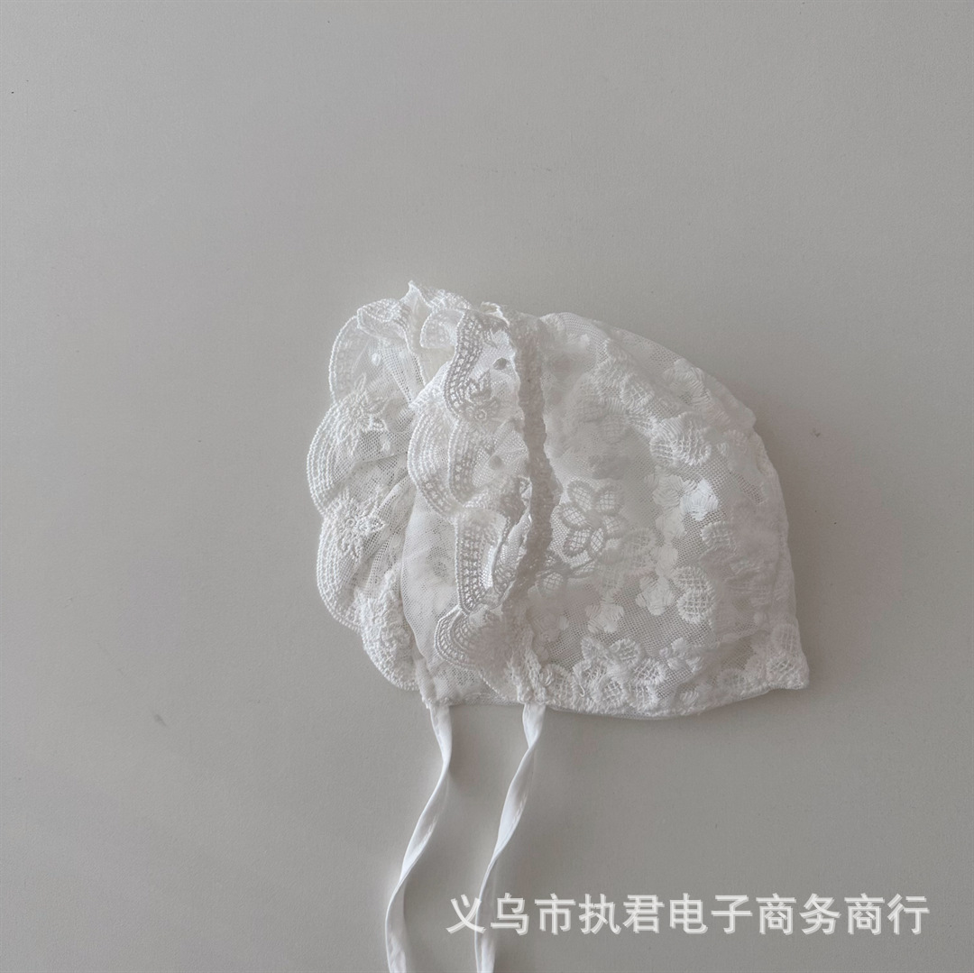 아기의 새로운 레이스 중공 통기성 풀오버 캡 아기의 서양식 레이스업 방풍 와이드 챙 0 ~ 6 개월 태아 모자