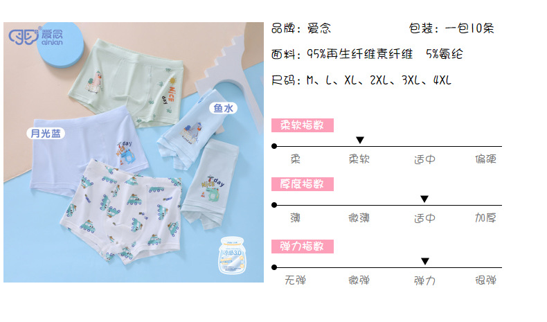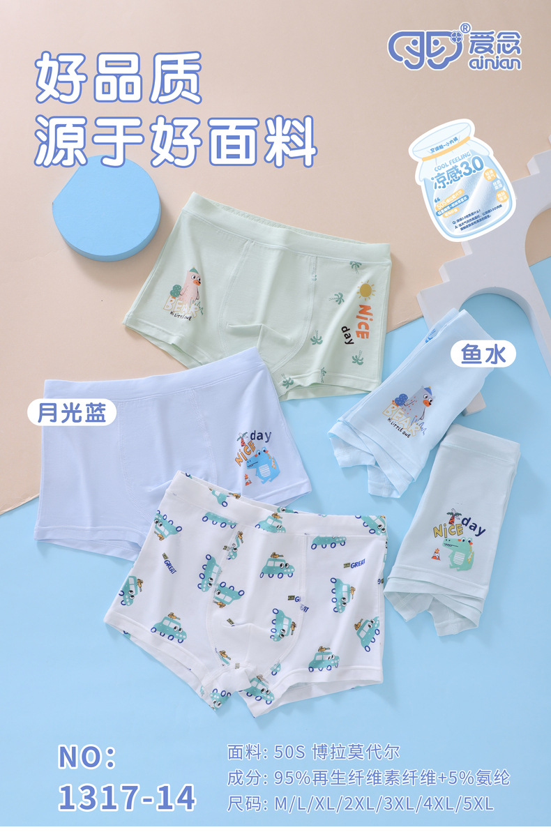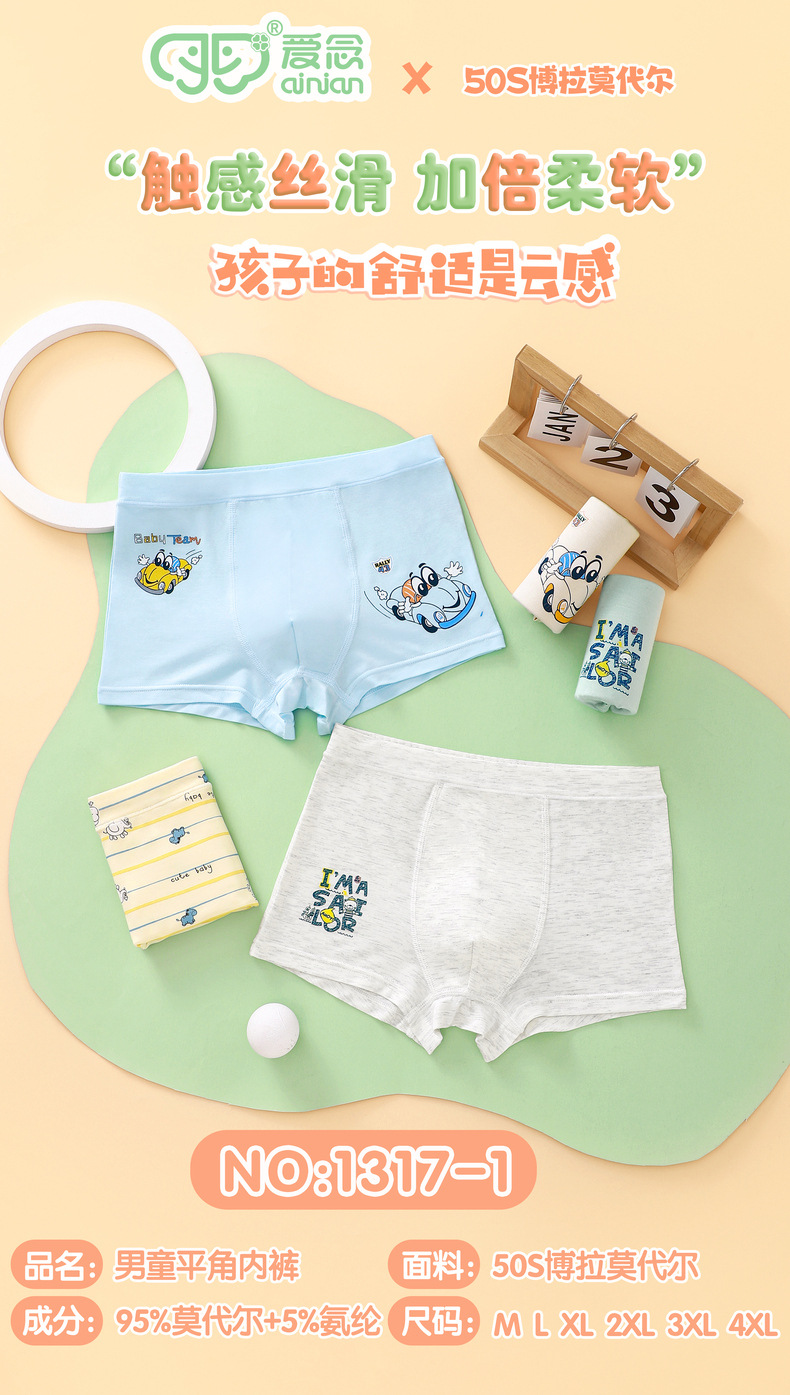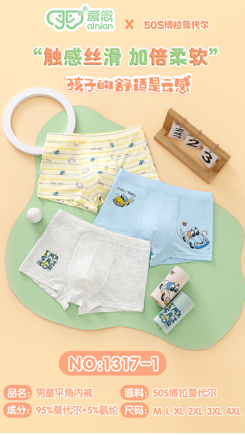 남아용 속옷 50S 보라모달 아동용 사각팬티 통기성 편안함 중대형 아동 청소년 사각팬티 M-5XL스토어 가기