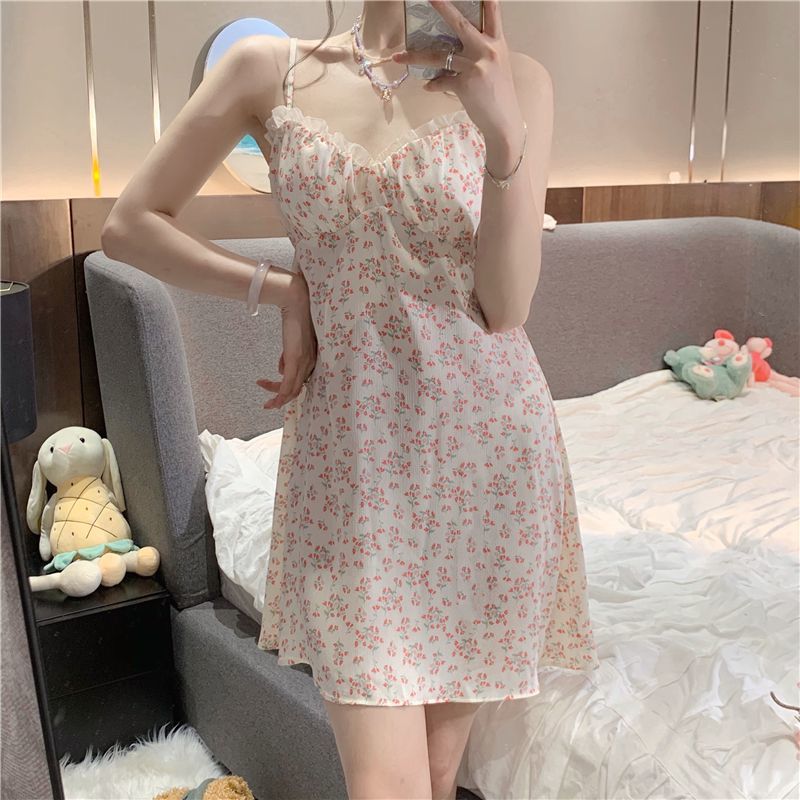 새로운 스타일 슬립 스커트 인터넷 인기 꽃 잠옷 얇은 간단한 잠옷 여자의 여름 가정 의류 여자의 치마 여름 여름스토어 가기
