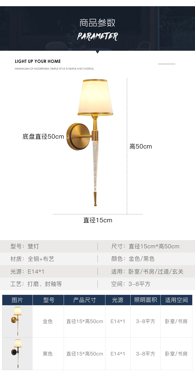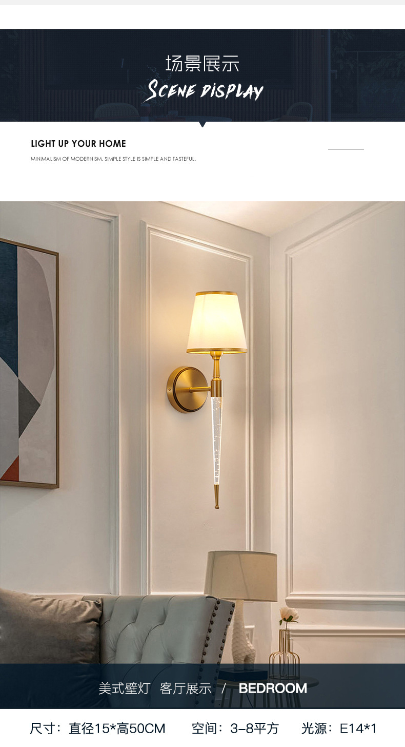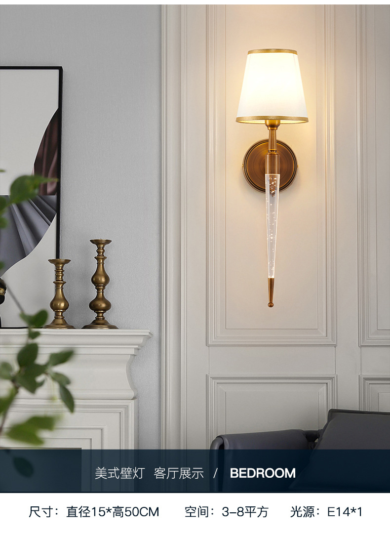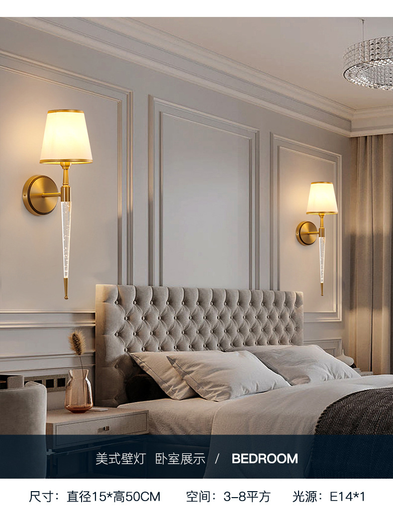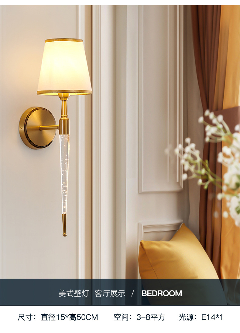 모든 구리 벽 램프 미국 간단한 크리스탈 램프 새로운 창조적 인 침실 침대 옆 램프 거실 통로 TV 배경 벽 램프스토어 가기
