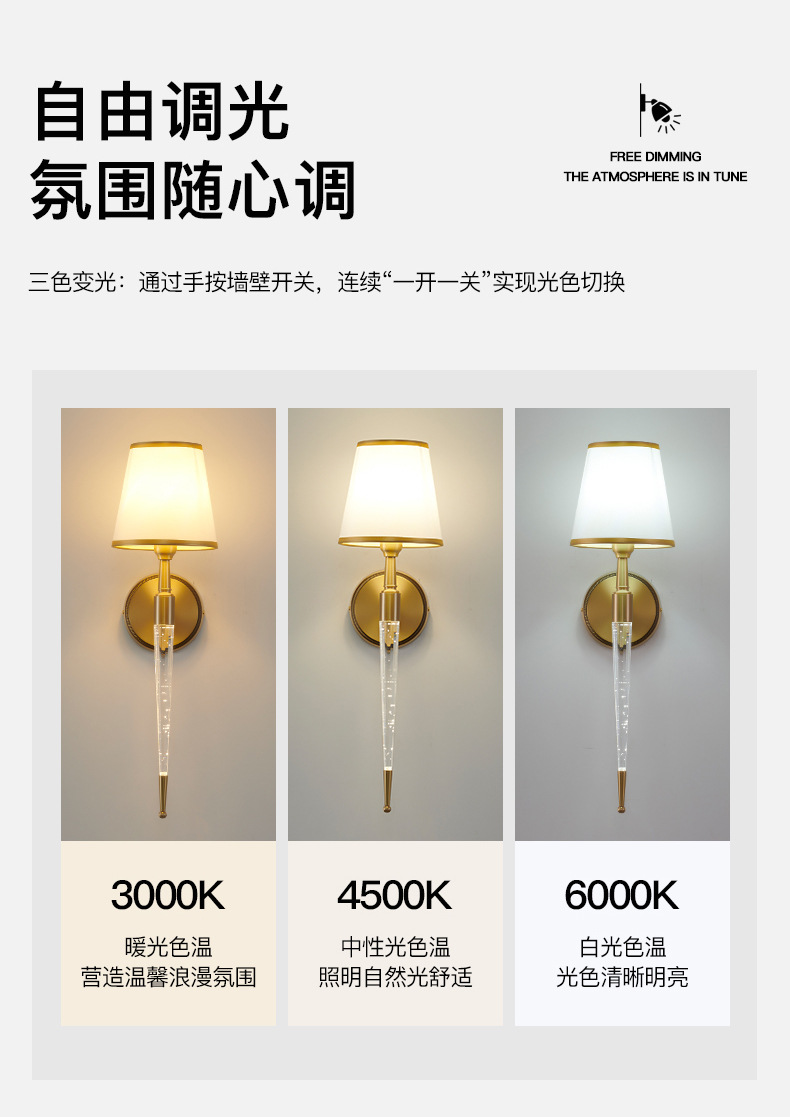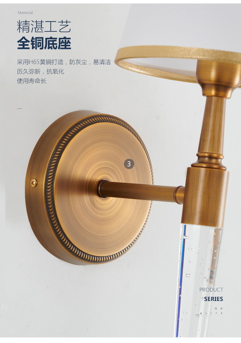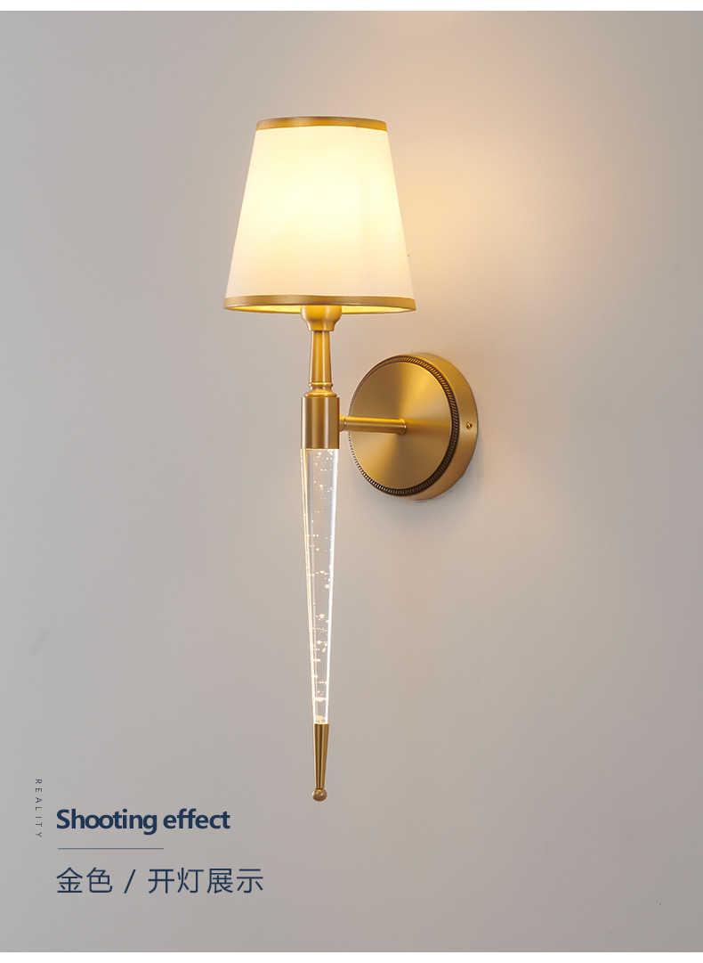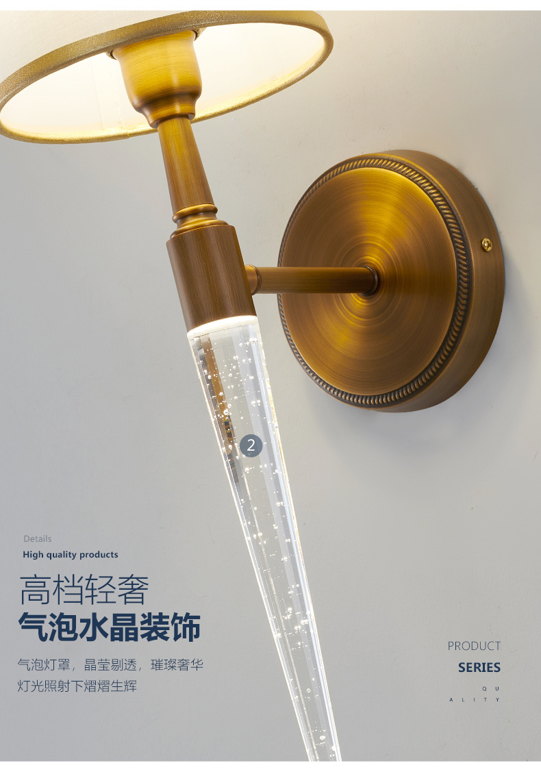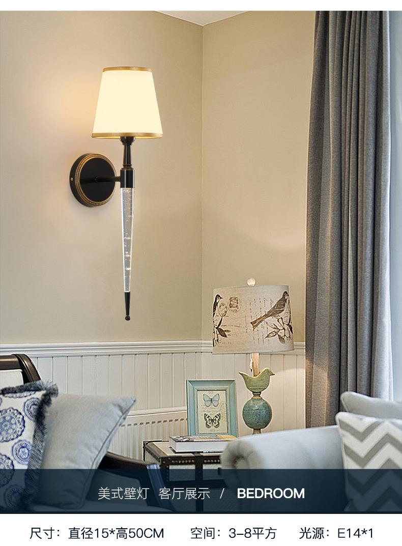 모든 구리 벽 램프 미국 간단한 크리스탈 램프 새로운 창조적 인 침실 침대 옆 램프 거실 통로 TV 배경 벽 램프