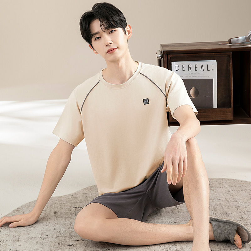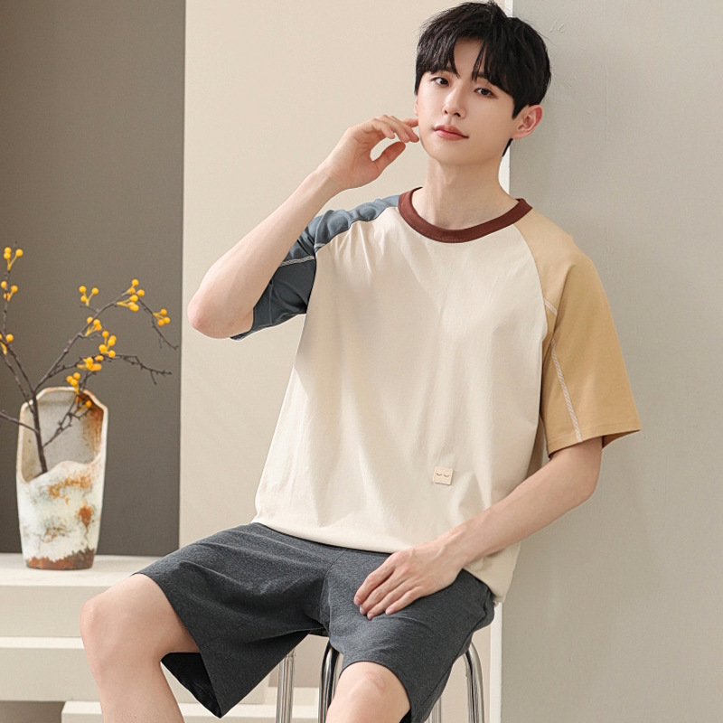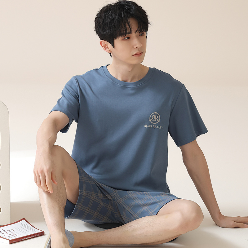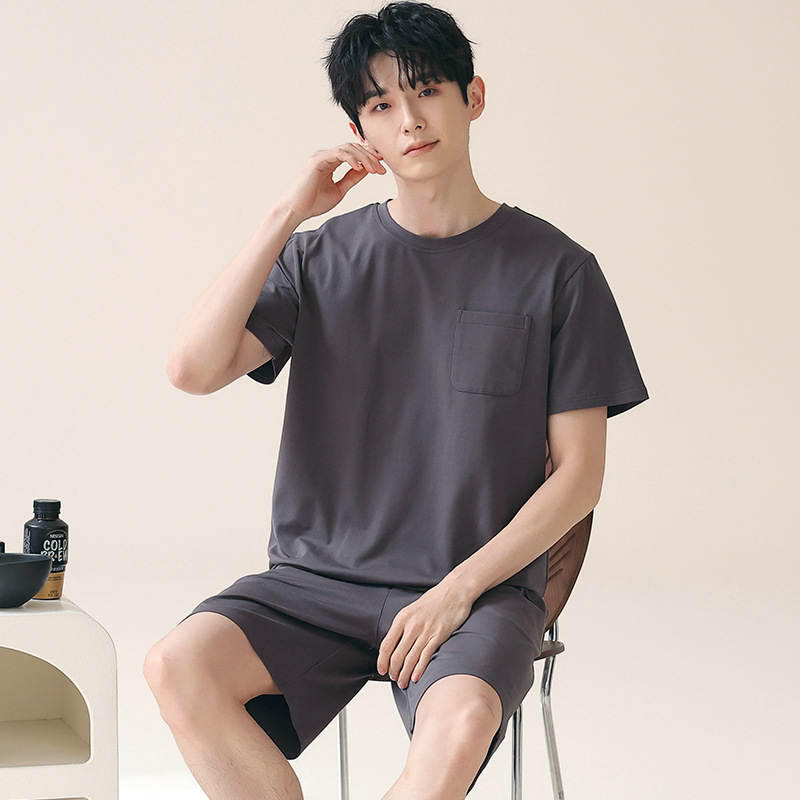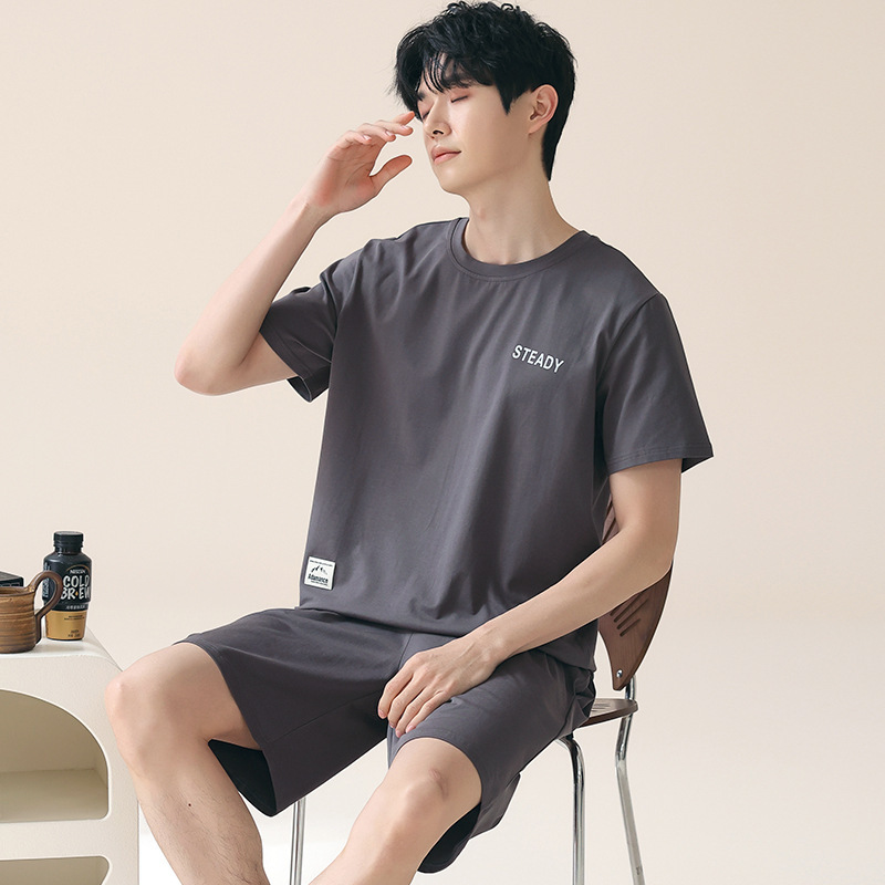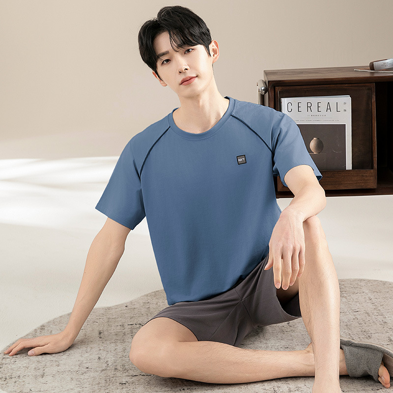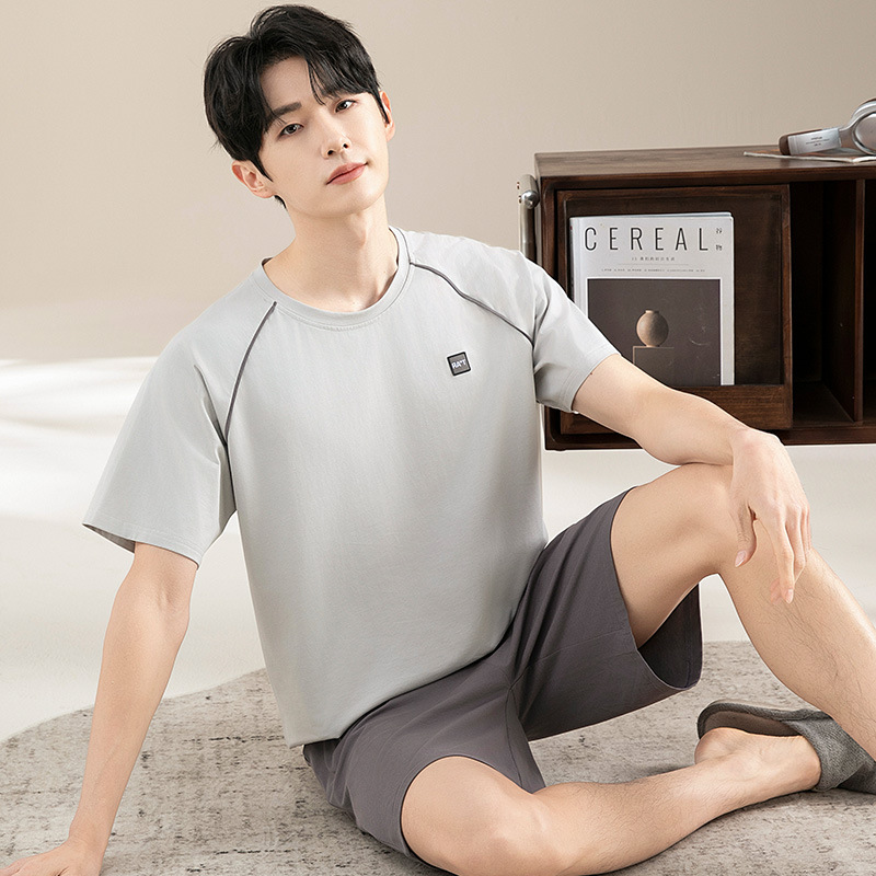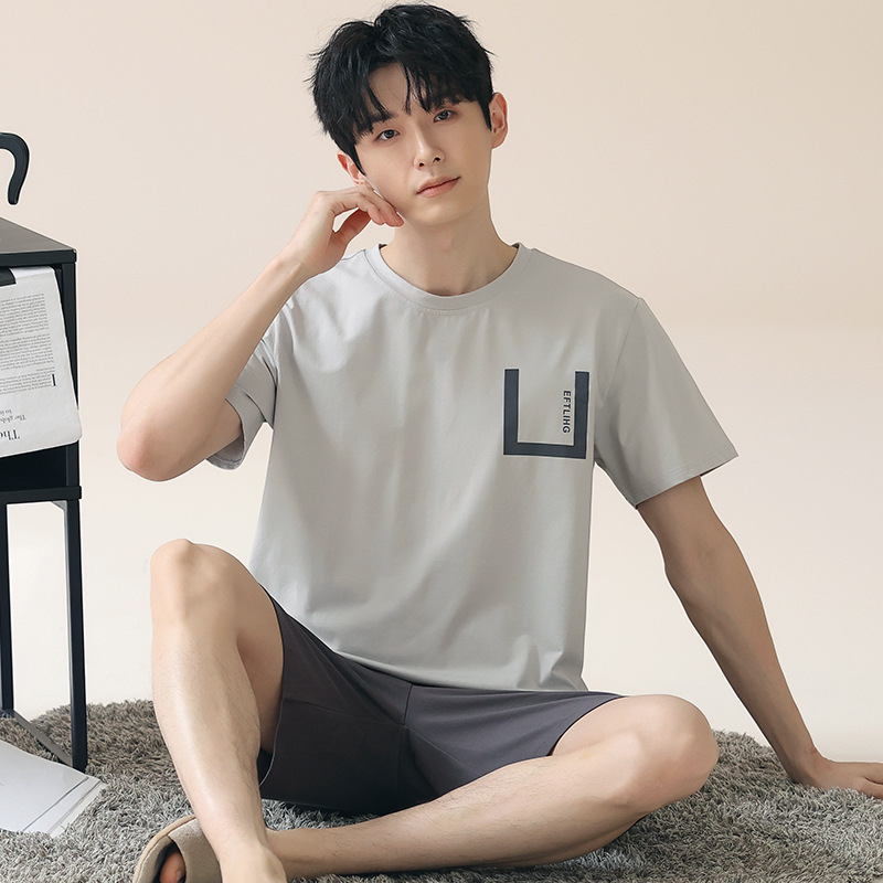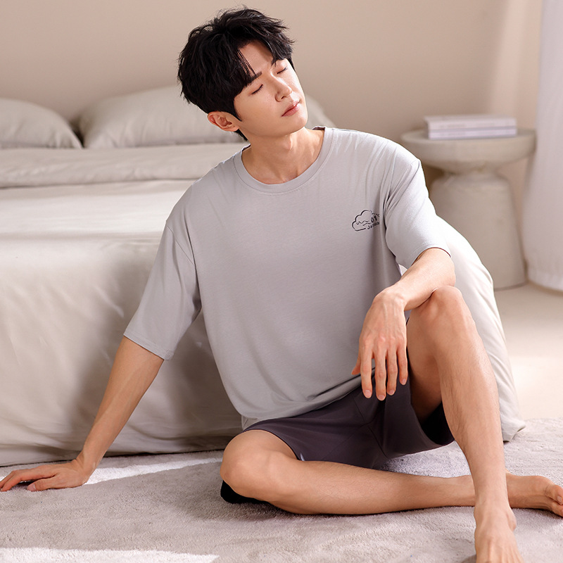 모달 남자의 잠옷 반팔 반바지 여름 얇은 가정 의류 캐주얼 남자의 여름 겉옷 세트 새로운 스타일스토어 가기