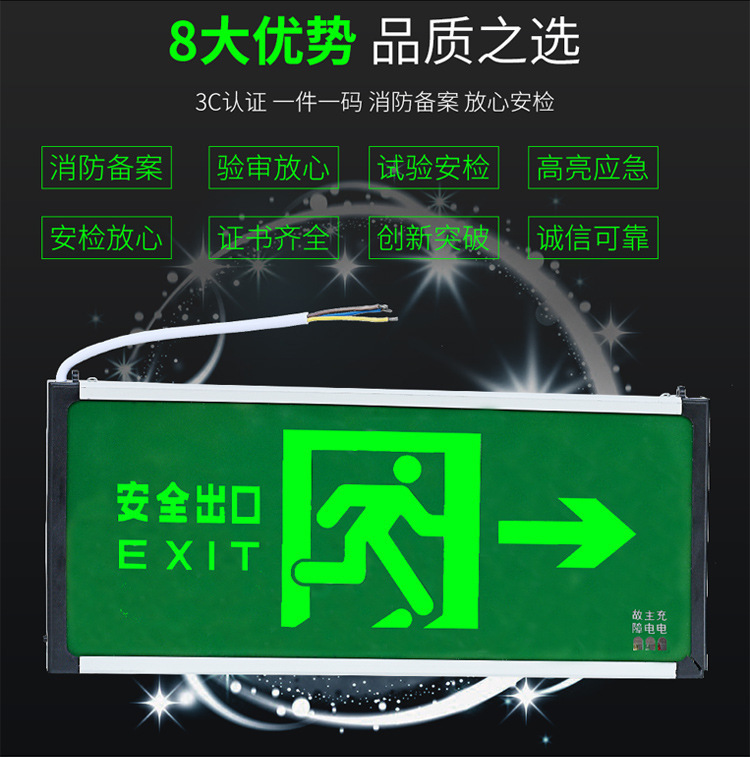 새로운 국가 표준 화재 비상 조명 LED 플러그인 안전 출구 표시 플레이트 대피 레벨 통로 표시 플레이트