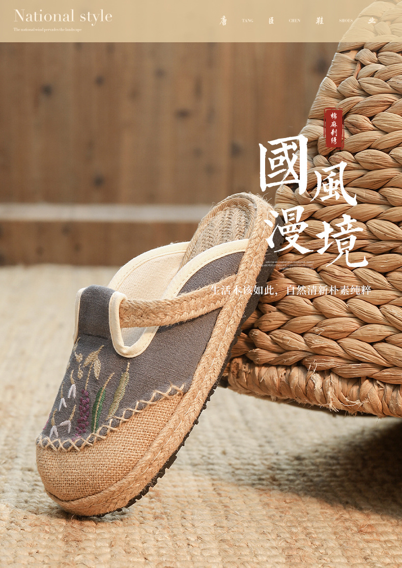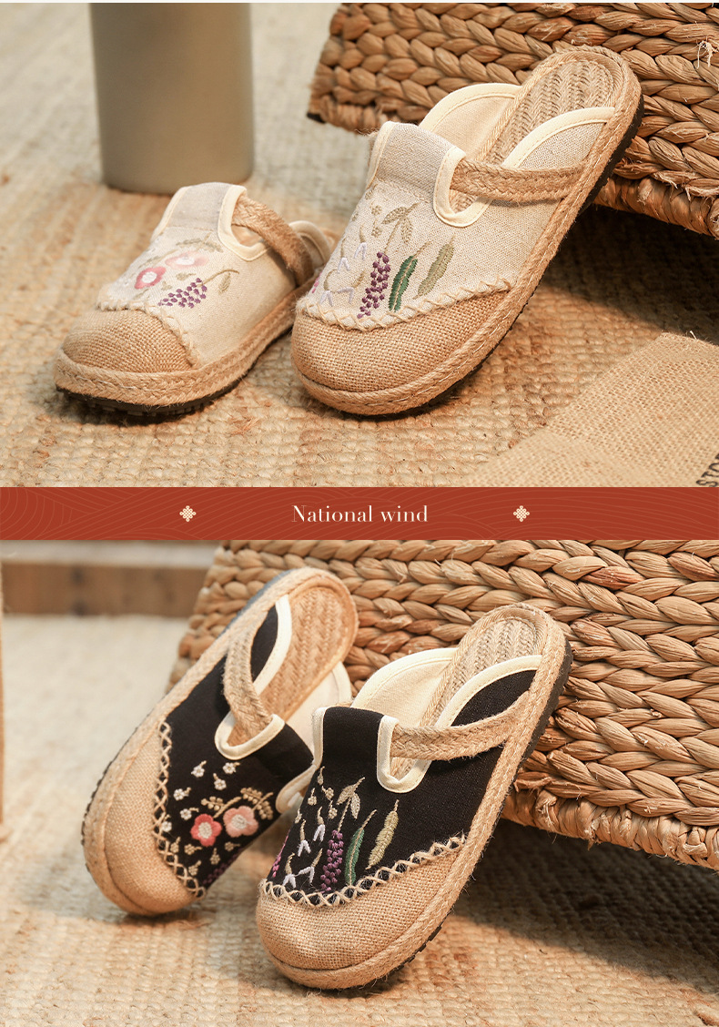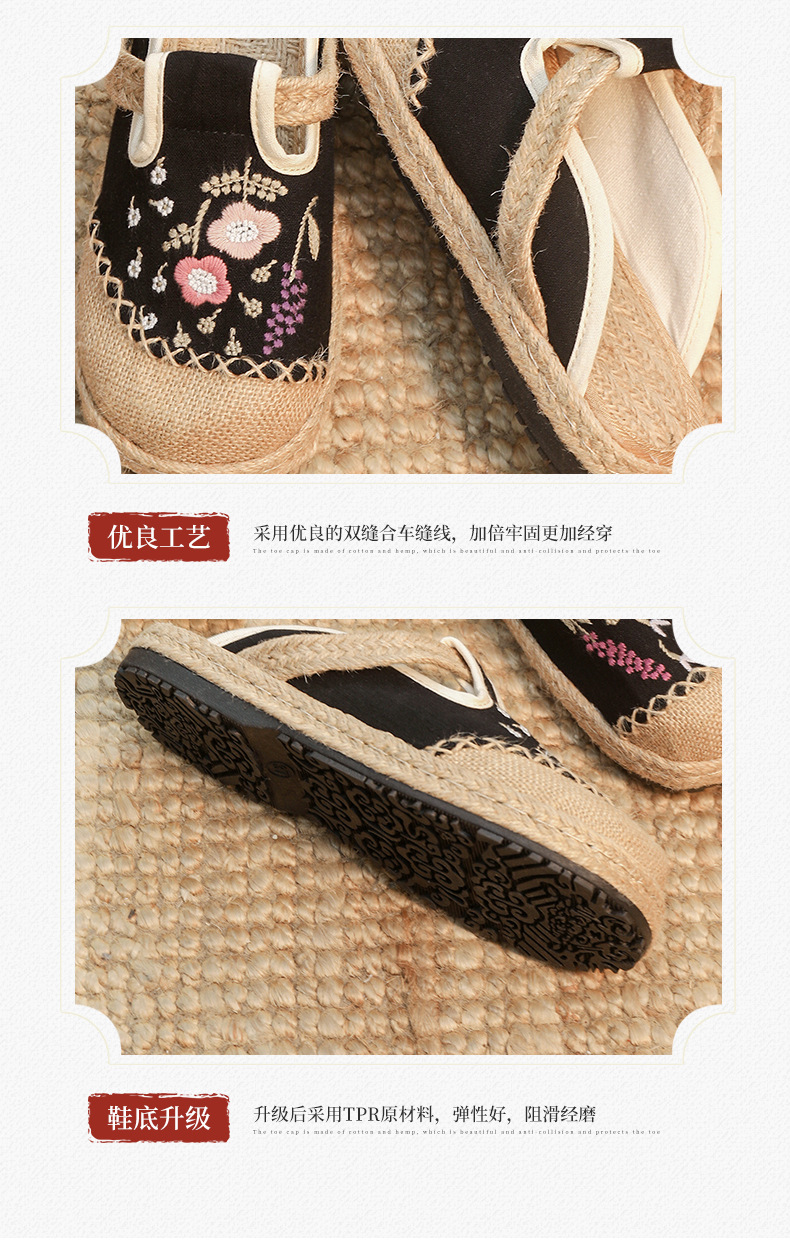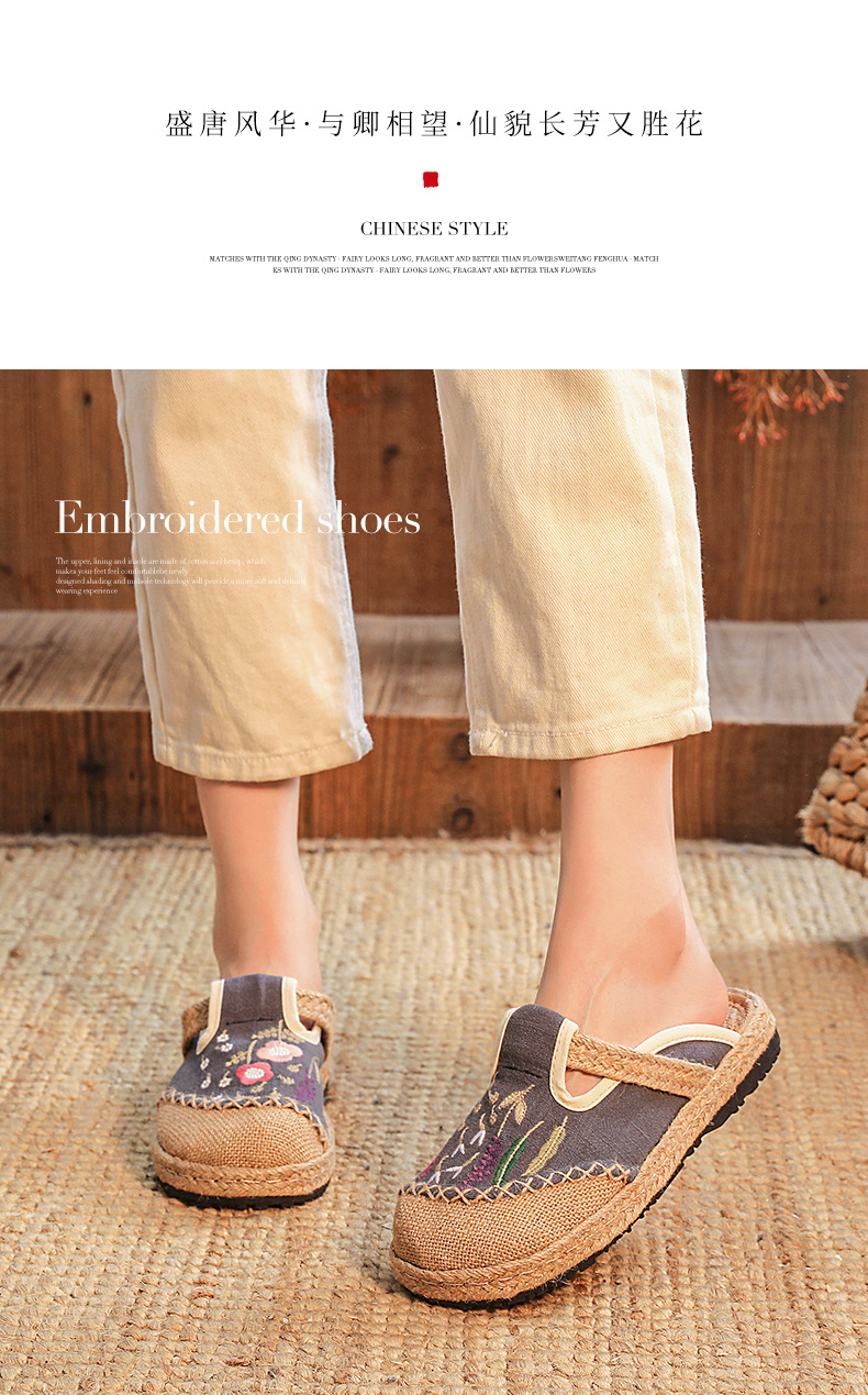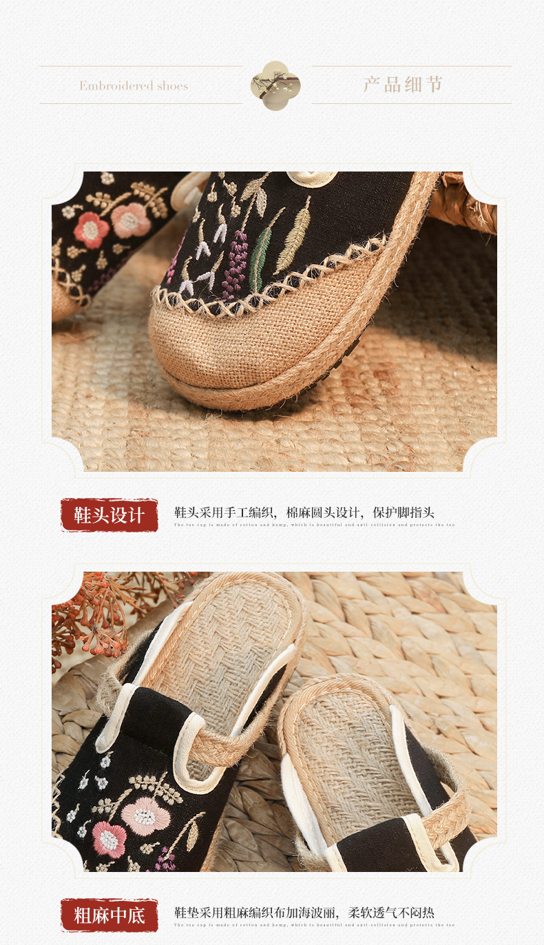 여름 새로운 민족 스타일 자수 슬리퍼 여성용 겉옷 천 신발 여성용 손으로 짠 린넨 밀짚 신발스토어 가기
