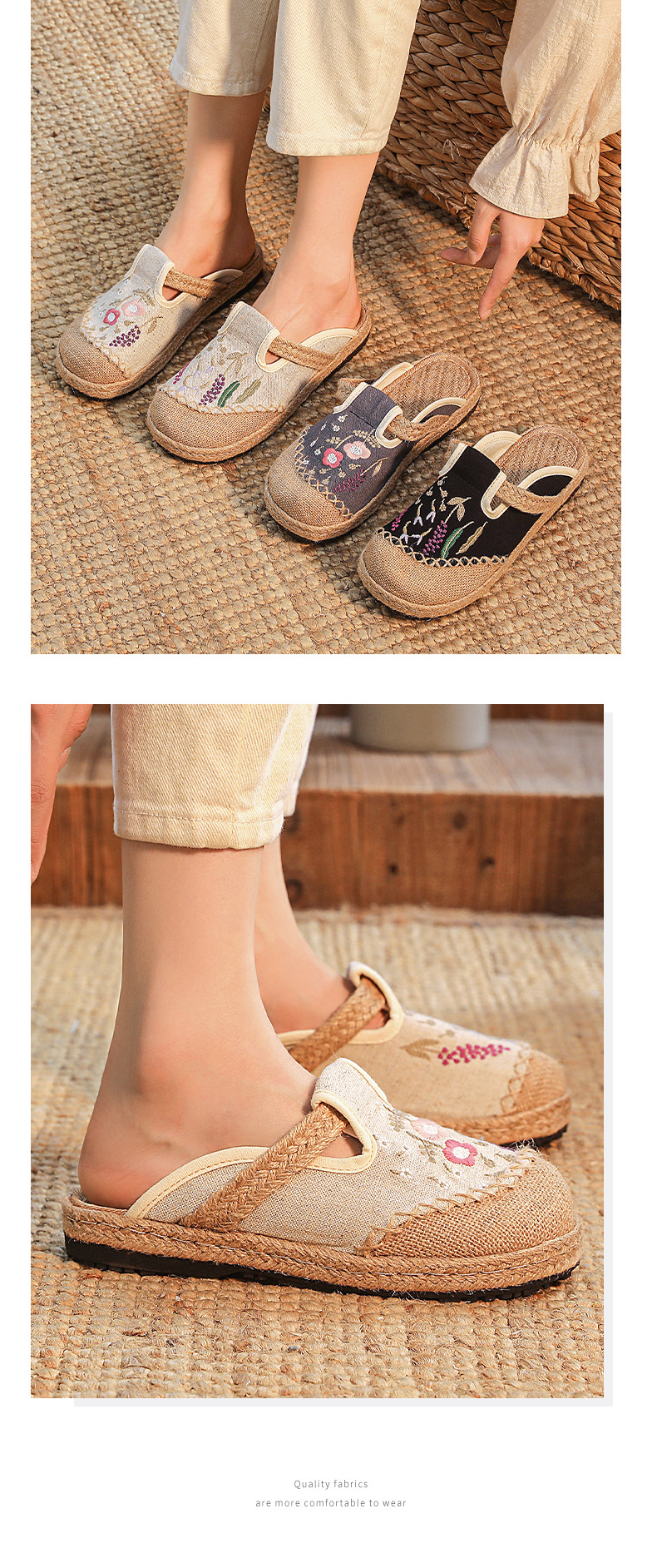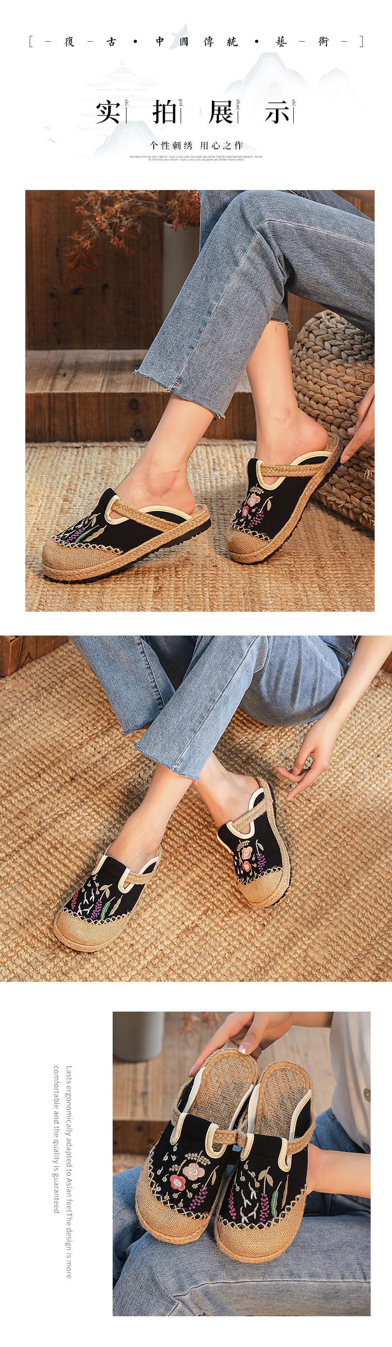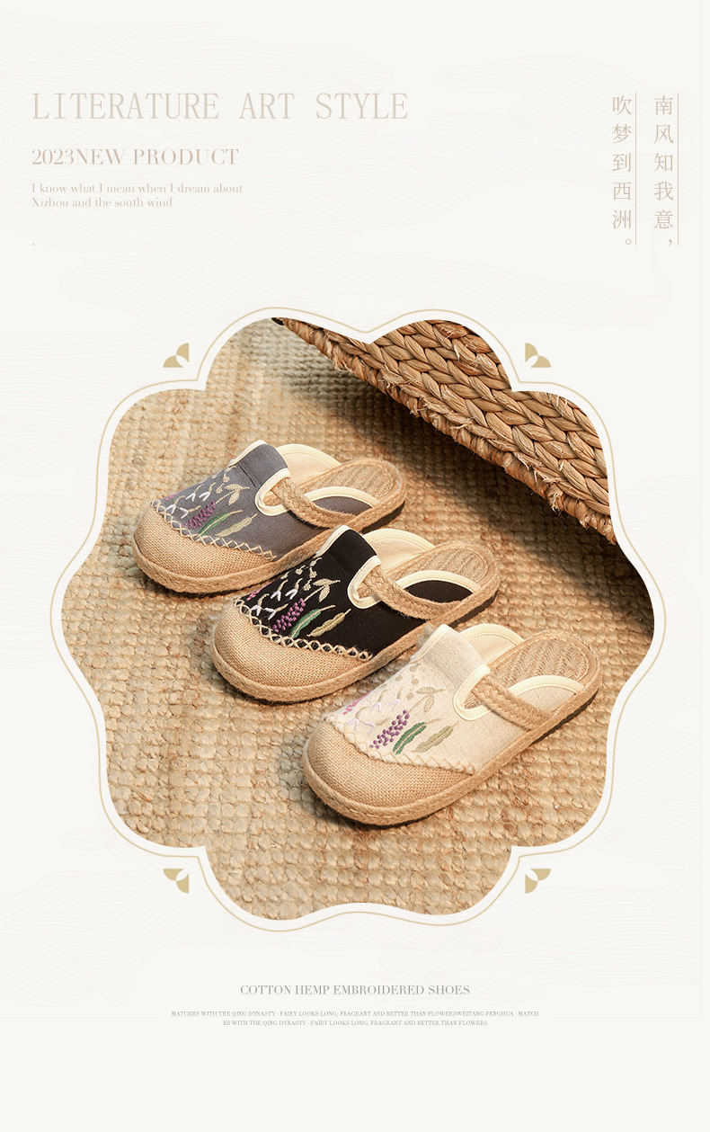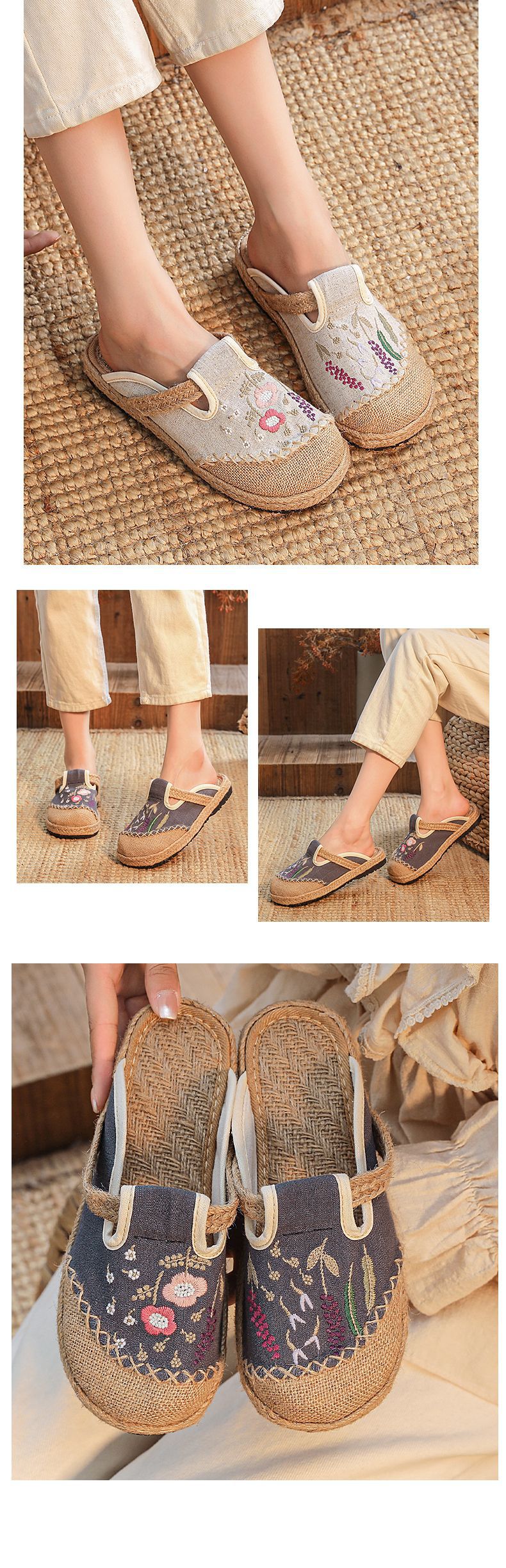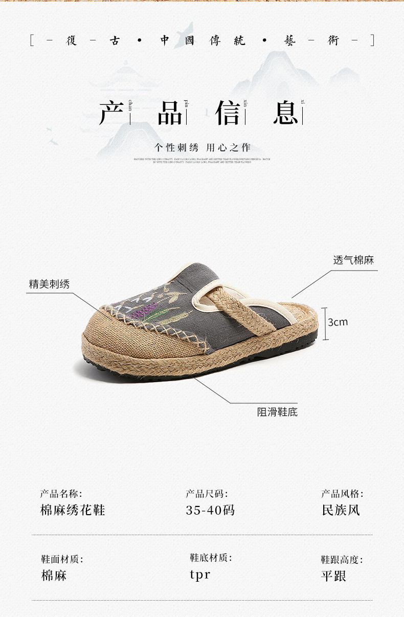 여름 새로운 민족 스타일 자수 슬리퍼 여성용 겉옷 천 신발 여성용 손으로 짠 린넨 밀짚 신발스토어 가기