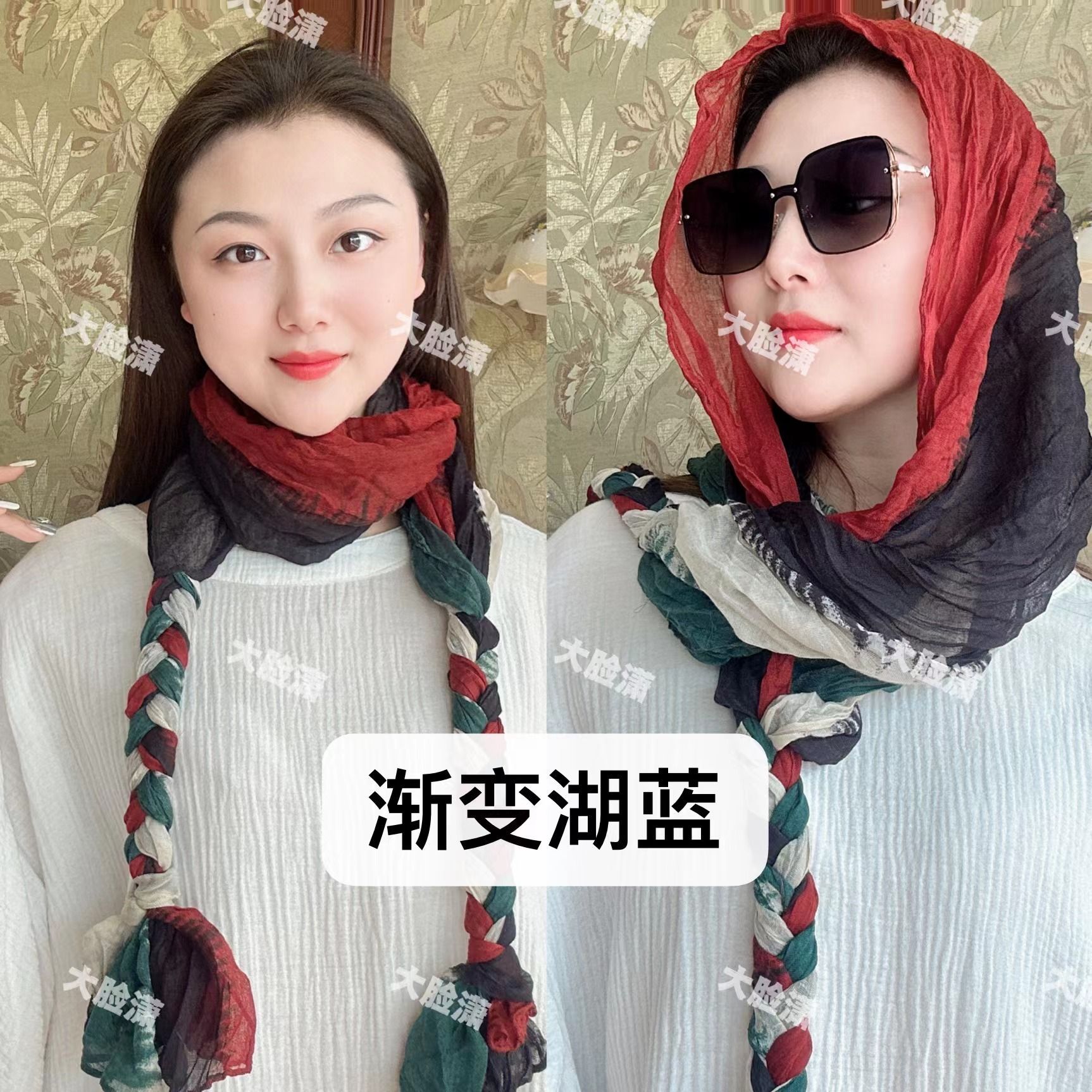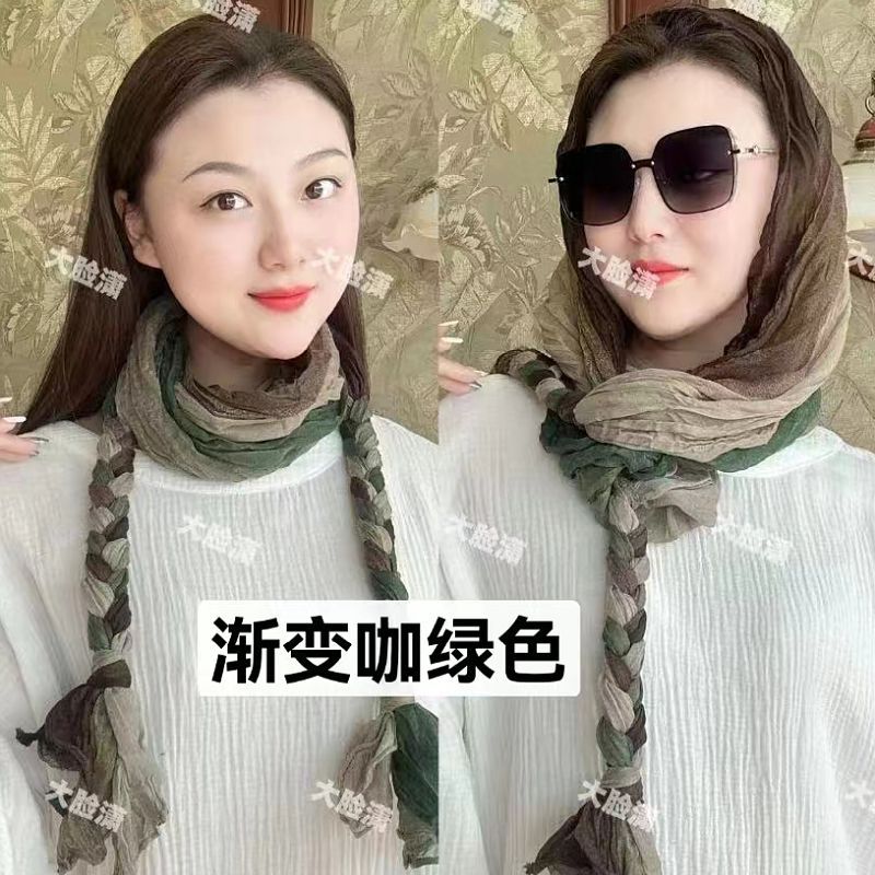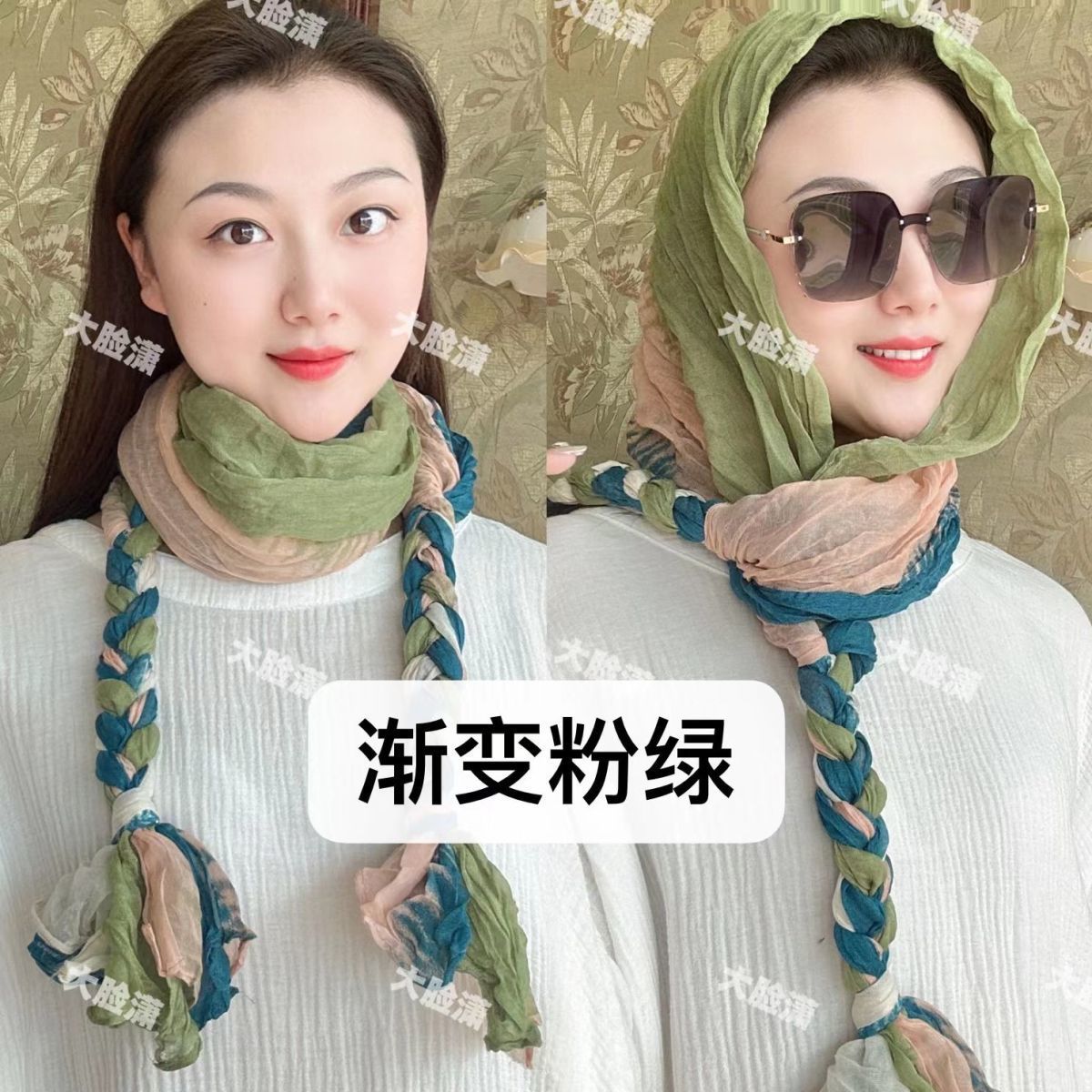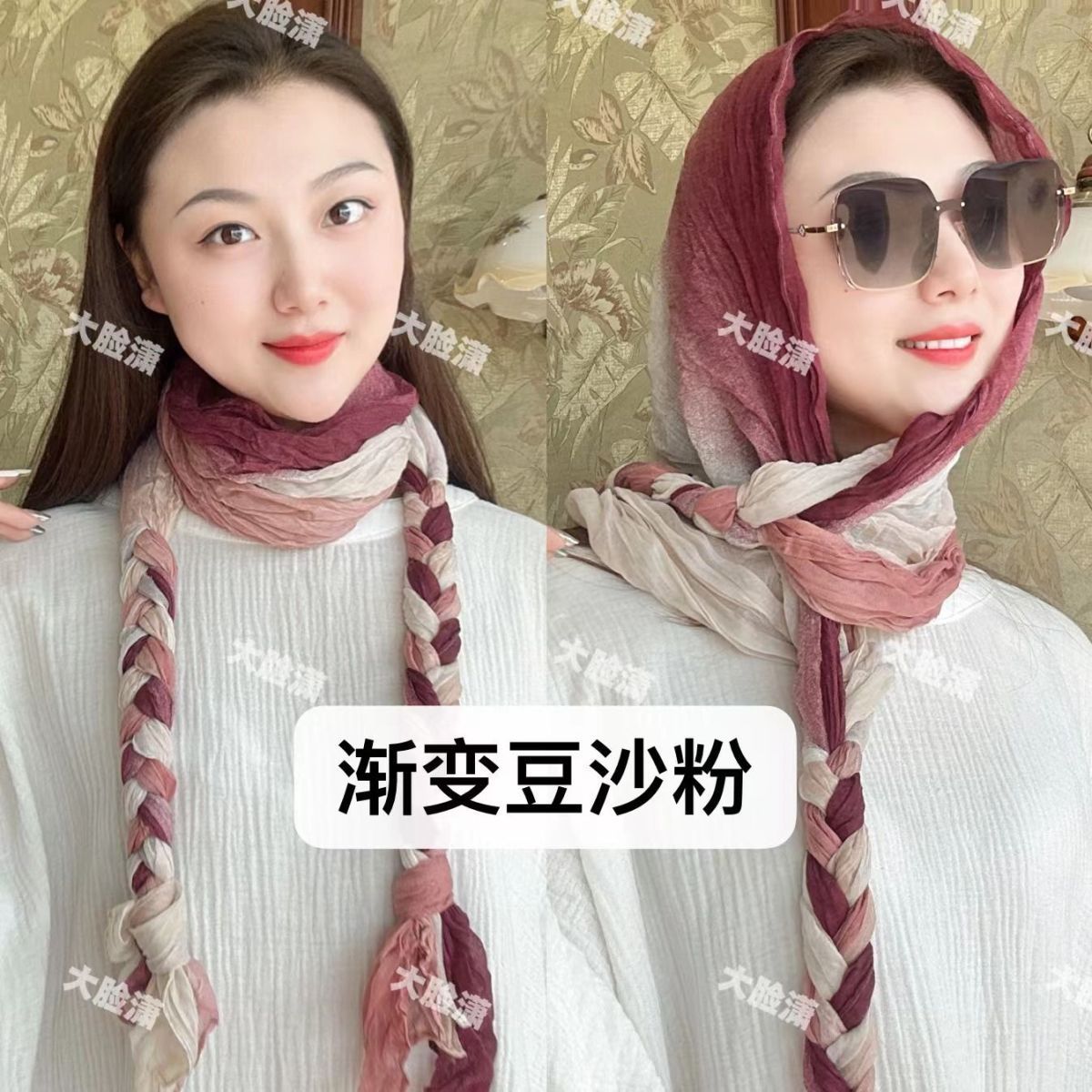 새로운 트위스트 브레이드 모자 주름 여성 가방 머리 스카프 만능 스카프 레드 네트 스카프 면과 린넨 모자 자외선 차단제 방풍