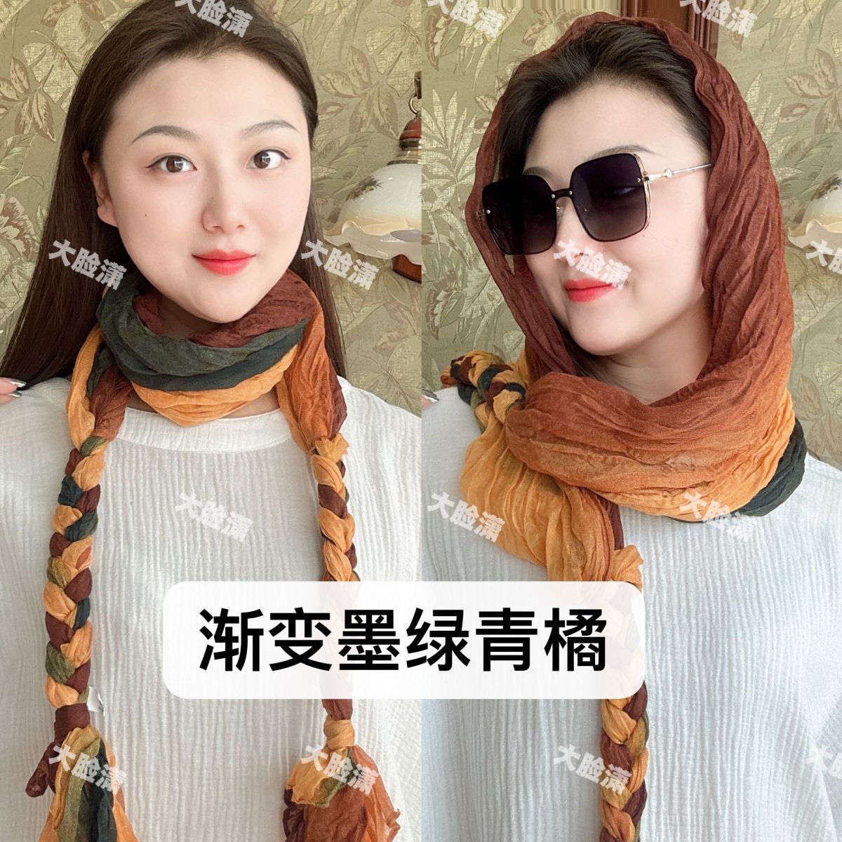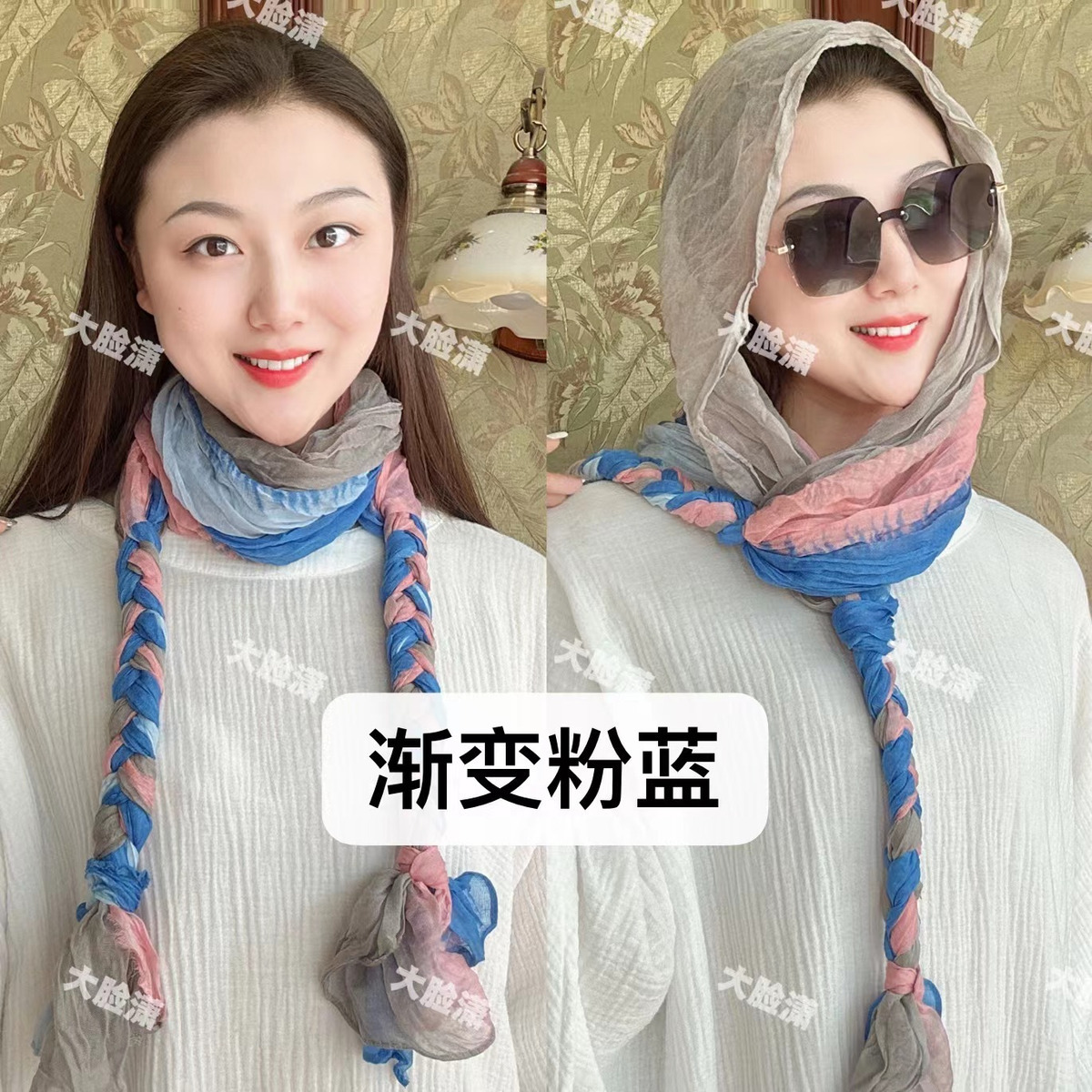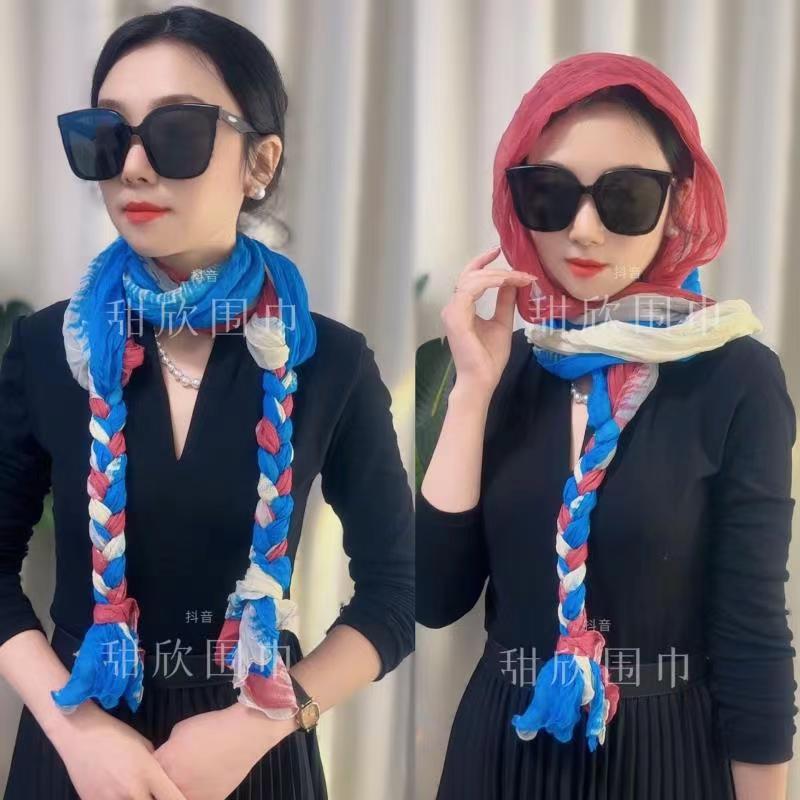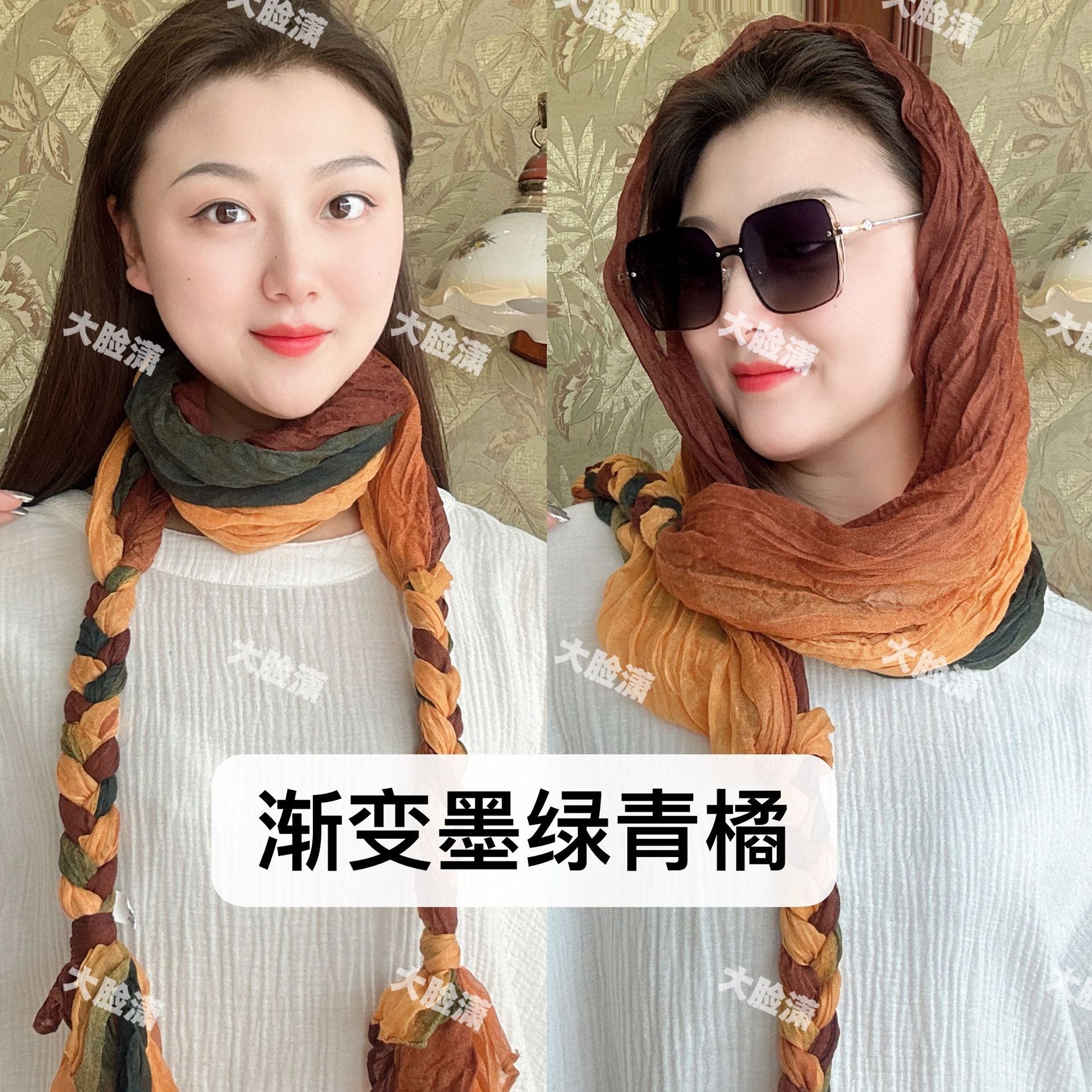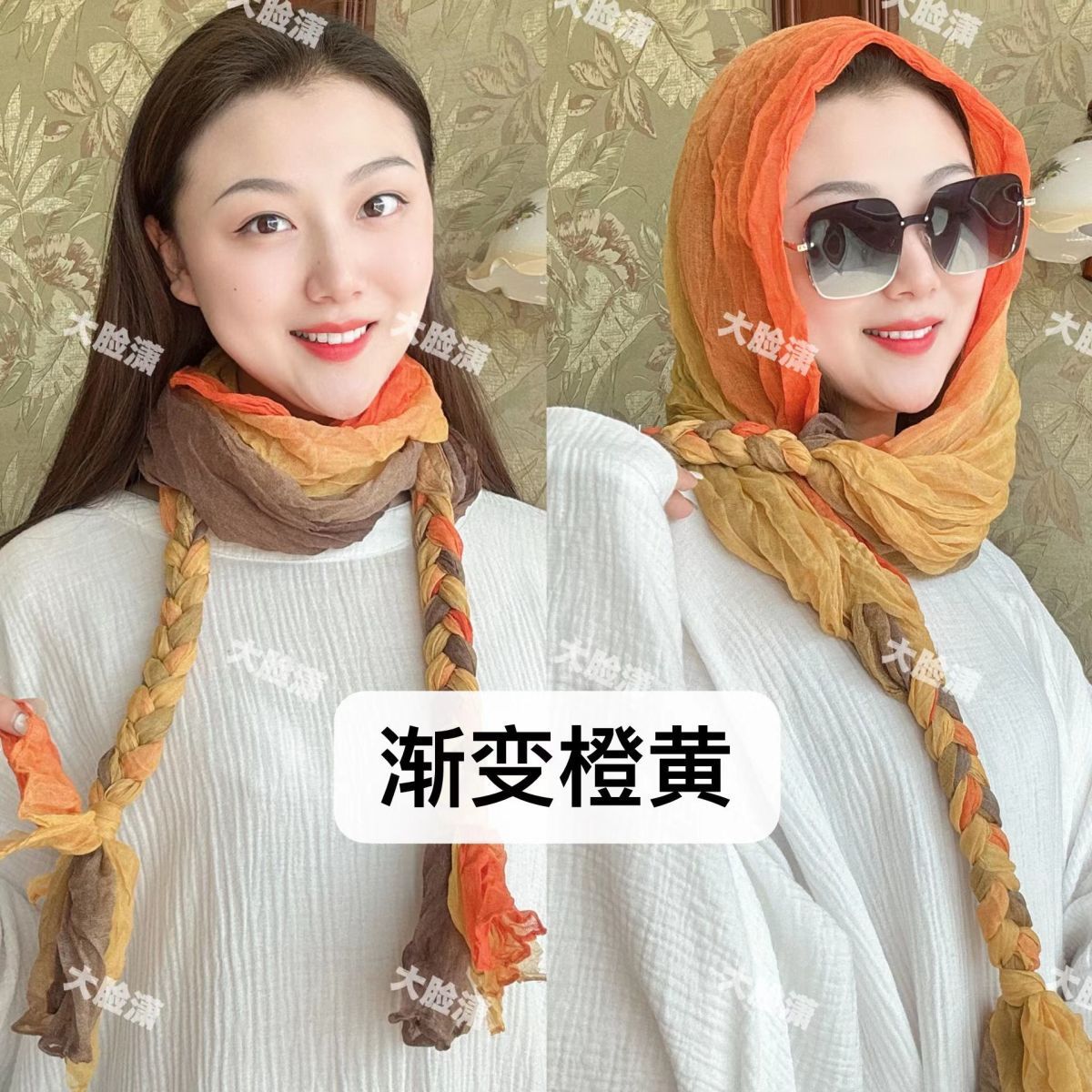 새로운 트위스트 브레이드 모자 주름 여성 가방 머리 스카프 만능 스카프 레드 네트 스카프 면과 린넨 모자 자외선 차단제 방풍