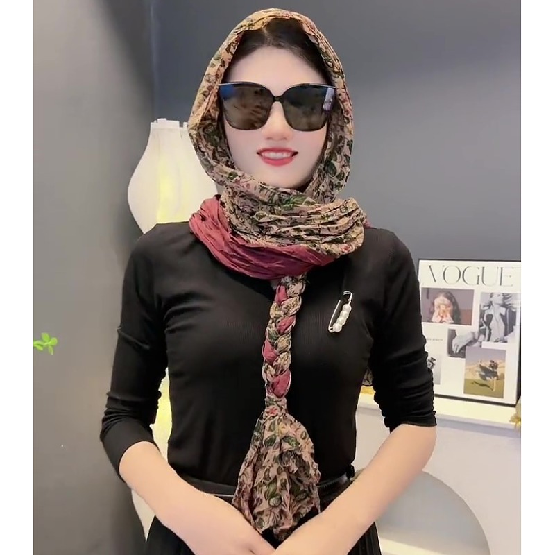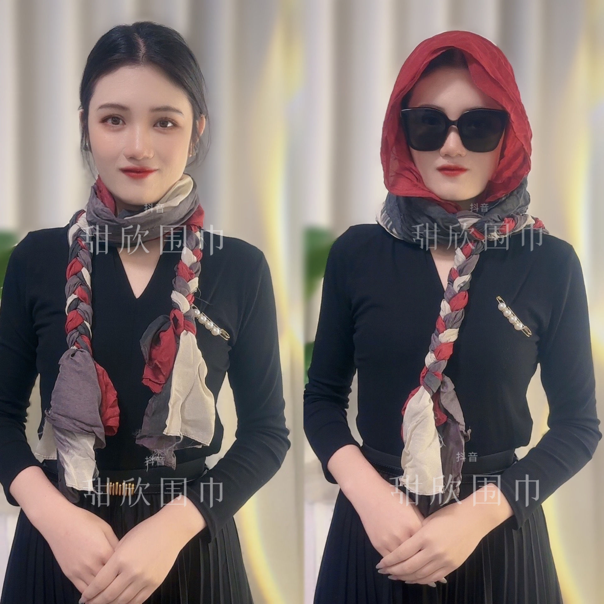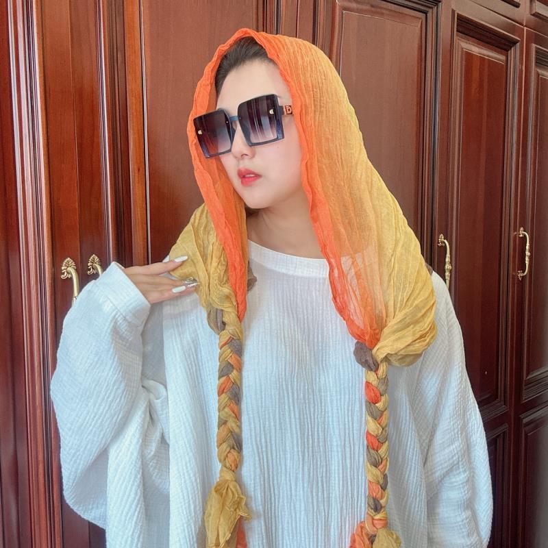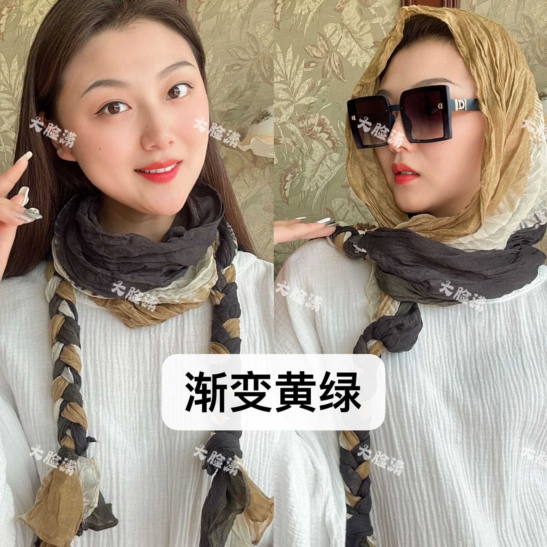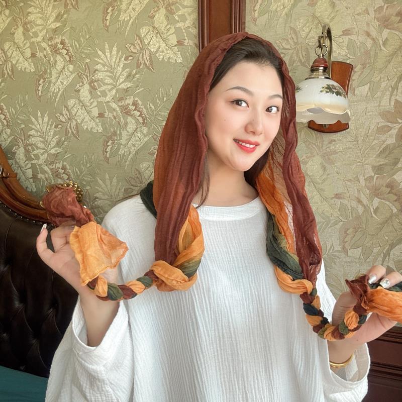 새로운 트위스트 브레이드 모자 주름 여성 가방 머리 스카프 만능 스카프 레드 네트 스카프 면과 린넨 모자 자외선 차단제 방풍