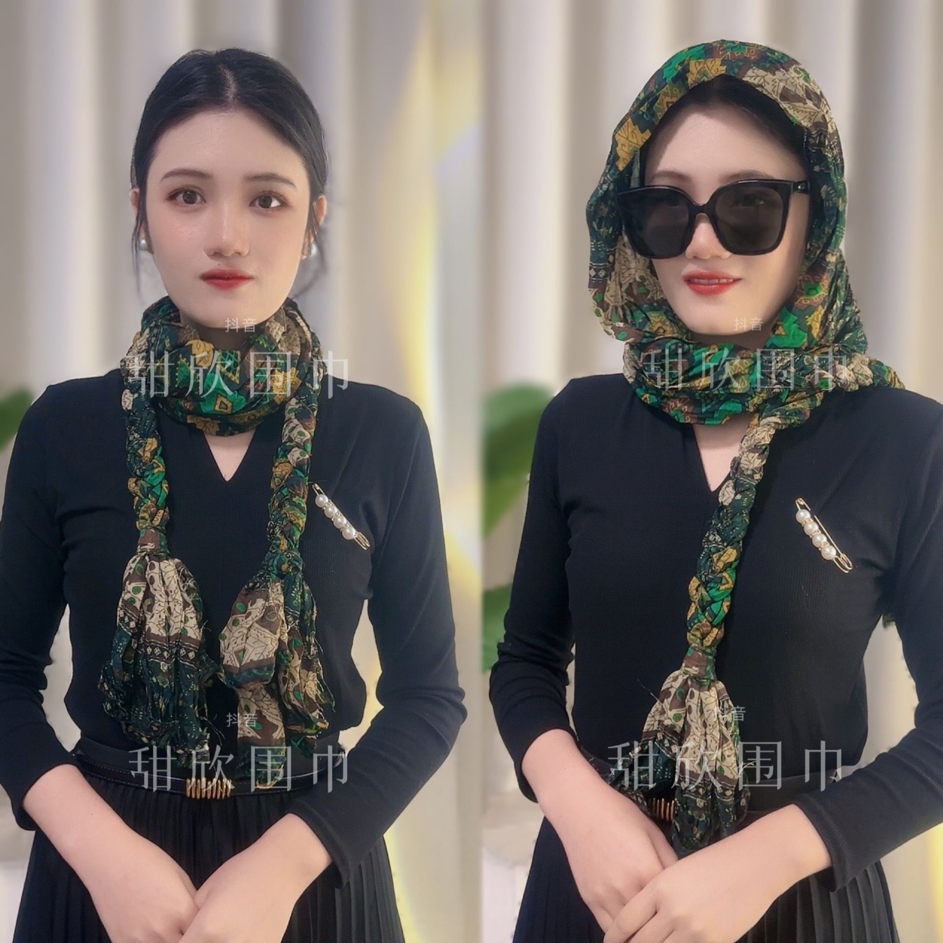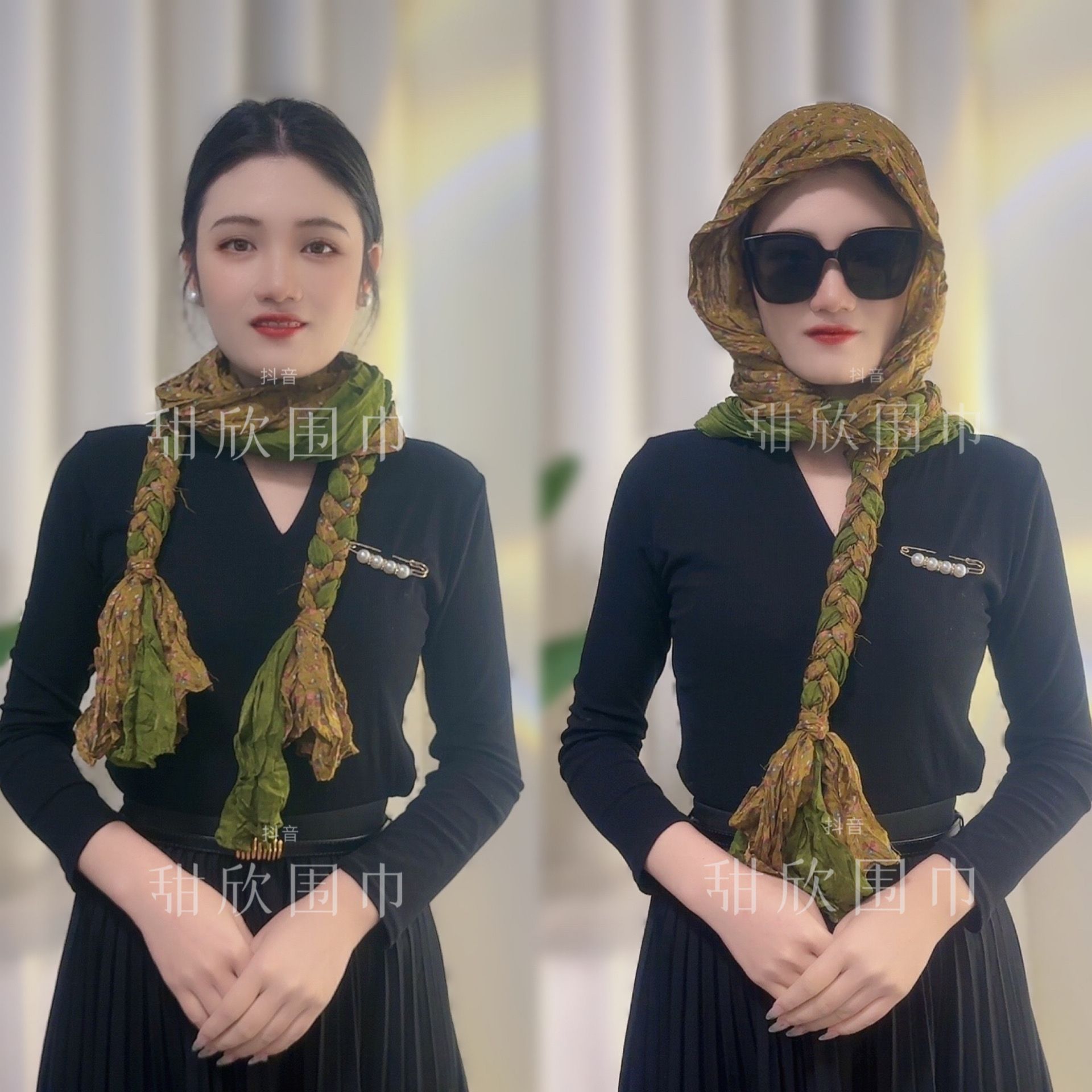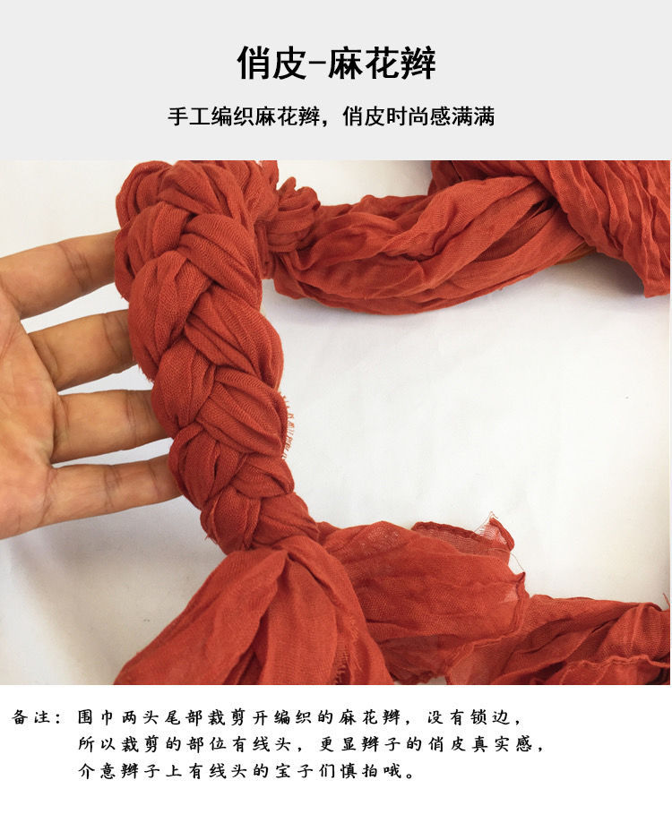 새로운 트위스트 브레이드 모자 주름 여성 가방 머리 스카프 만능 스카프 레드 네트 스카프 면과 린넨 모자 자외선 차단제 방풍스토어 가기