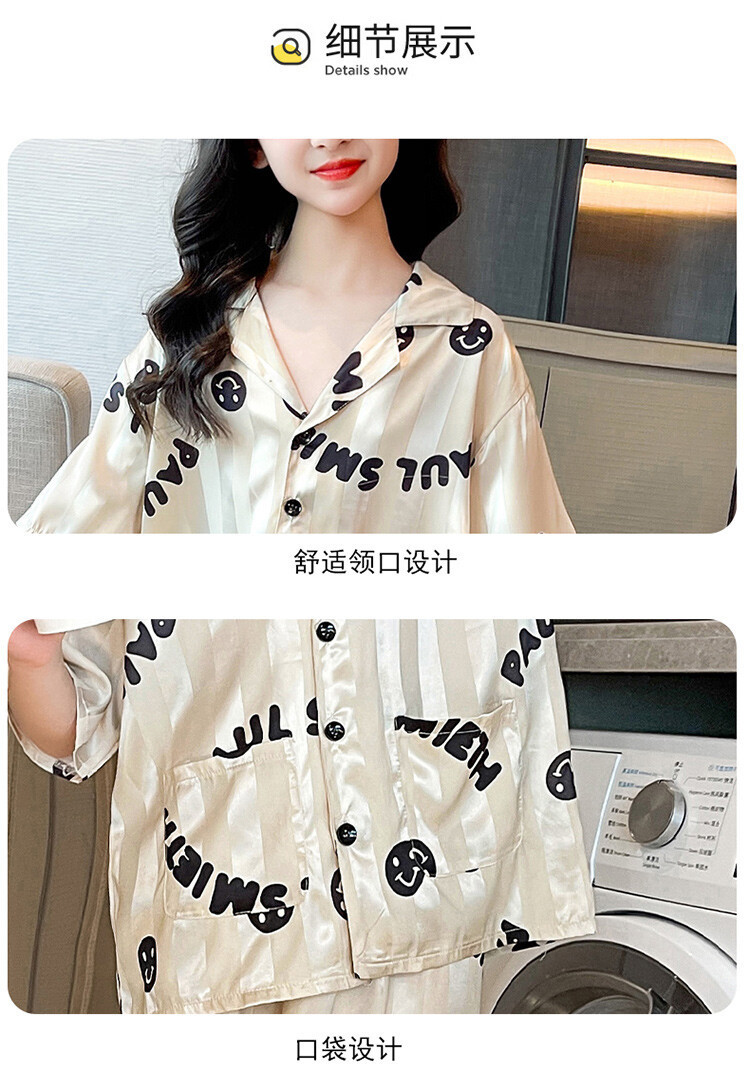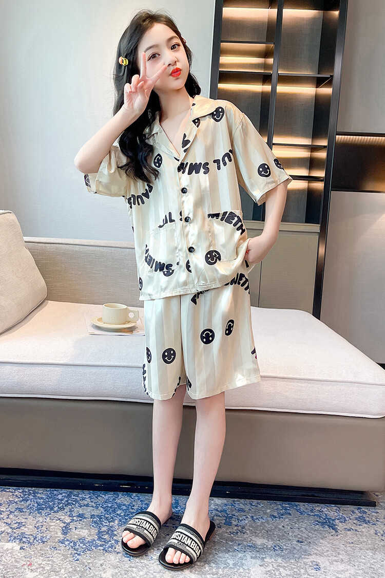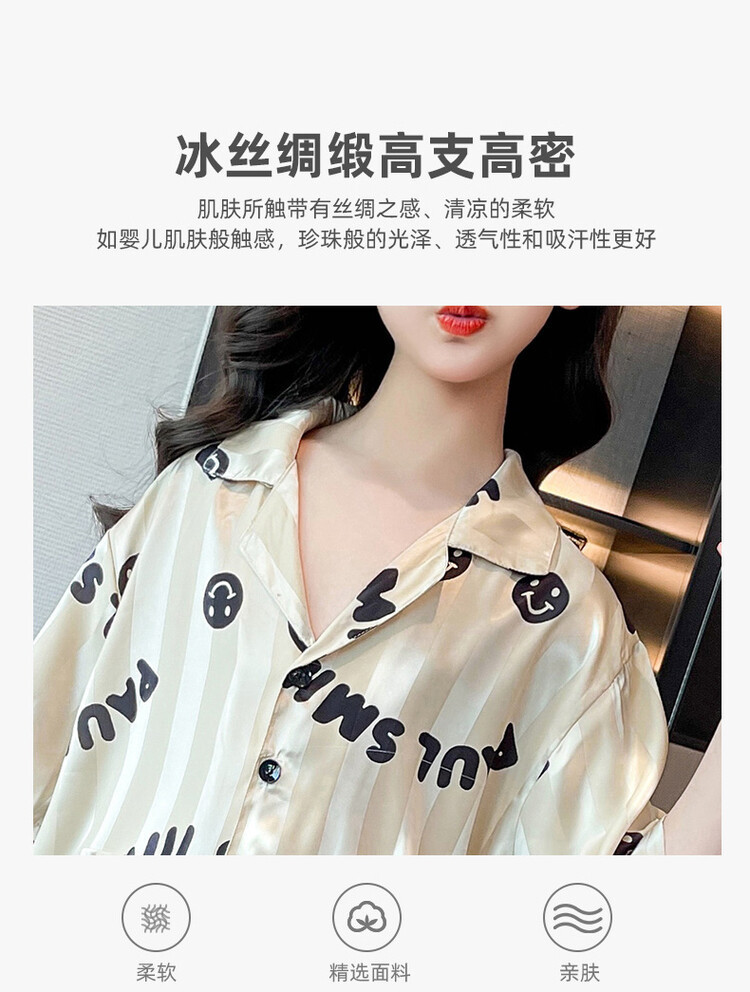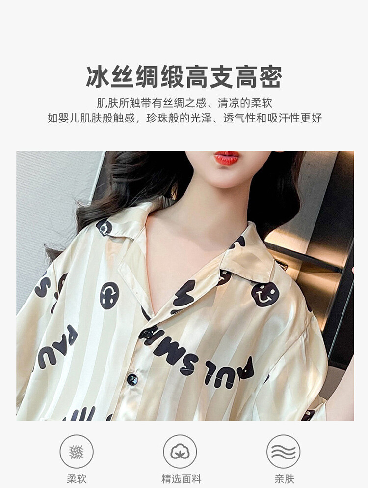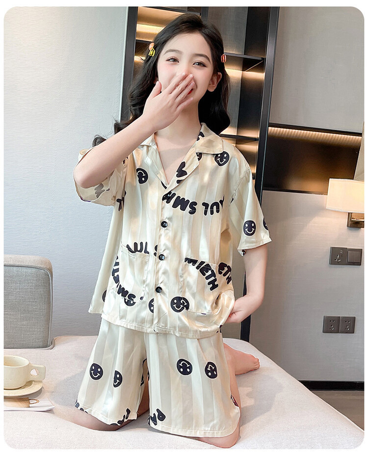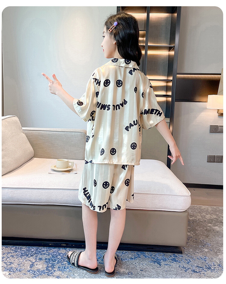 2023 세트 여아 반팔 가정복 아이스 실크 얇은 잠옷 아동 캐주얼 에어컨 셔츠 투피스 세트