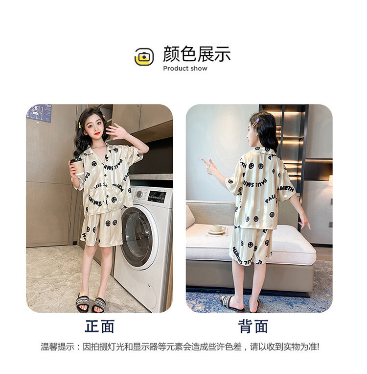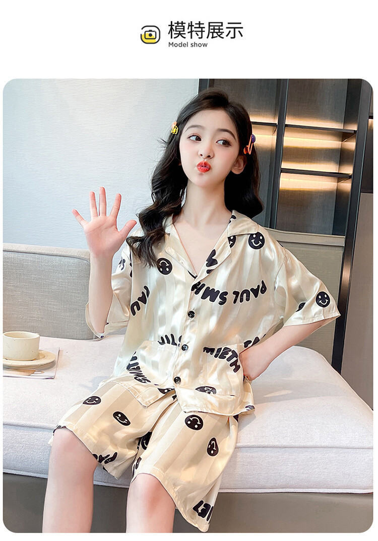 2023 세트 여아 반팔 가정복 아이스 실크 얇은 잠옷 아동 캐주얼 에어컨 셔츠 투피스 세트스토어 가기