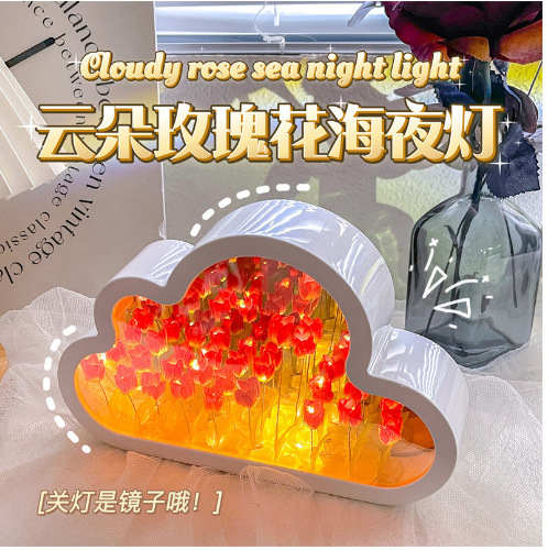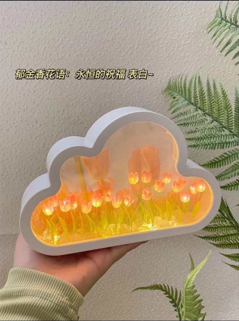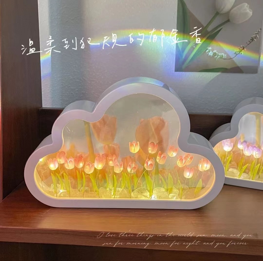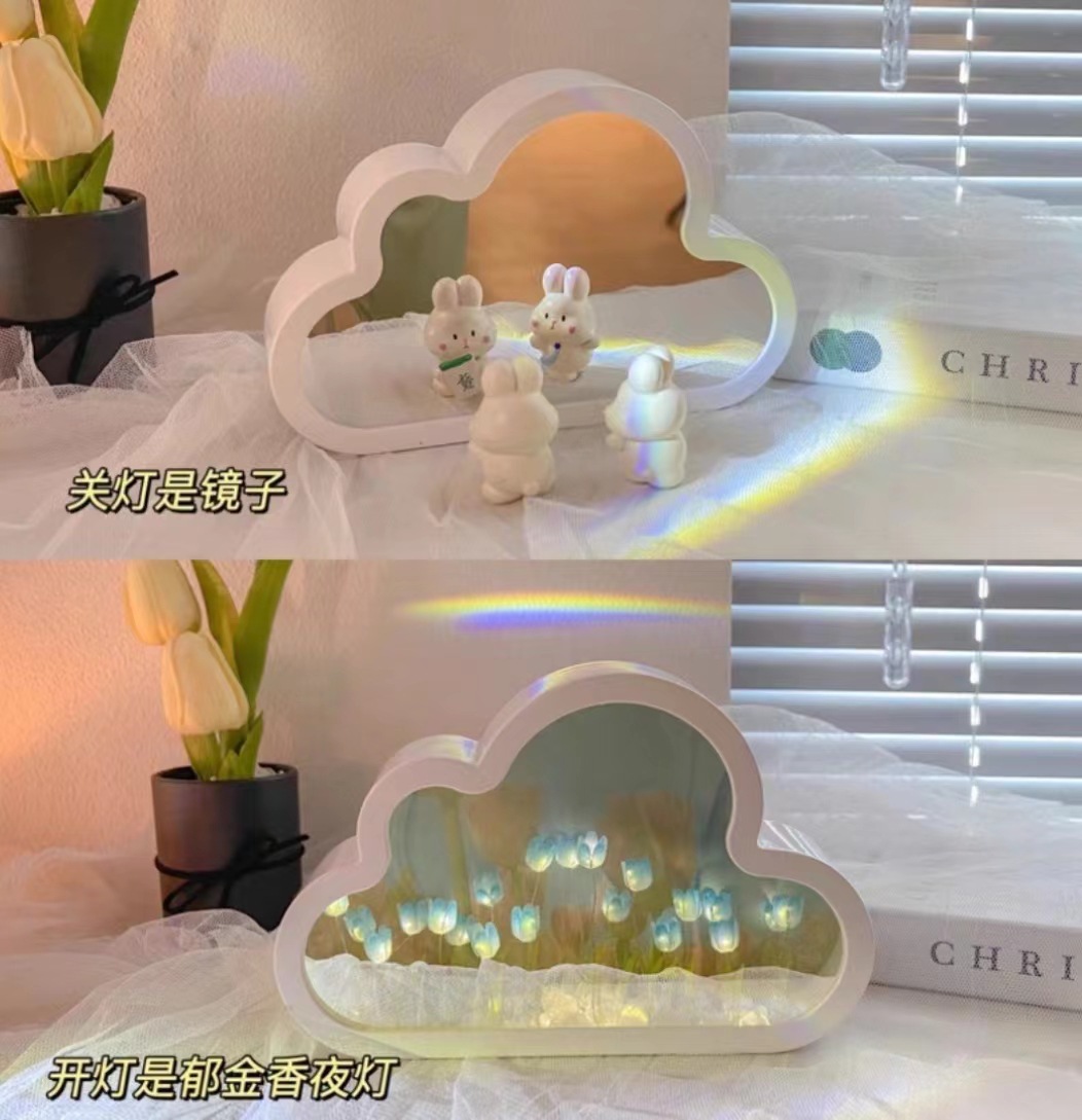 수제 DIY 구름 튤립 거울 야간 조명 발광 장식품 창조적 인 선물 발렌타인 데이 선물