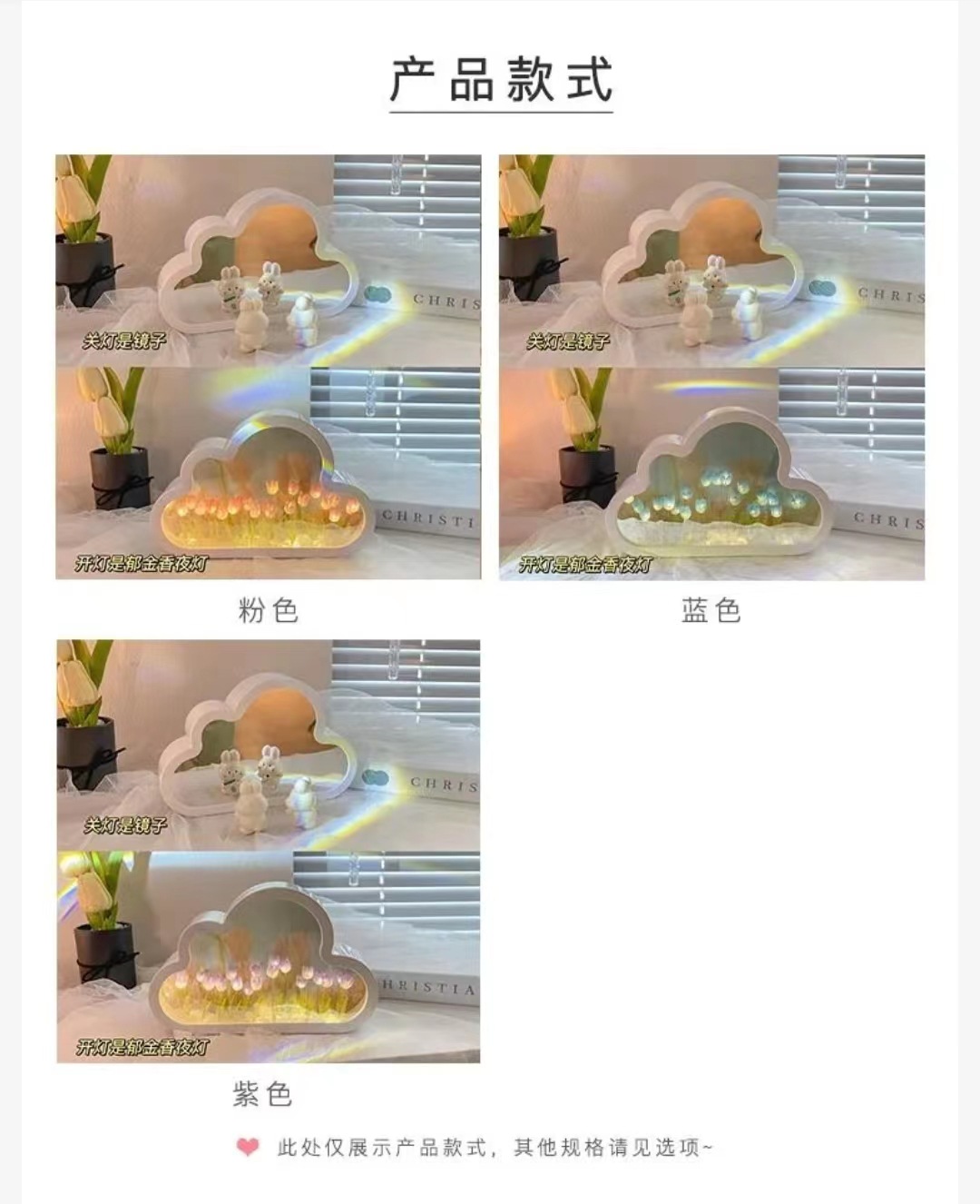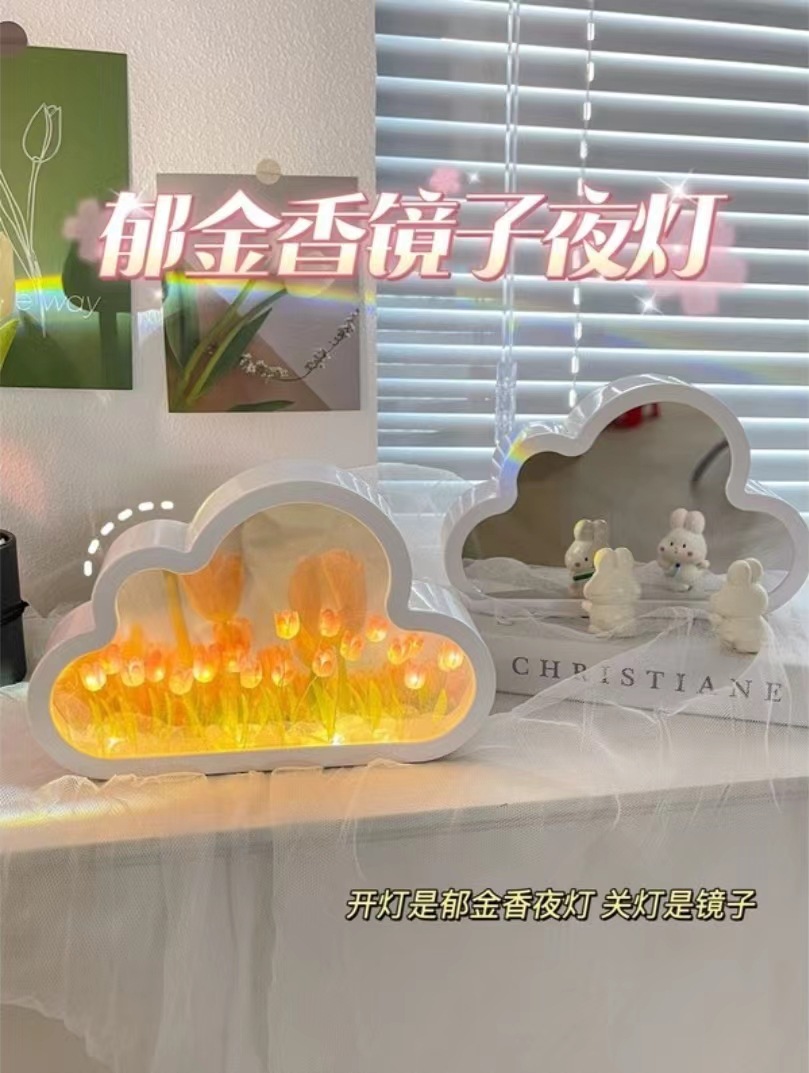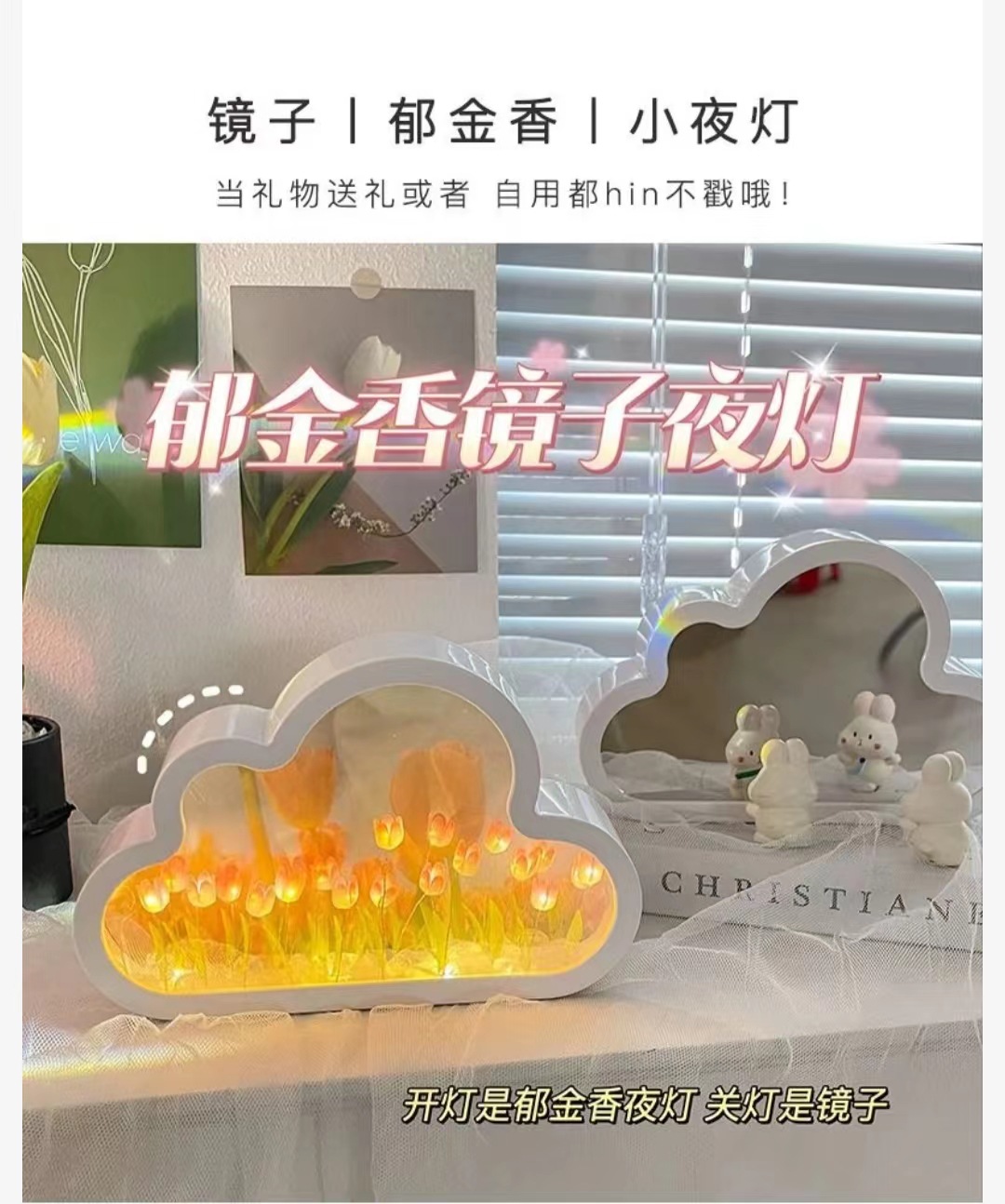 수제 DIY 구름 튤립 거울 야간 조명 발광 장식품 창조적 인 선물 발렌타인 데이 선물스토어 가기