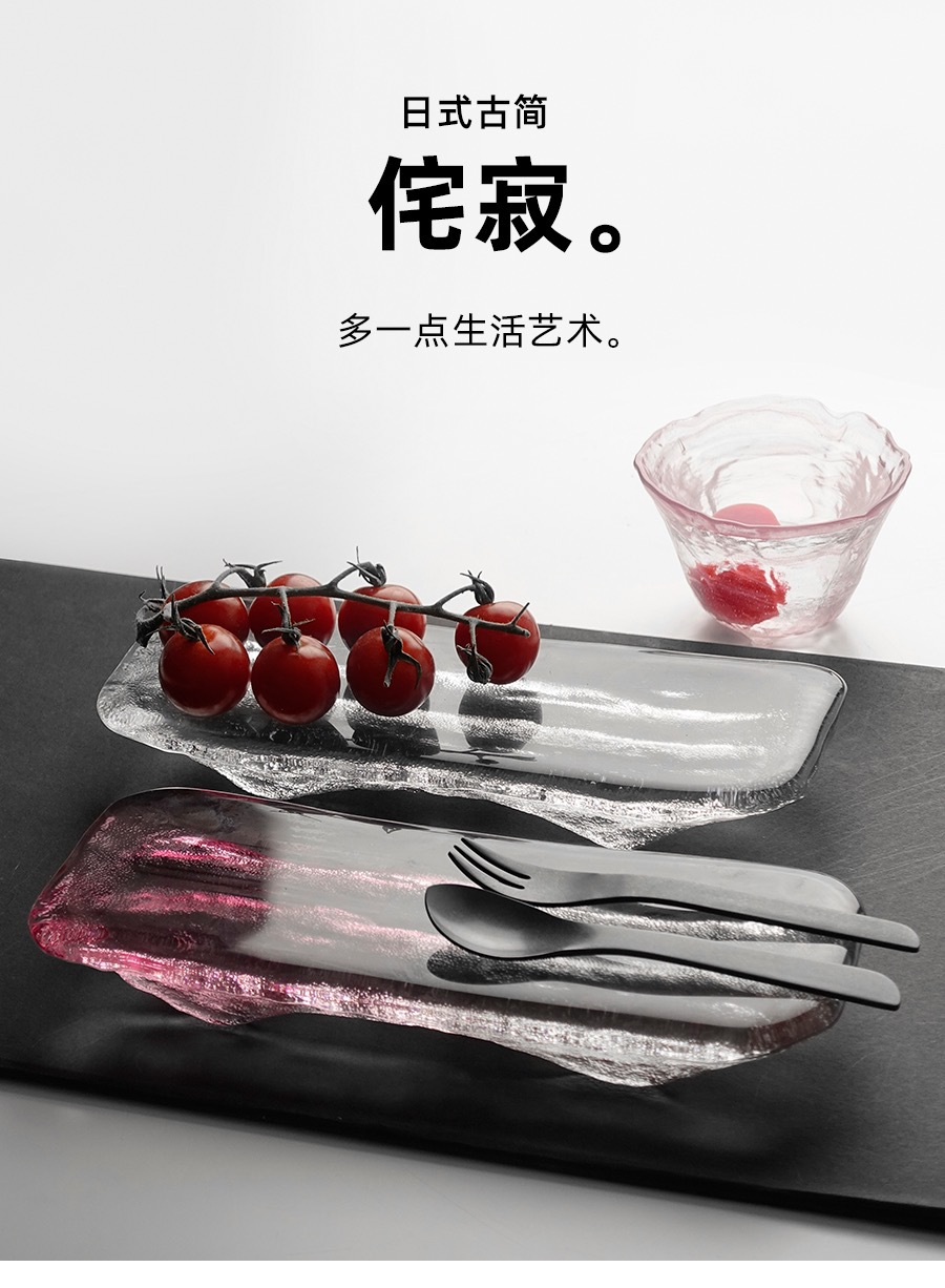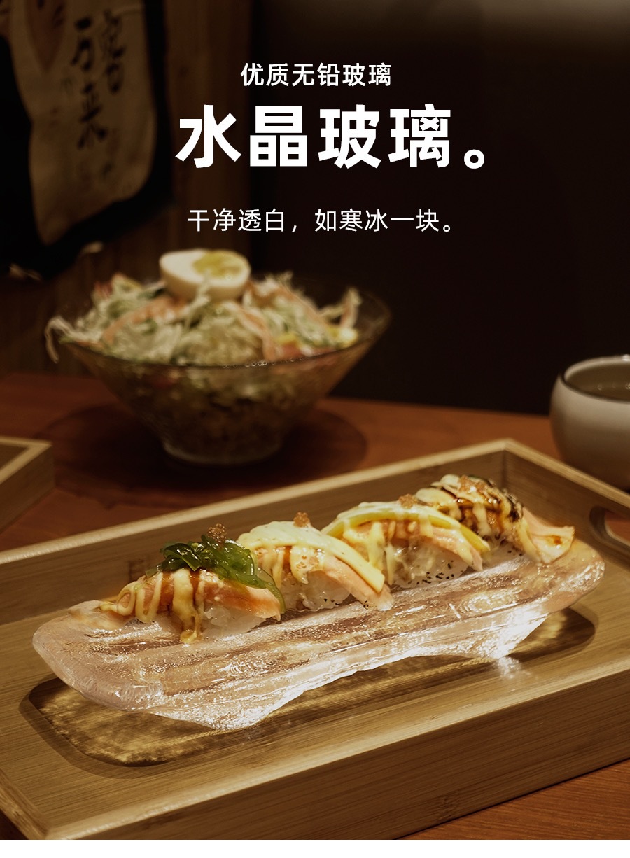 일본식 유리 초밥 접시 가정용 사시미 접시 유약 식기 창조적 인 레스토랑 요리 접시 다채로운 간식 요리