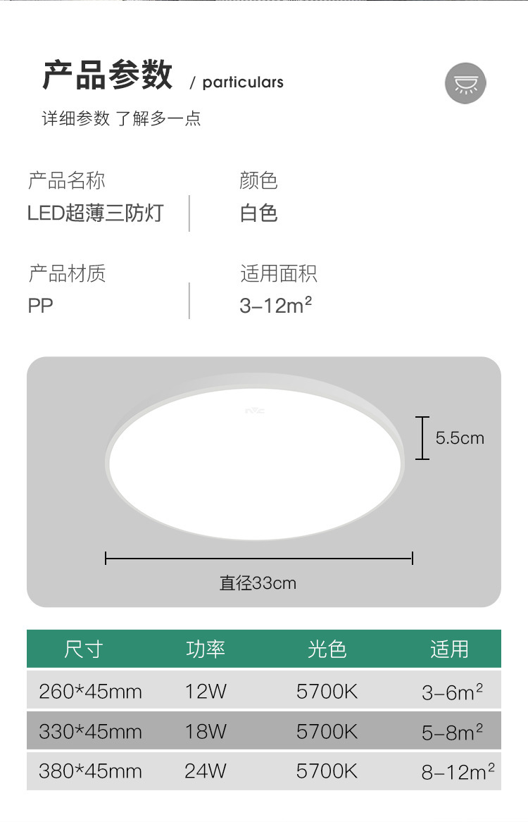 • 울트라 얇은 새 [방진, 곤충 방지 및 방수 가스] 18W 백색광-33*4.5cm