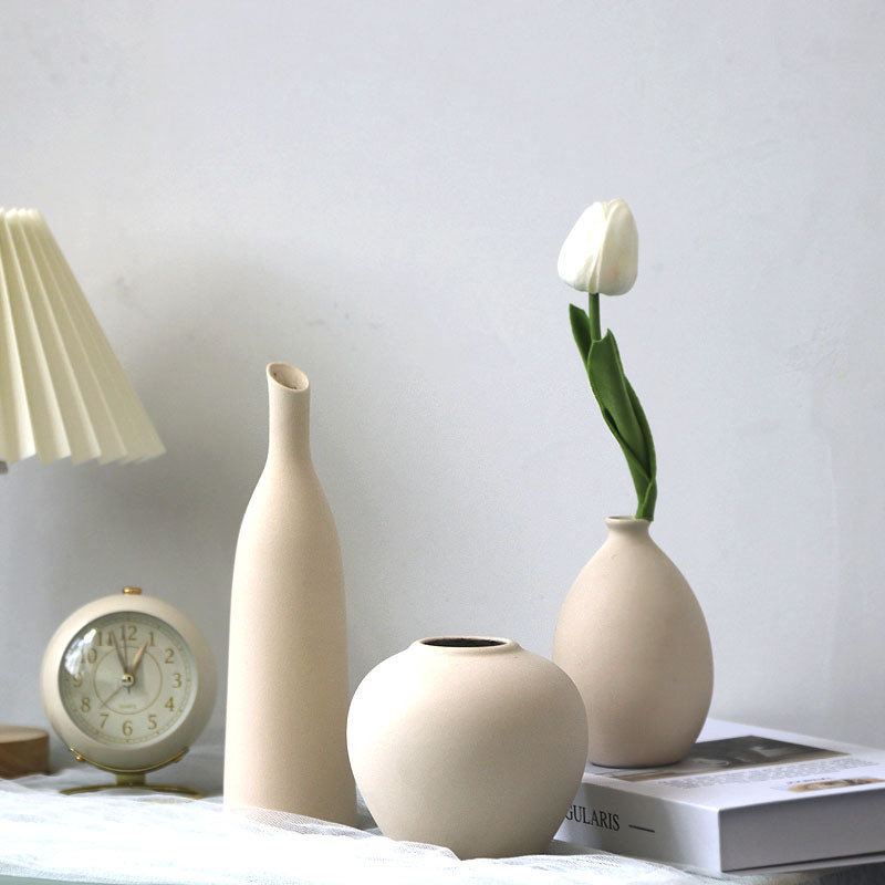 북유럽 인 간단한 세라믹 꽃병 베이지 크림 스타일 거실 데스크탑 장식 장식품 작은 꽃 국경 도매스토어 가기