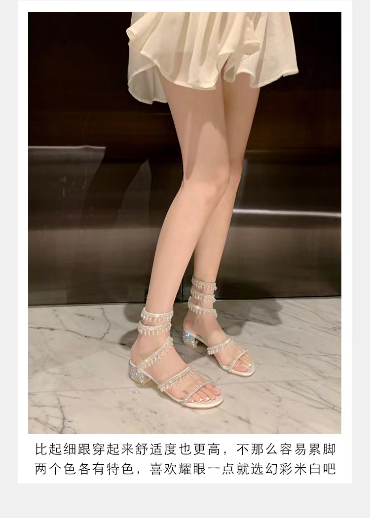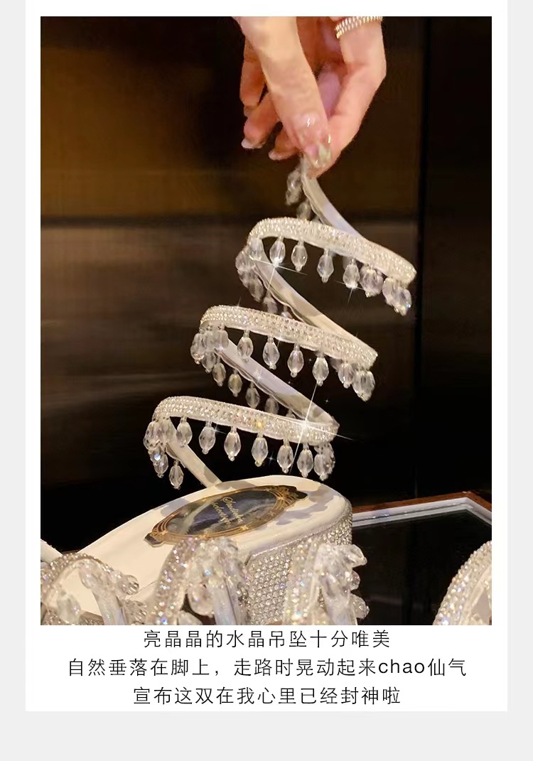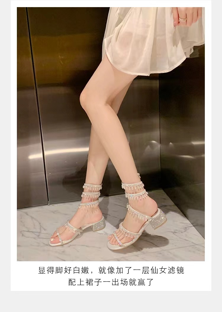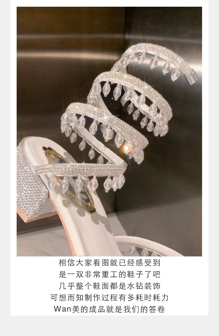 포도 엄마 같은 스타일 프랑스 얕은 입 아름다운 크리스탈 펜던트 뱀 모양의 라인 석 청키 힐 여성용 여름 샌들스토어 가기