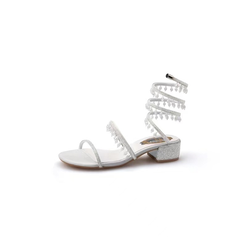 포도 엄마 같은 스타일 프랑스 얕은 입 아름다운 크리스탈 펜던트 뱀 모양의 라인 석 청키 힐 여성용 여름 샌들