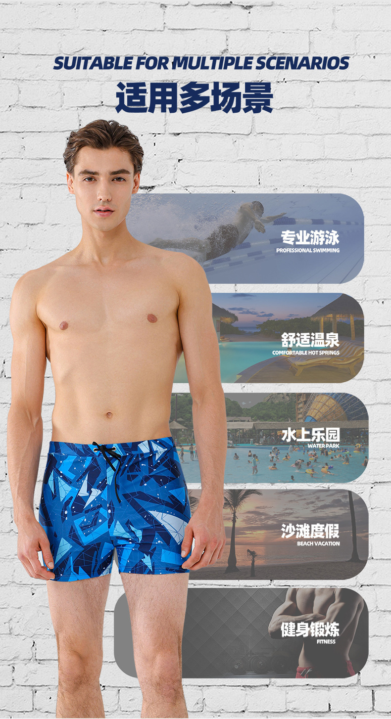 TRICOTA 국경 간 남자 수영 트렁크 통기성 얼음 실크 느낌 빠른 건조 바지 수영 장비 여름 3D 인쇄 과정