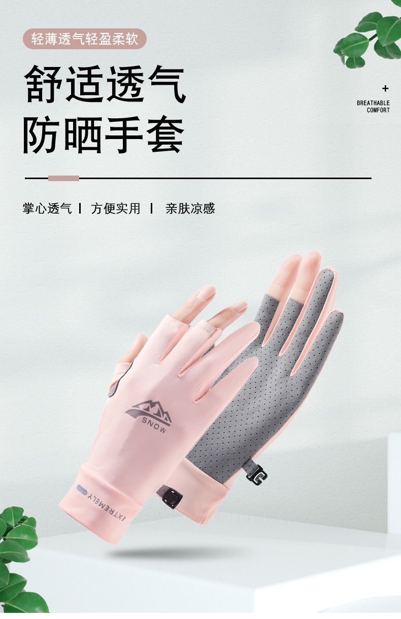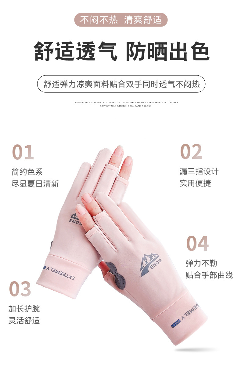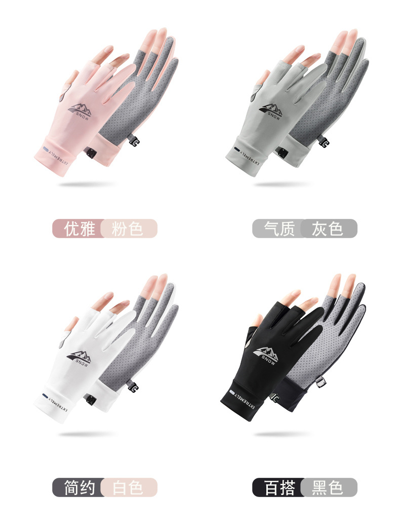 자외선 차단제 장갑 여름 아이스 실크 터치 스크린 안티 UV 라이딩 운전 얇은 방풍 미끄럼 방지 두 손가락 낚시