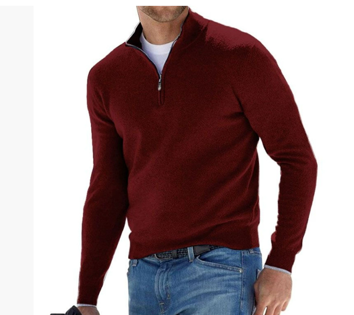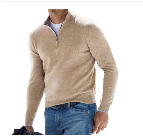 2025 독립 스테이션 아마존 신작 가을 긴팔 브이넥 울 지퍼 남성 캐주얼 탑 폴로 셔츠