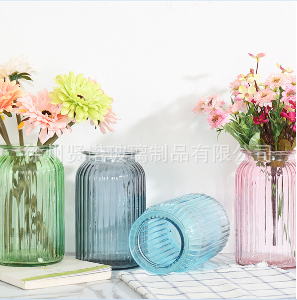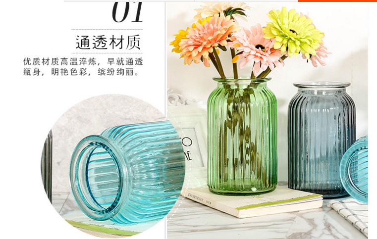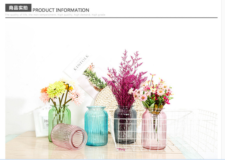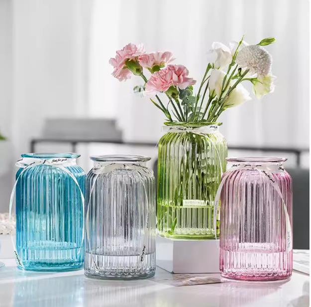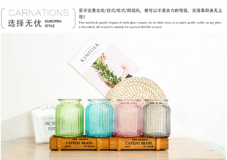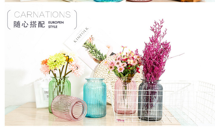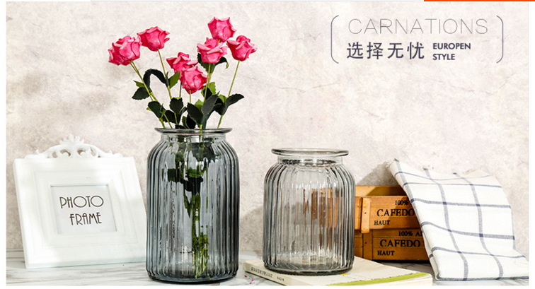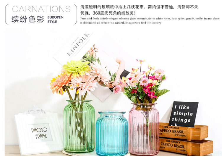 간단한 현대 유럽 스타일의 창조적 인 유리 꽃병 투명 수생 꽃꽂이 로즈 릴리 풍부한 대나무 식탁 장식스토어 가기