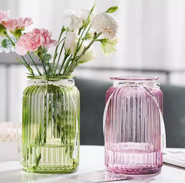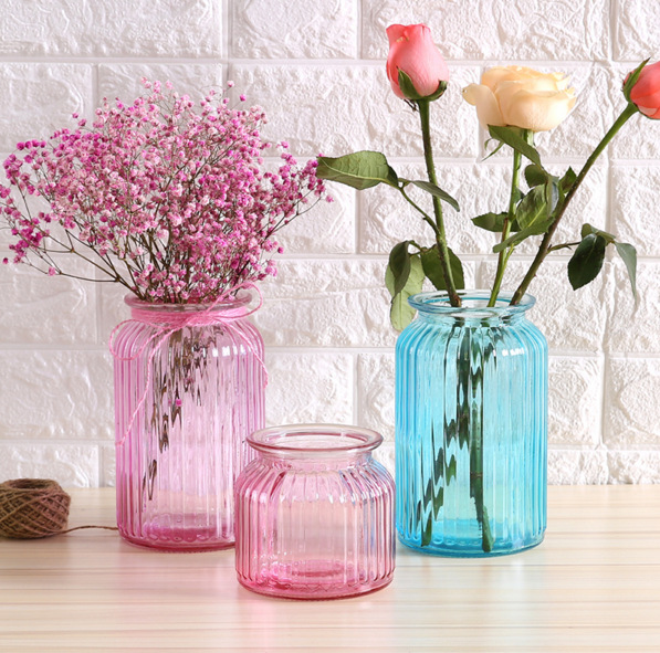 간단한 현대 유럽 스타일의 창조적 인 유리 꽃병 투명 수생 꽃꽂이 로즈 릴리 풍부한 대나무 식탁 장식