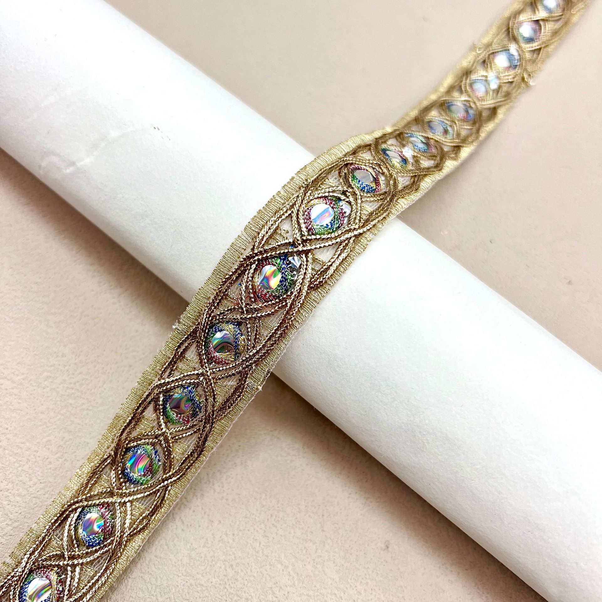 메쉬 골드 렌즈 자수 레이스 2.5cm 골드 스트랜드 리본 민족 의류 액세서리 재고 도매스토어 가기