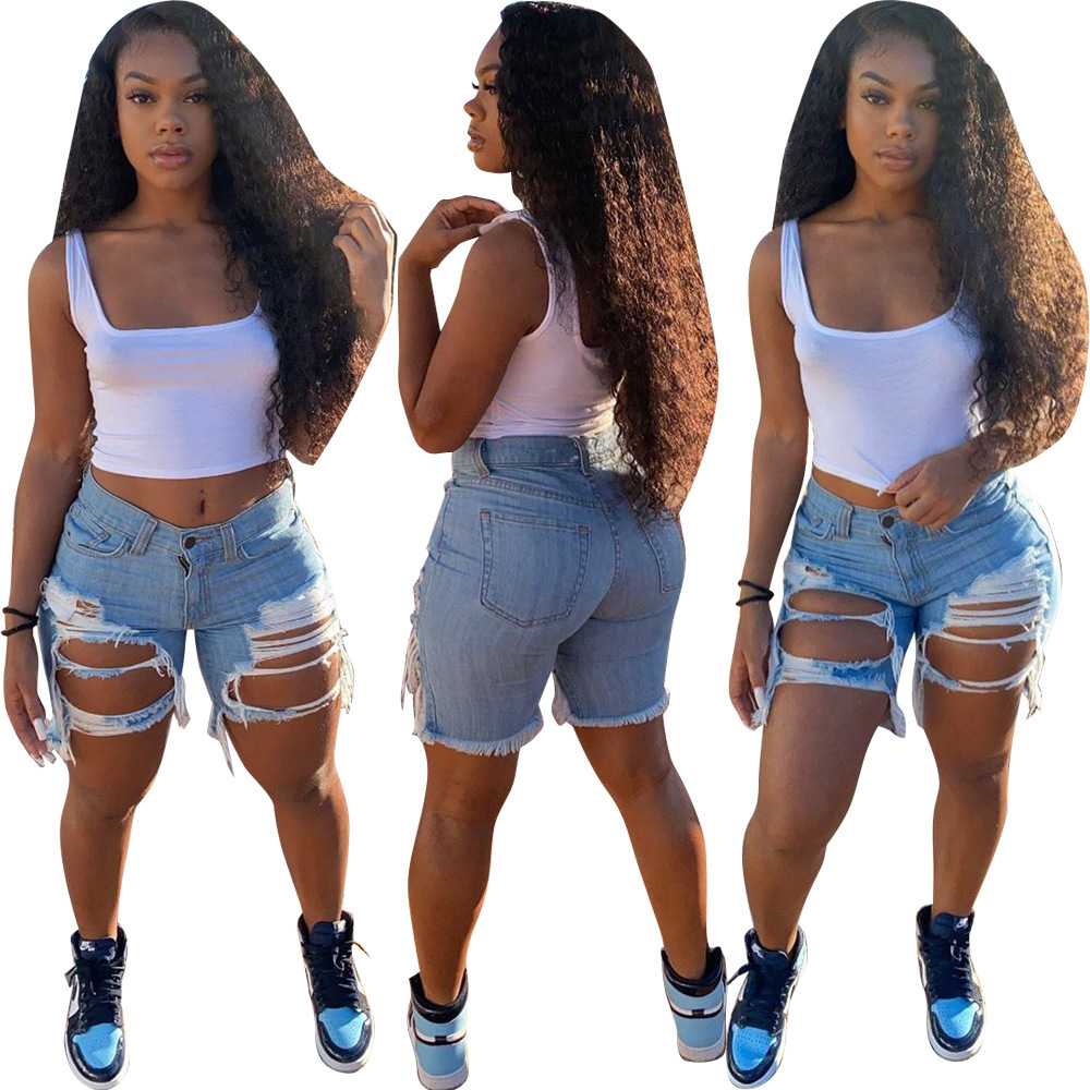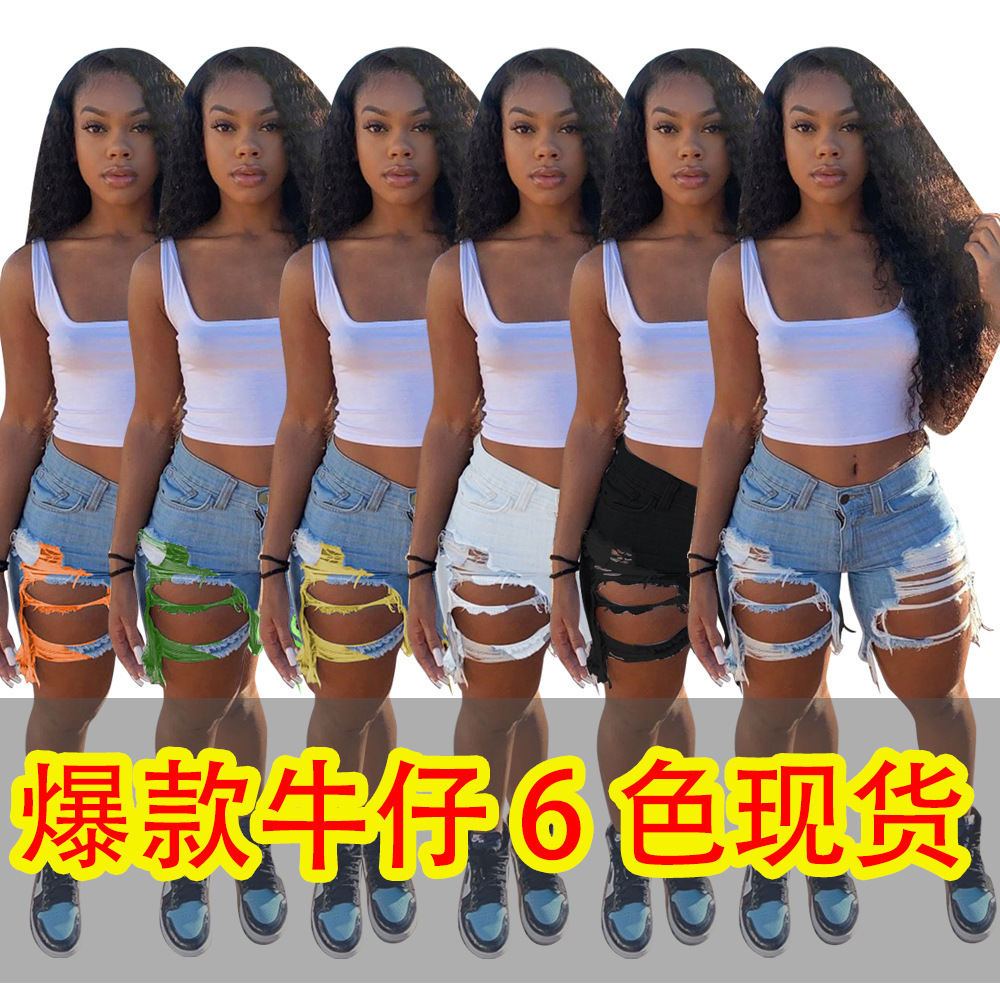 유럽과 미국의 ebay AliExpress 2023 여름 신작 여성 데님 반바지 코튼 루즈 하이 웨이스트 5부 바지스토어 가기