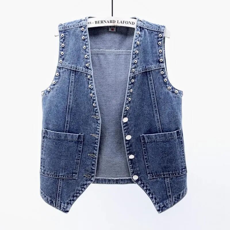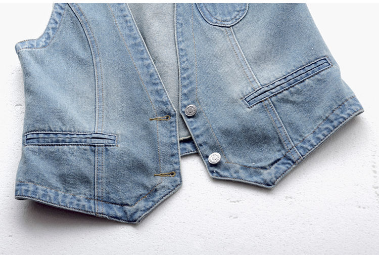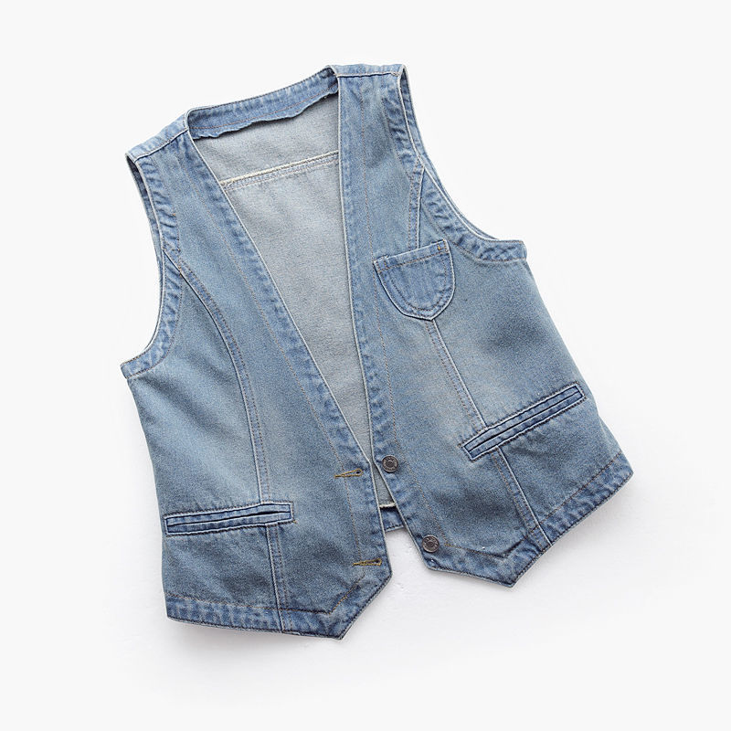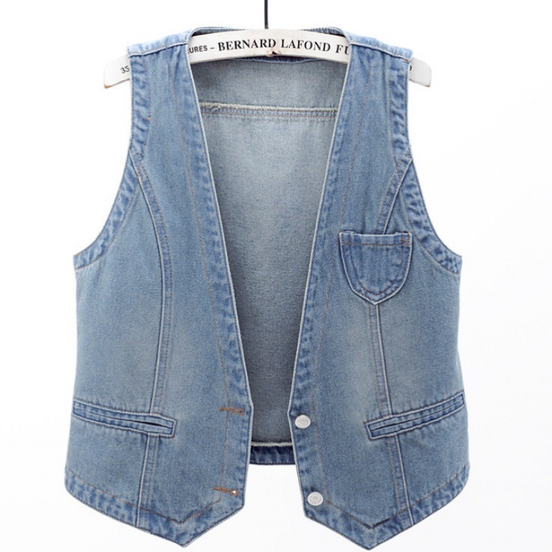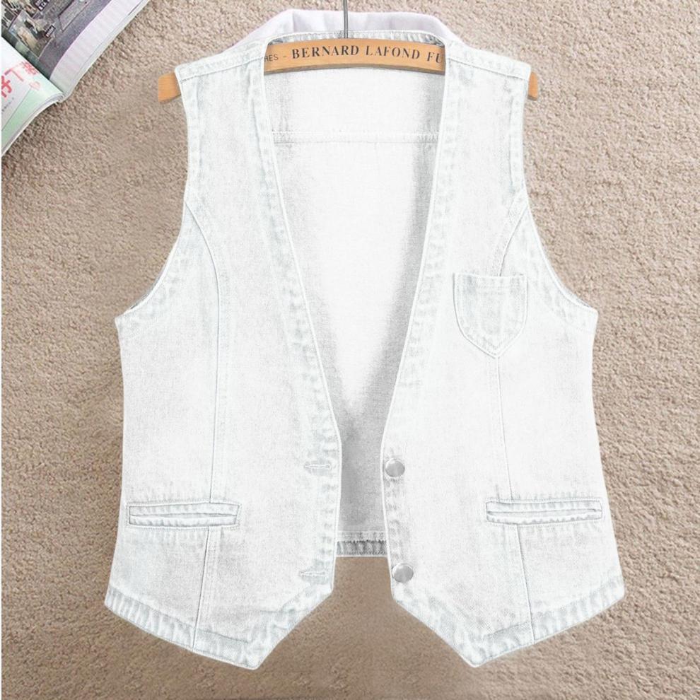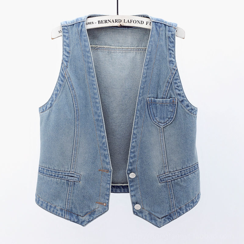 데님 조끼 여자의 짧은 여름 새로운 모든 매치 슬림 핏 슬리밍 한국 스타일 재킷 조끼 단색 탑 트렌디스토어 가기