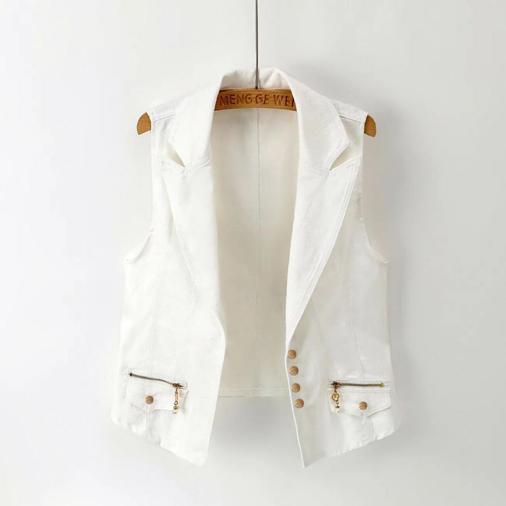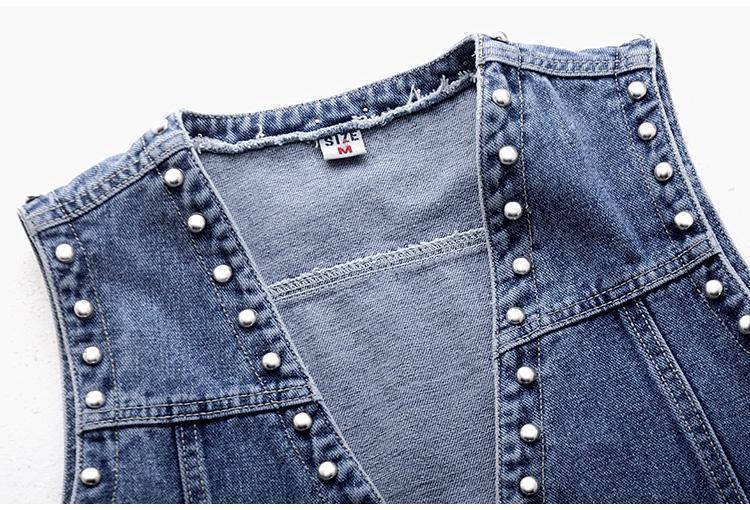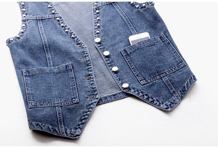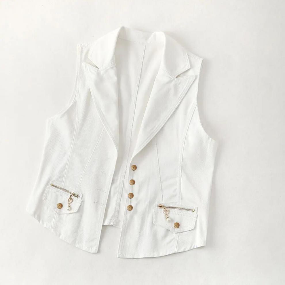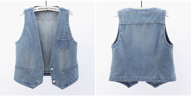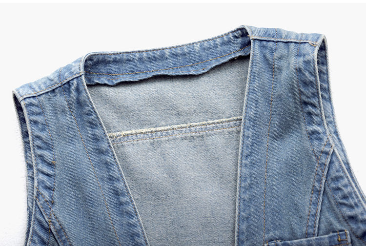 데님 조끼 여자의 짧은 여름 새로운 모든 매치 슬림 핏 슬리밍 한국 스타일 재킷 조끼 단색 탑 트렌디스토어 가기