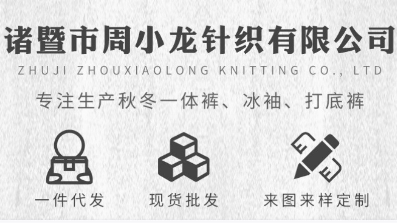 诸暨市周小龙针织有限公司成立于2014年,至今已经有近10年的生产经验,服务过的客户已经达到了800多家。自有厂房2000平方。地址在诸暨市大唐镇附近。公司拥有96台圆机。主营产品打底裤。