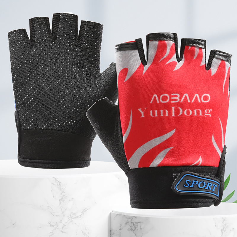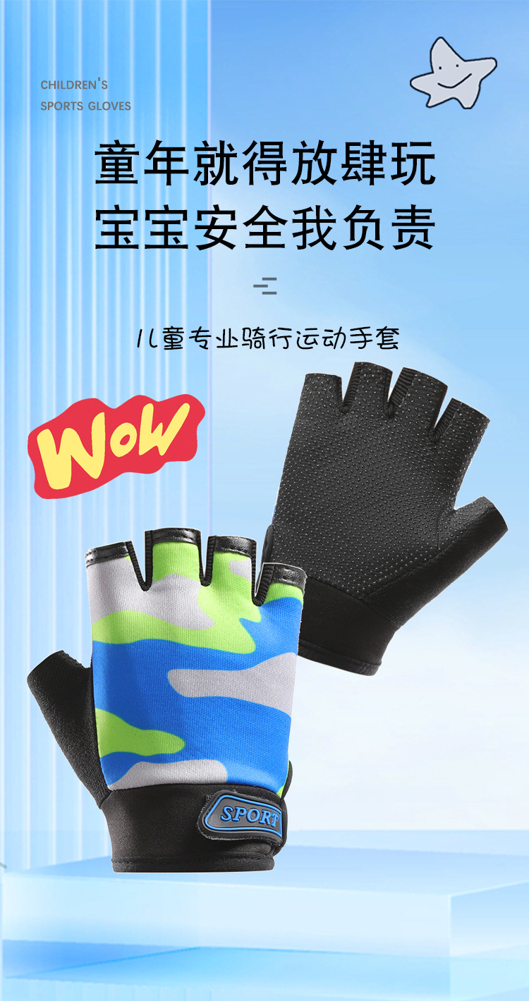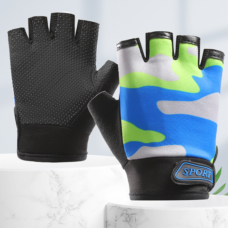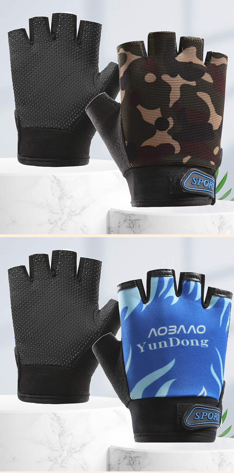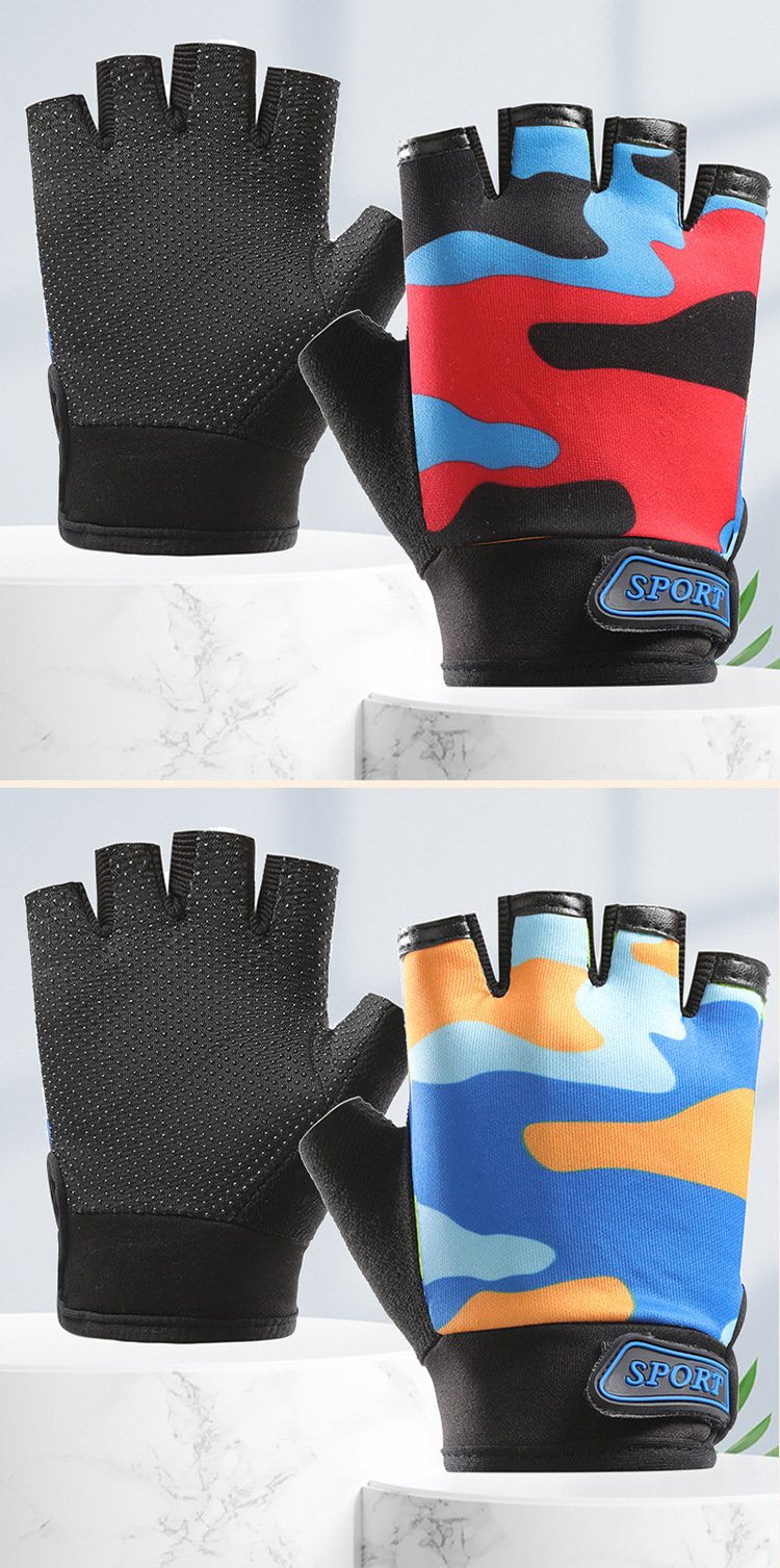 여름과 가을 어린이 승마 장갑 귀여운 만화 미끄럼 방지 스포츠 어린이 손 보호대 반 손가락 충격 흡수 통기성 장갑스토어 가기