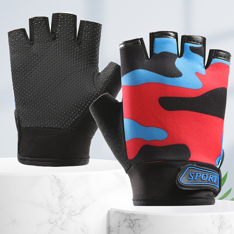 여름과 가을 어린이 승마 장갑 귀여운 만화 미끄럼 방지 스포츠 어린이 손 보호대 반 손가락 충격 흡수 통기성 장갑