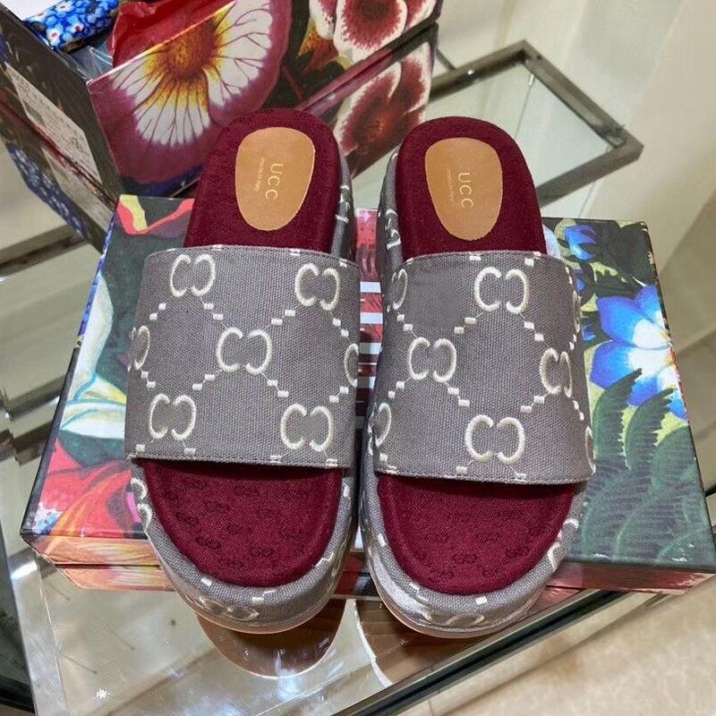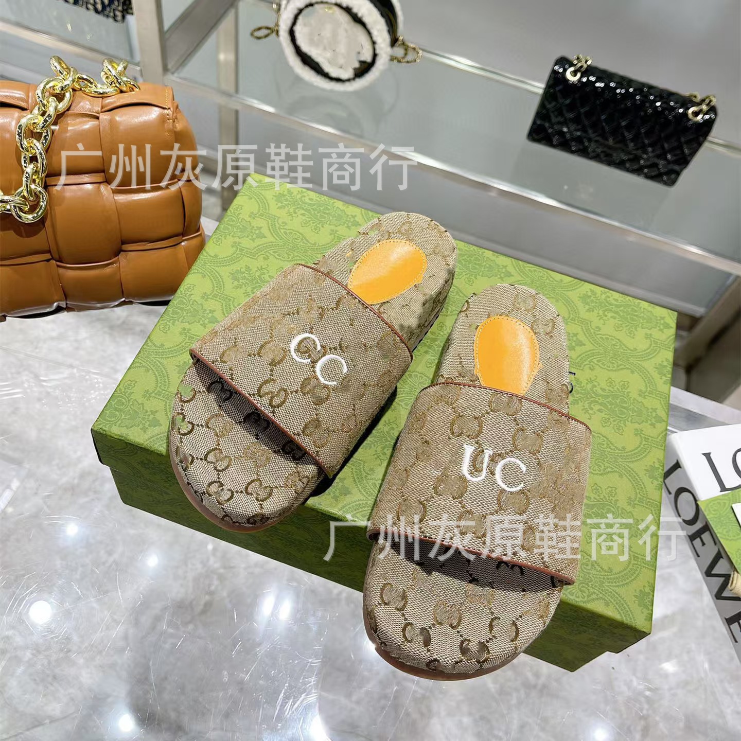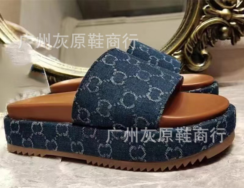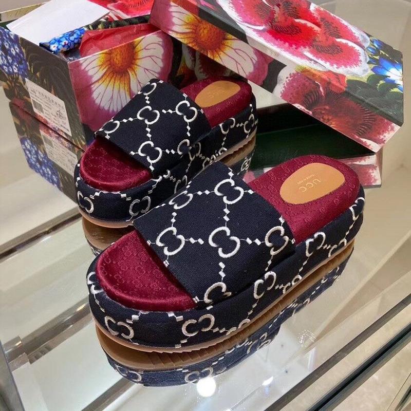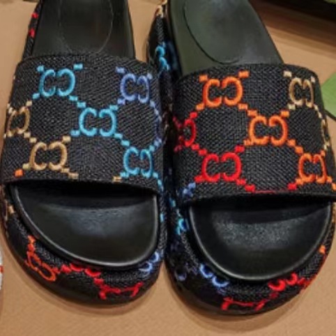 G 패밀리 2023 뉴 넷 레드 여름 공장 직수 자수 슬리퍼 인쇄 고층 두꺼운 밑창 캐주얼 여성 샌들스토어 가기