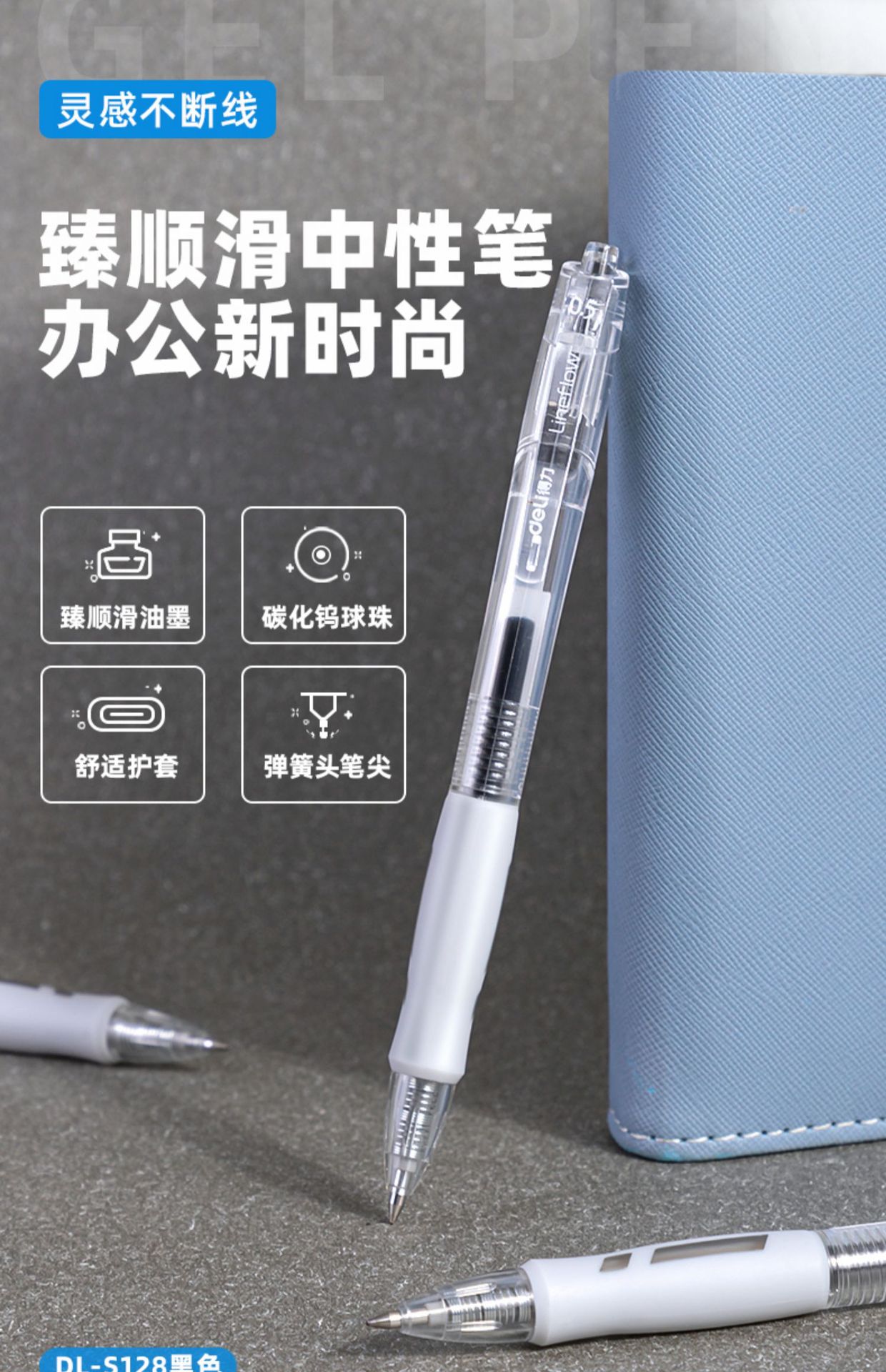 델리 선 슬립 S128 프레스 젤 펜 학생 사용 0.5mm 검정 문구 사인 펜 잉크 펜 검정 펜
