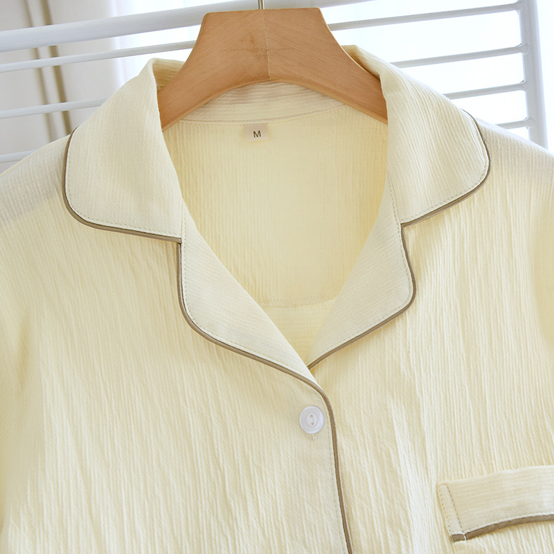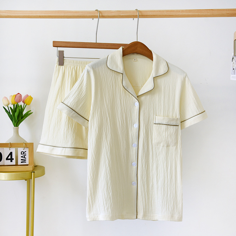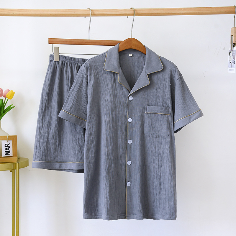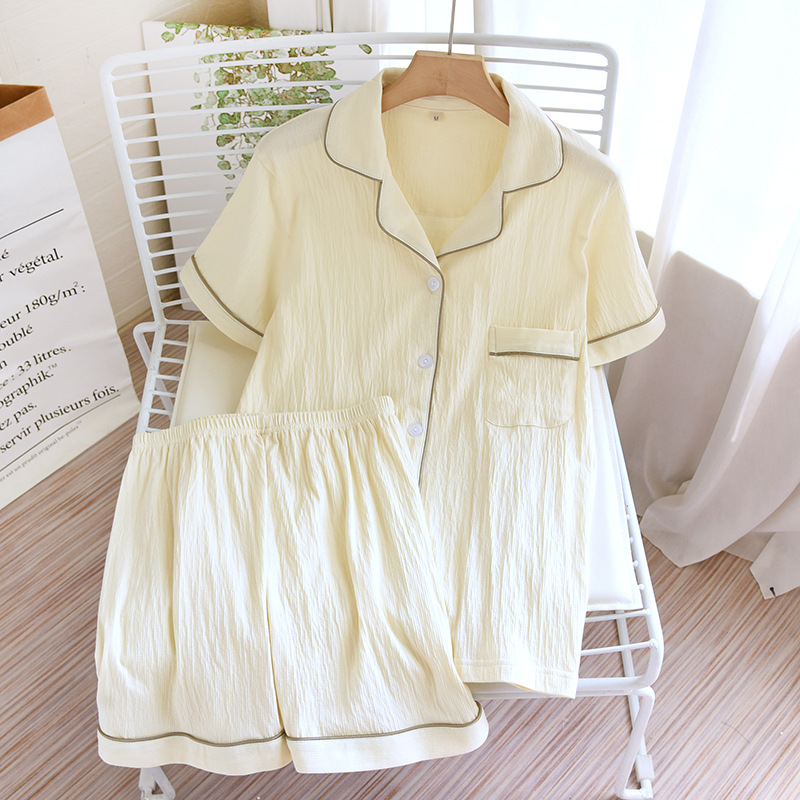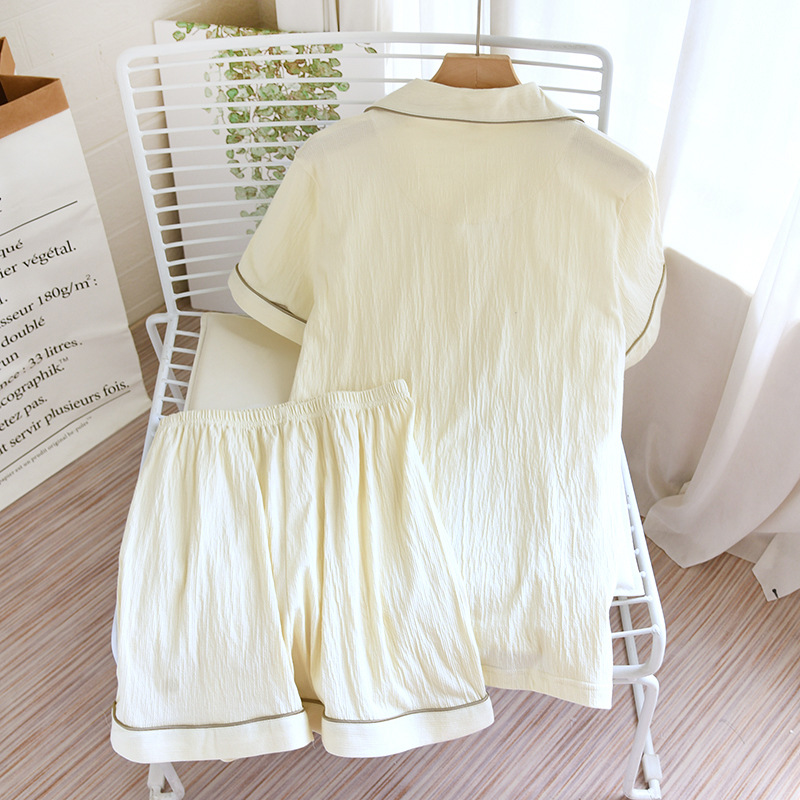 여름 커플 잠옷 새로운 니트 크레이프 반팔 반바지 세트 여자의 면 느슨한 간단한 가정 옷 플러스 사이즈스토어 가기