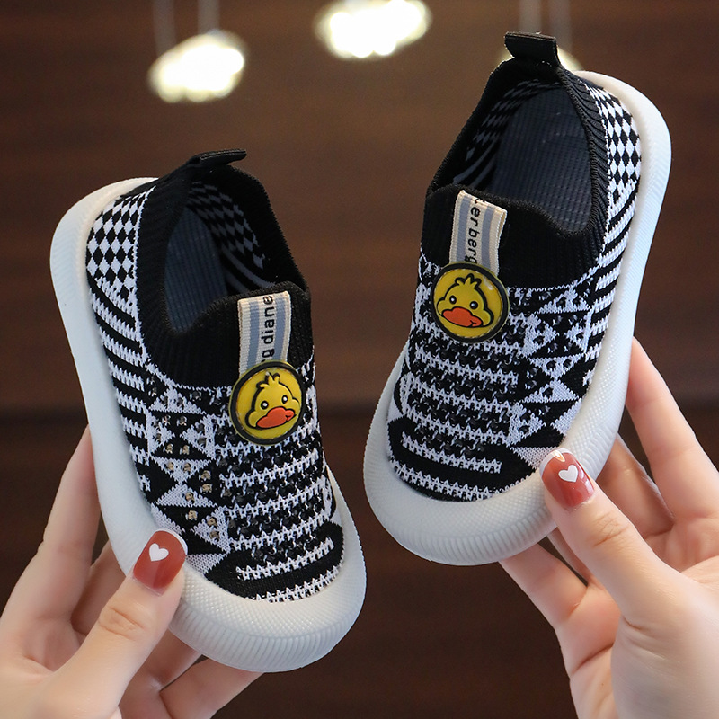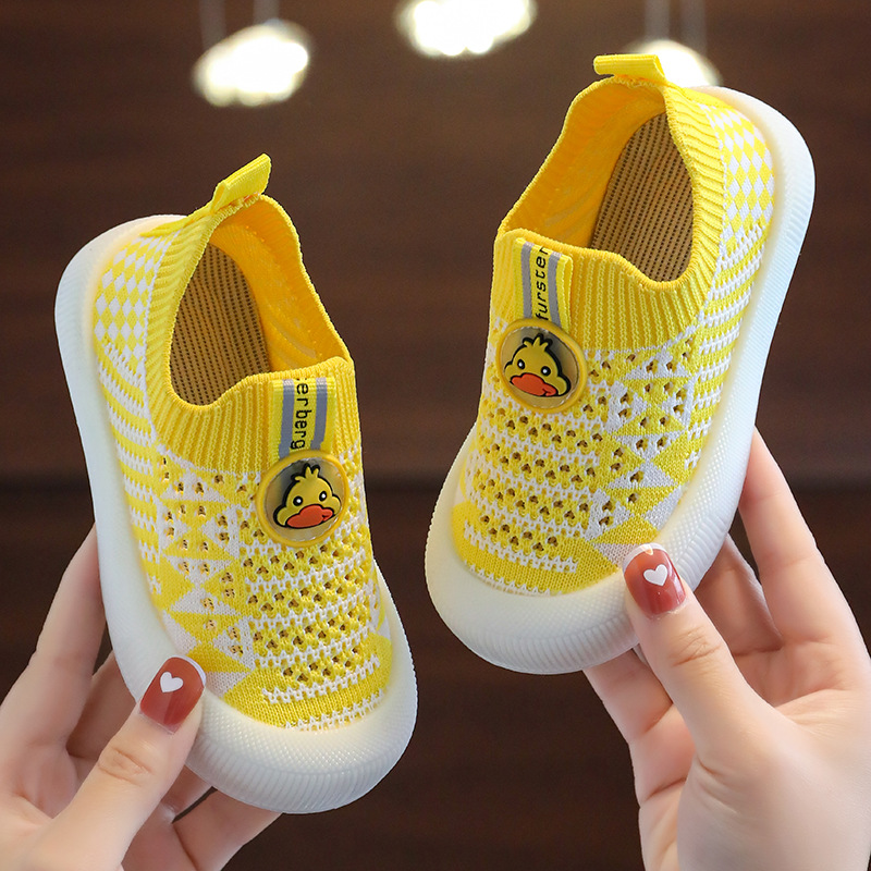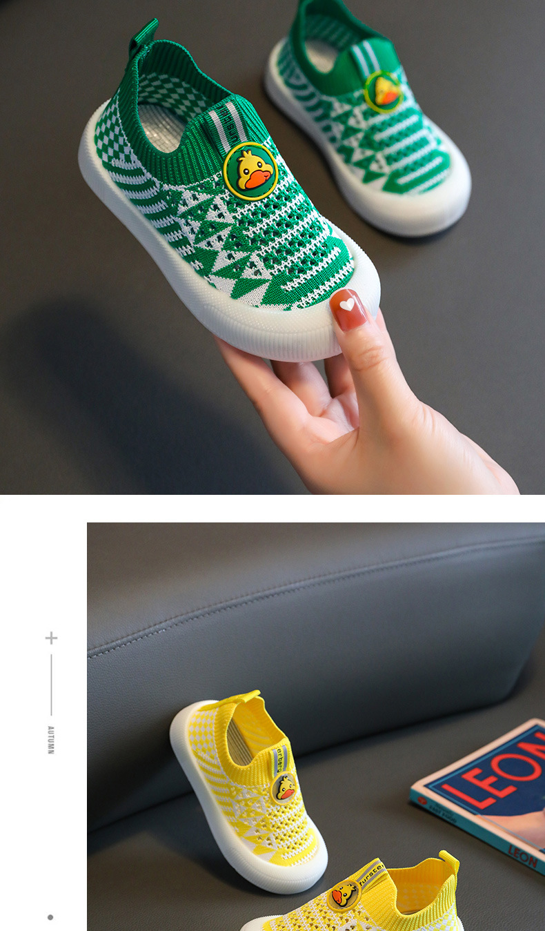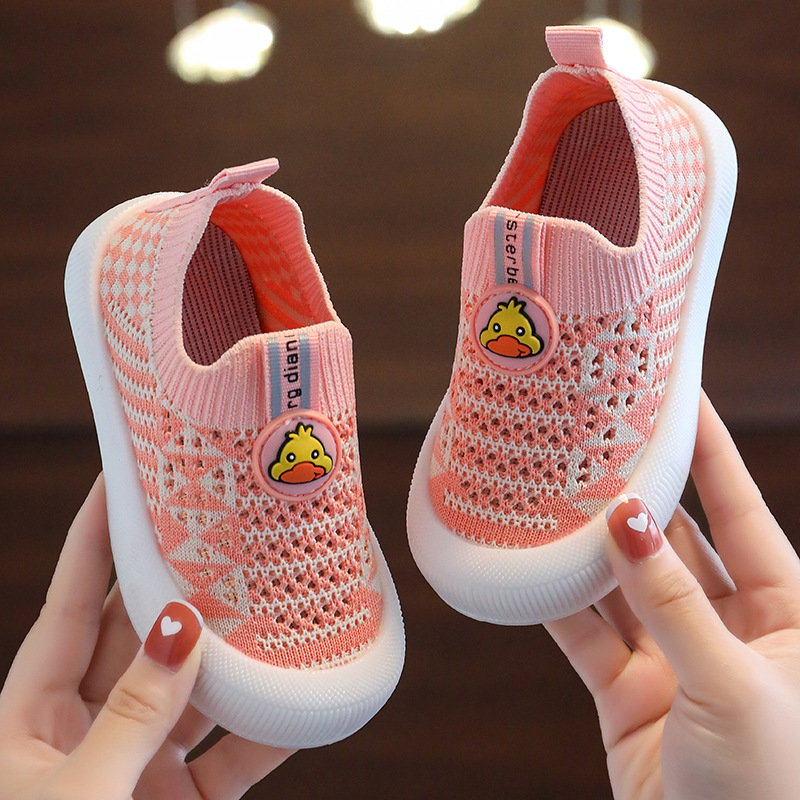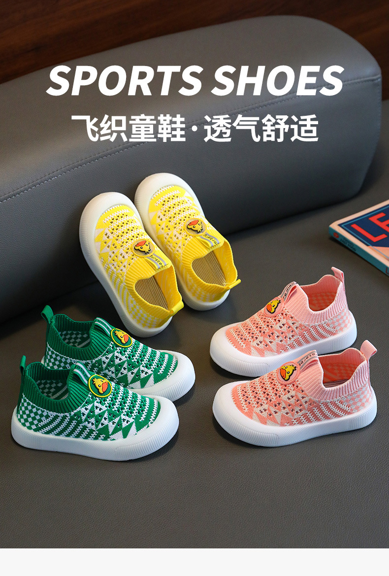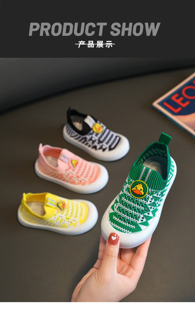 새로운 봄과 여름 중공 어린이 통기성 메쉬 신발 미끄럼 방지 플라이 짠 신발 부드러운 밑창 아기 신발 슬립온 캐주얼 신발