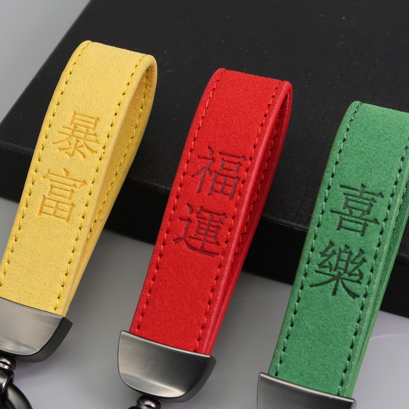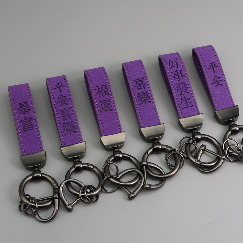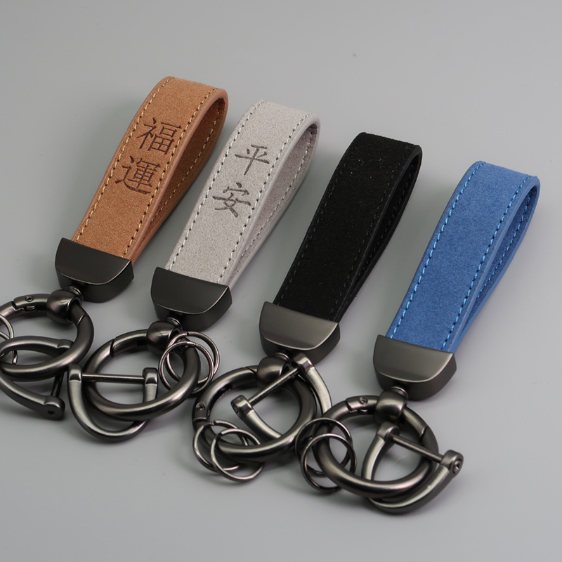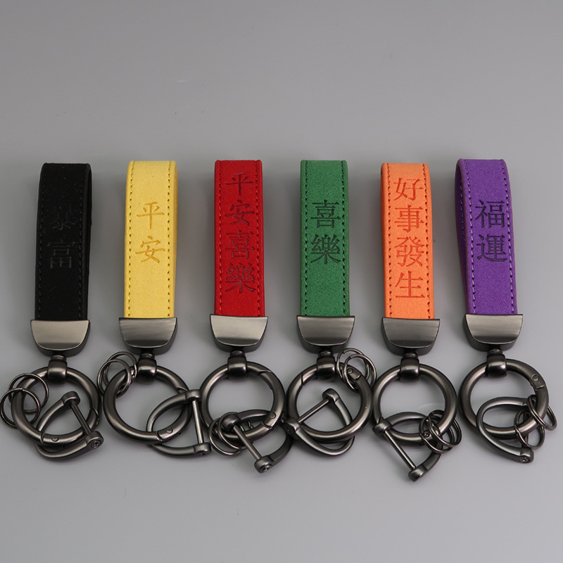 국경 간 뜨거운 판매 마이크로 화이버 스웨이드 키 체인 레이저 양각 로고 가죽 자동차 키 체인 회사 선물