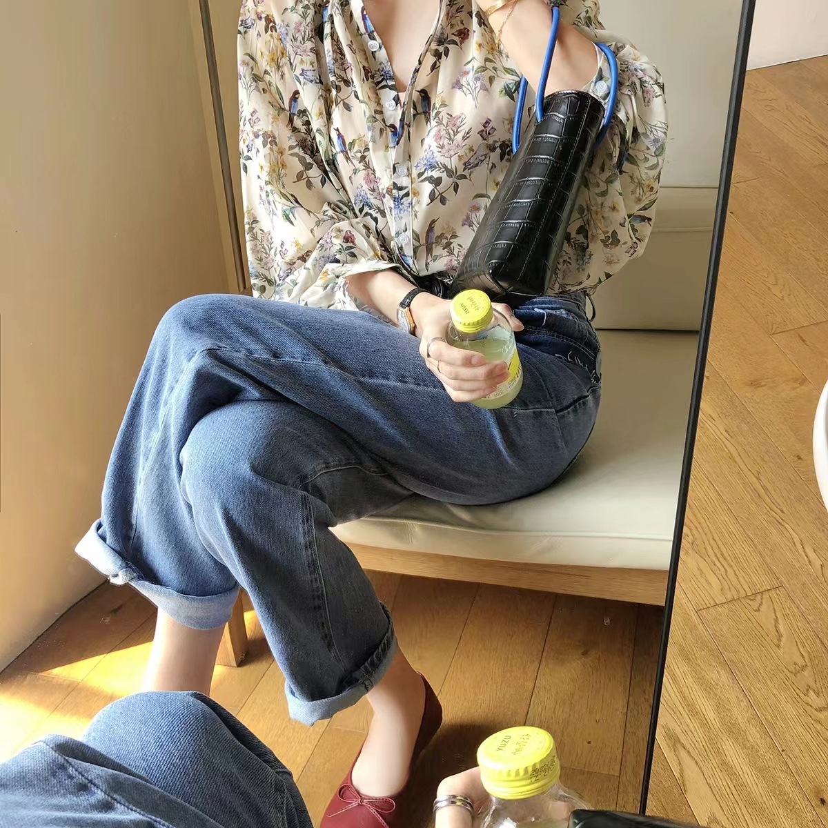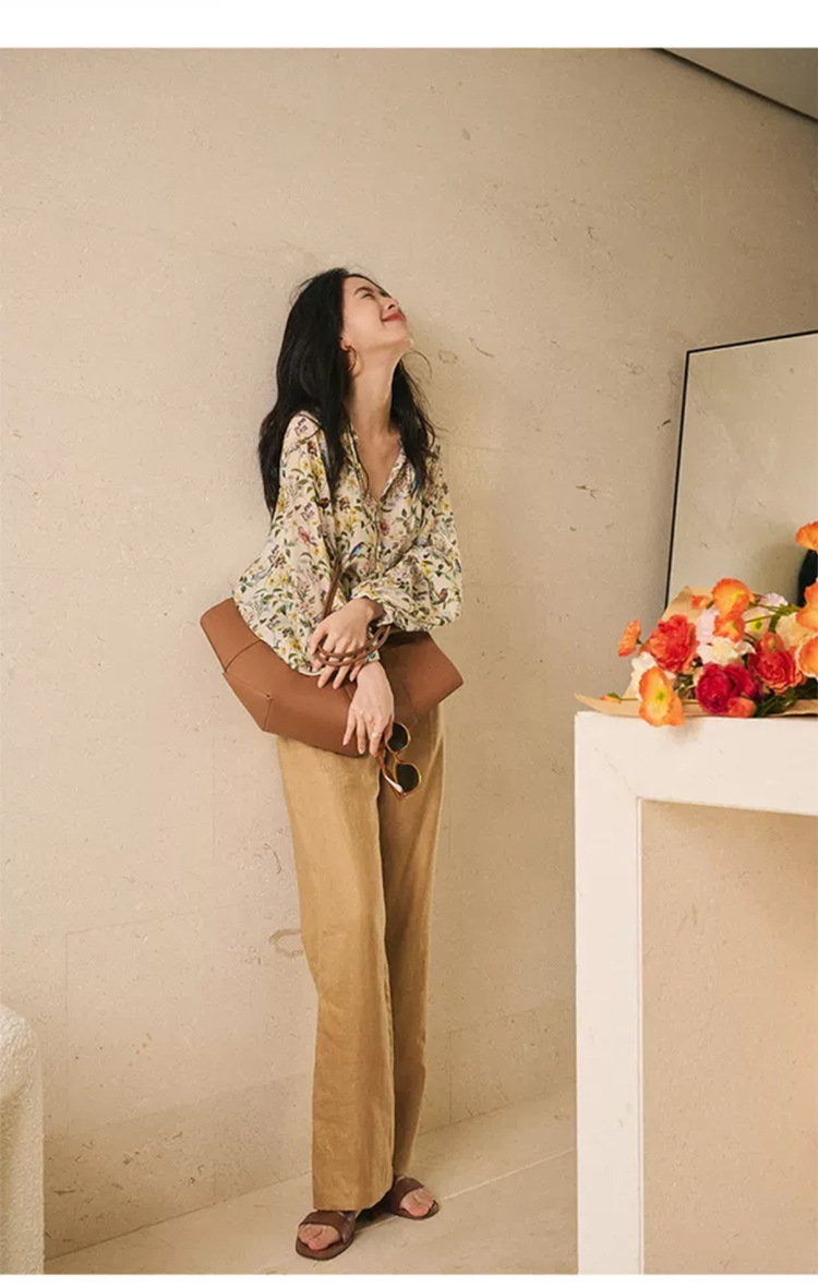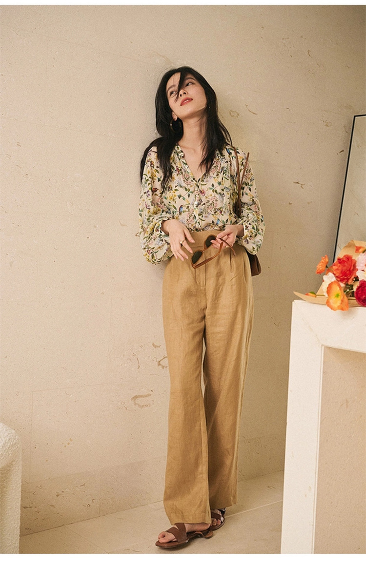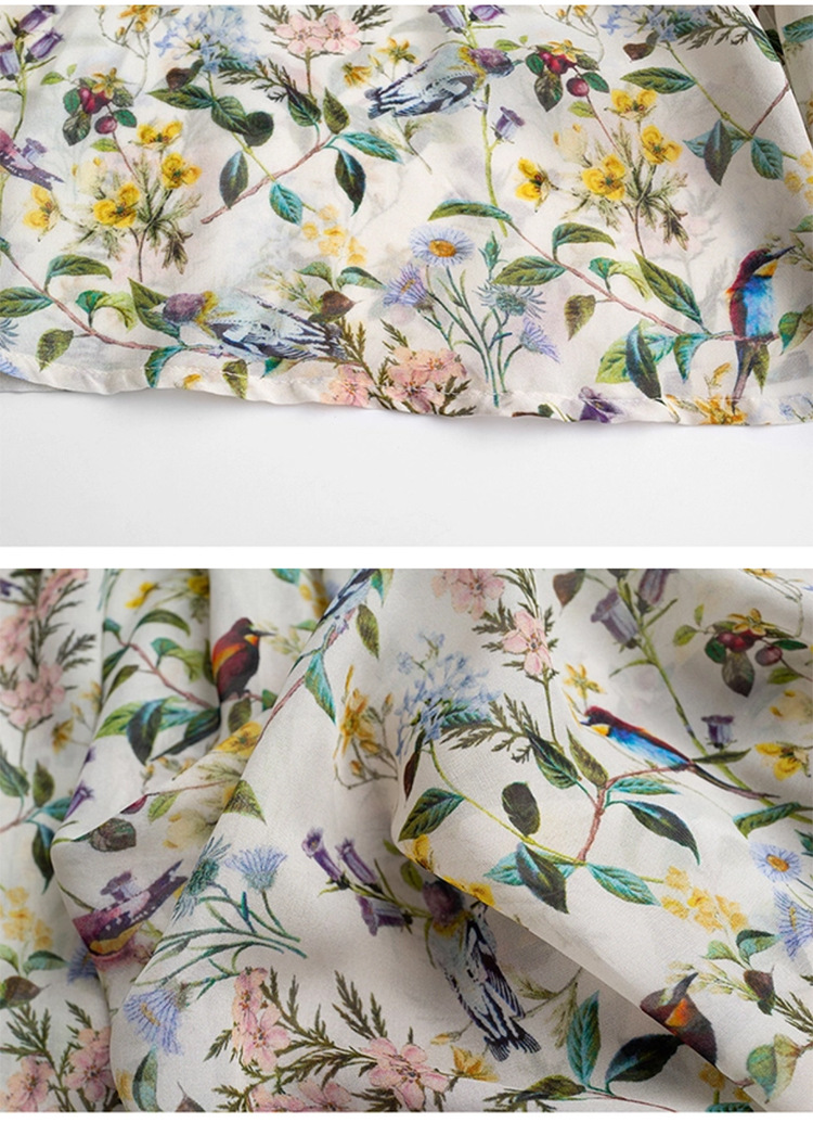 프랑스 스타일 시크 플로럴 쉬폰 탑 블라우스 느슨한 랜턴 슬리브 플라워 셔츠 여름 긴 소매 자외선 차단제 쉬폰 셔츠