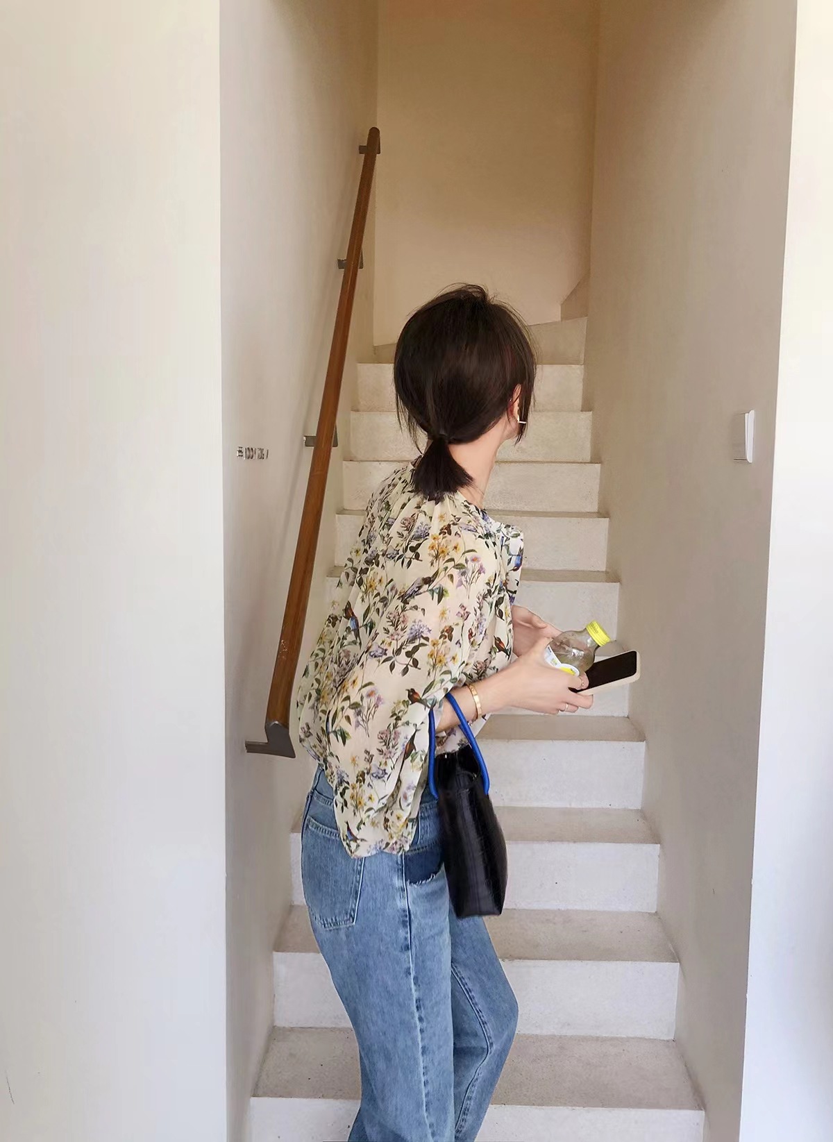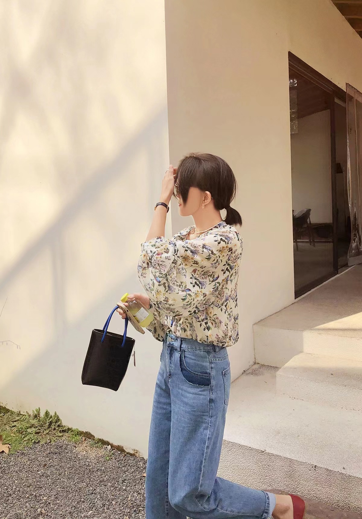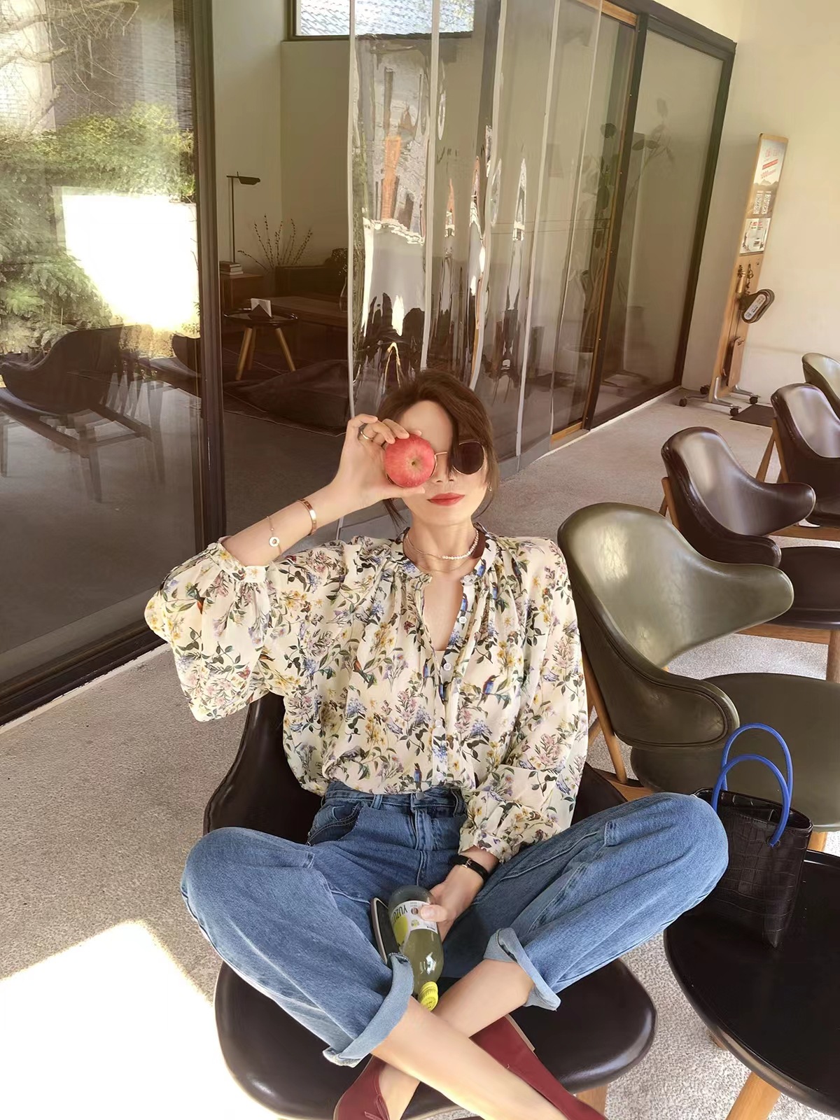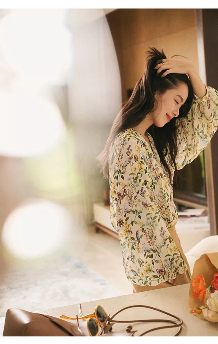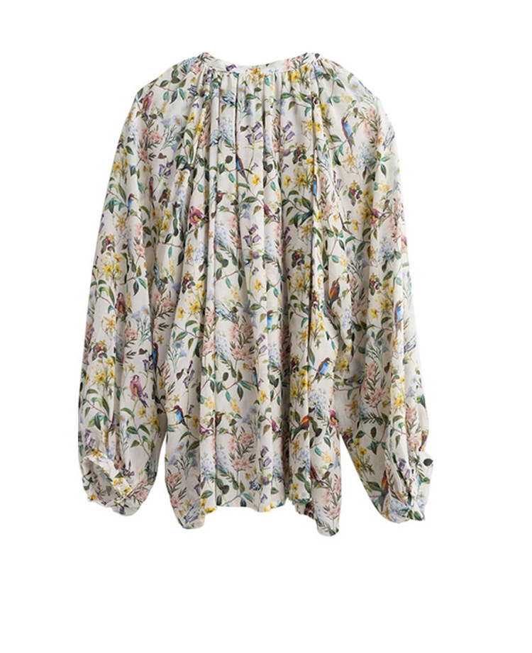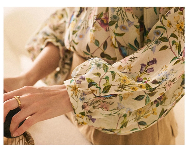 프랑스 스타일 시크 플로럴 쉬폰 탑 블라우스 느슨한 랜턴 슬리브 플라워 셔츠 여름 긴 소매 자외선 차단제 쉬폰 셔츠스토어 가기