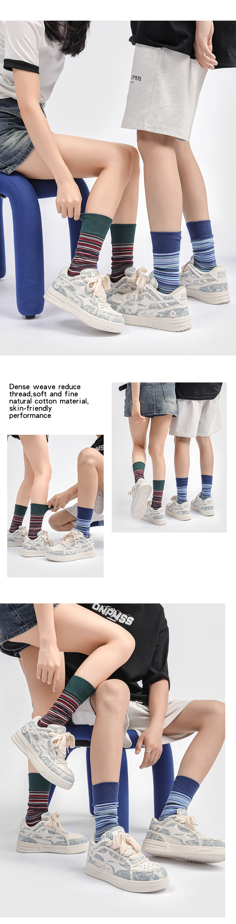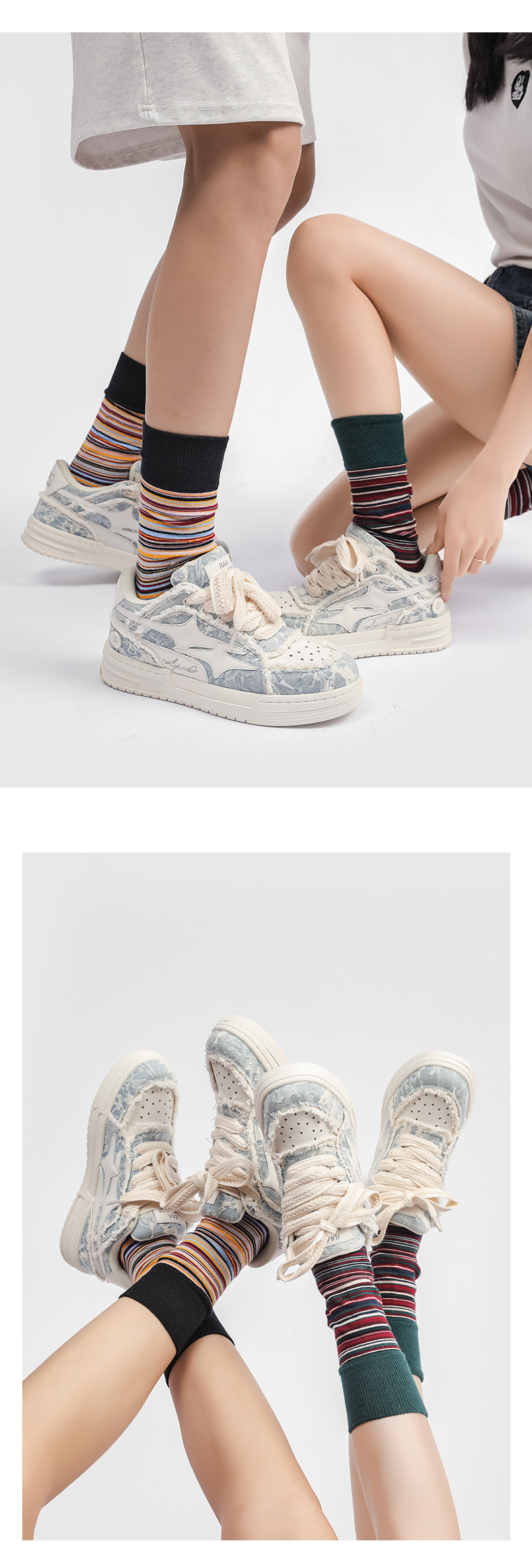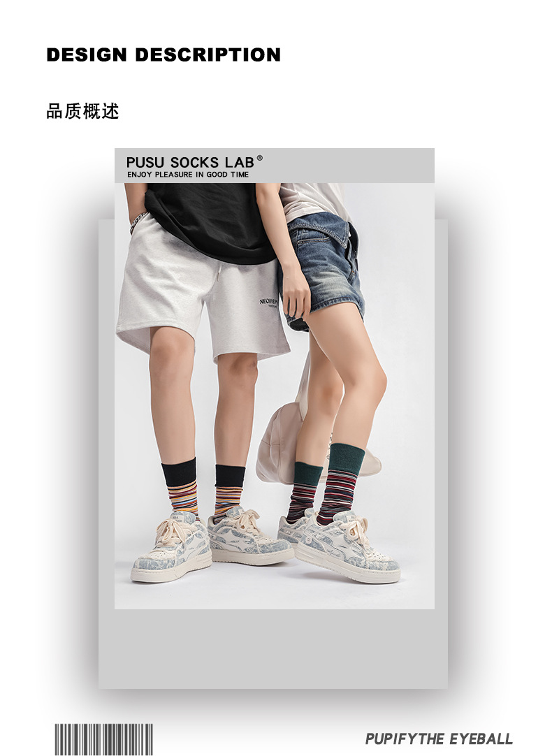 양말 여성용 봄과 가을 한국식 미드 배럴 일본식 간단한 롱 배럴 다채로운 불규칙한 대조 스트라이프 스포츠 스타킹 남성과 여성을위한스토어 가기