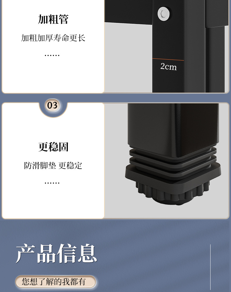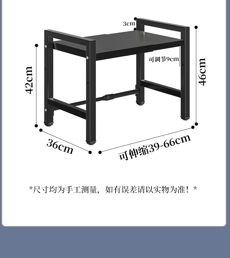 • [사각 튜브 3 층 블랙] 업그레이드 텔레스코픽 + 후크 * 6