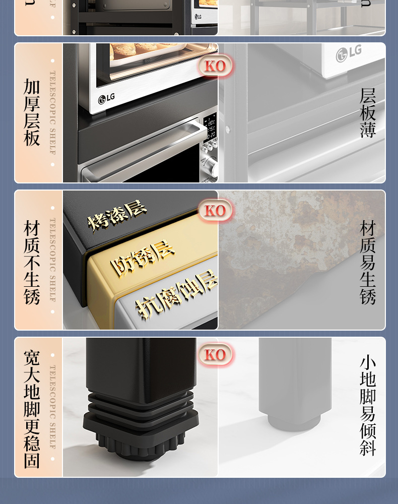 주방 전자레인지 선반 가정용 테이블 다용도 오븐 밥솥 조리기구 다층 수납 스탠드