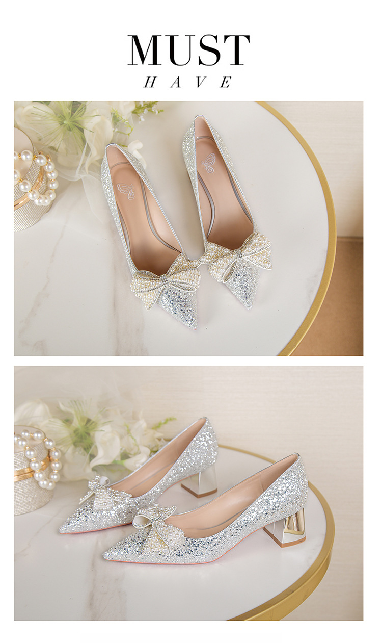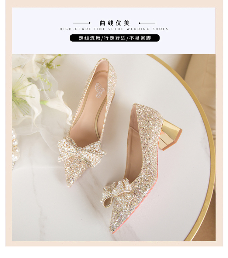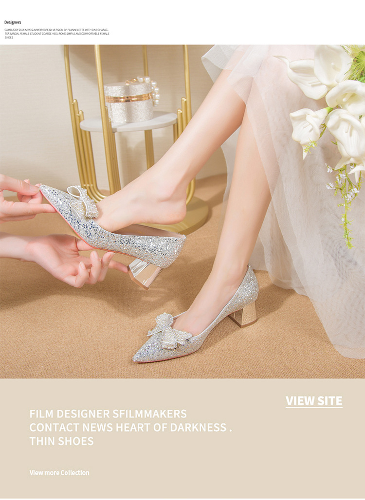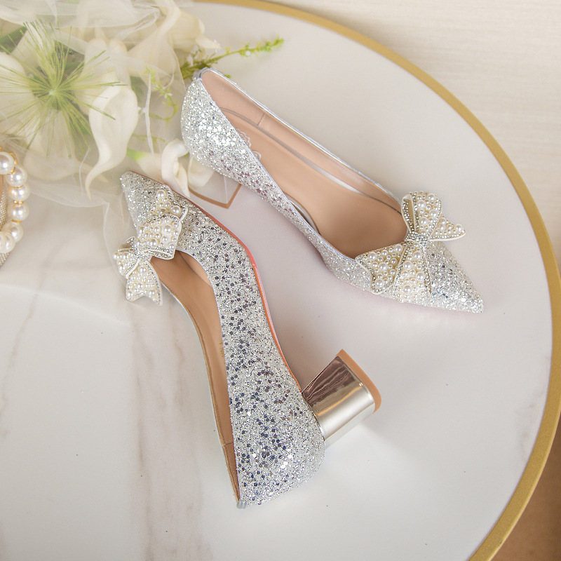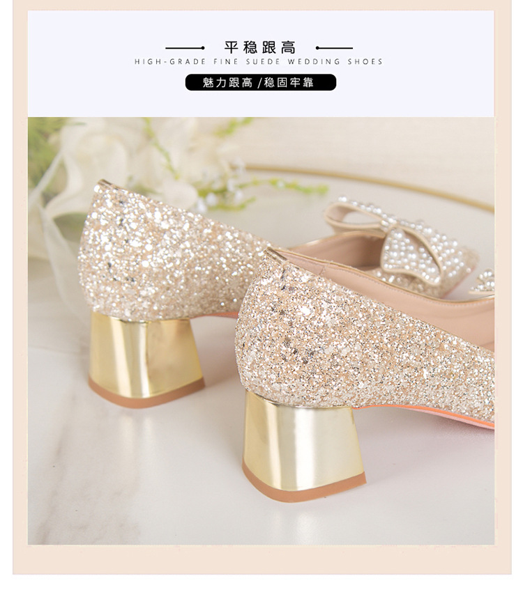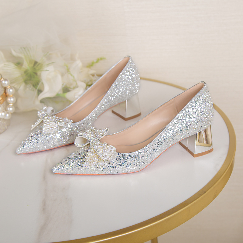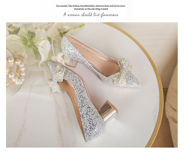 신부 신발 웨딩 신발 여성용 2023 새로운 피곤하지 않은 발 메인 웨딩 신발 거친 굽 들러리 크리스탈 신발 보통 단일 신발을 착용스토어 가기