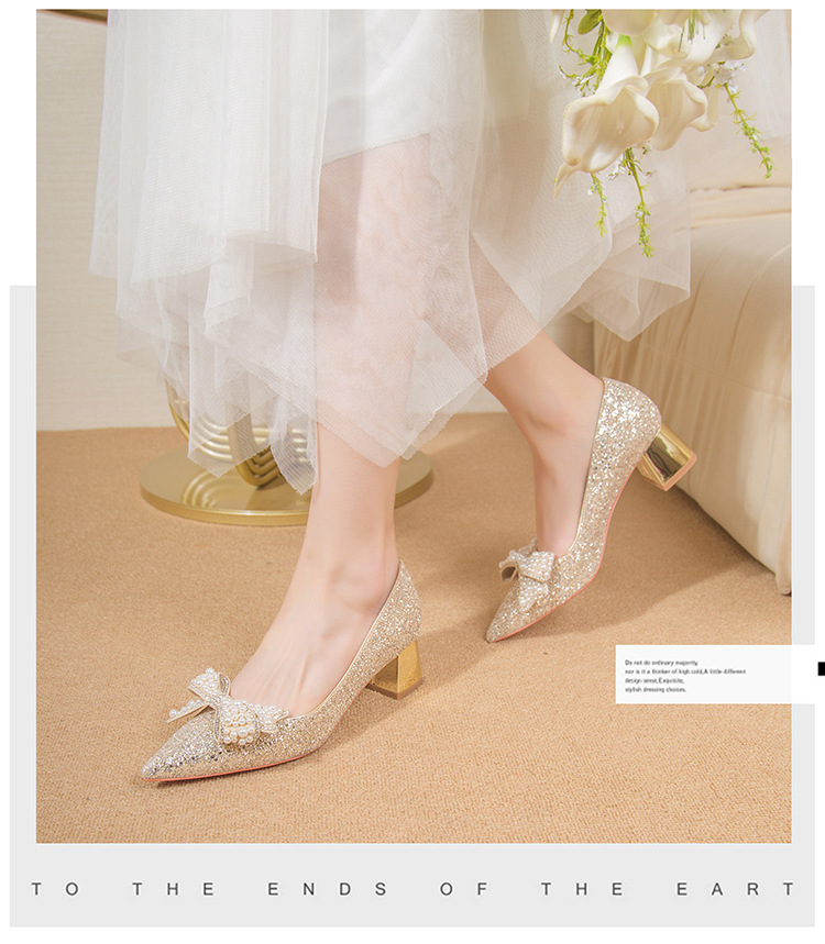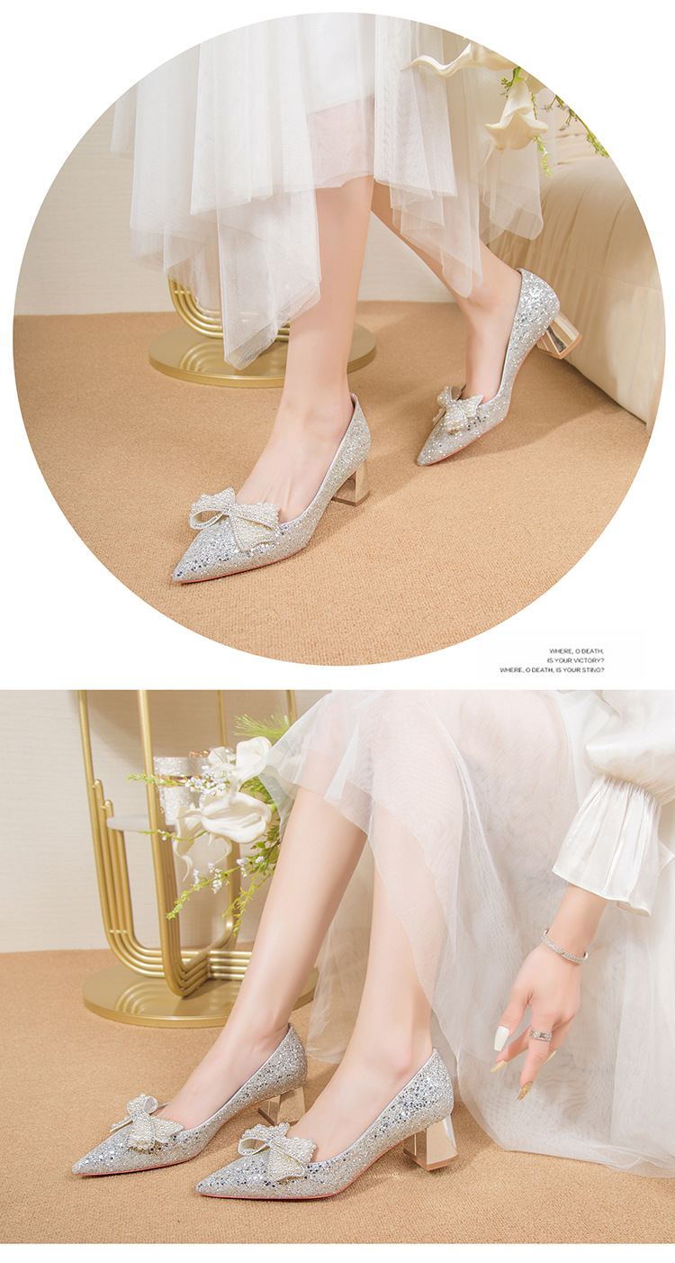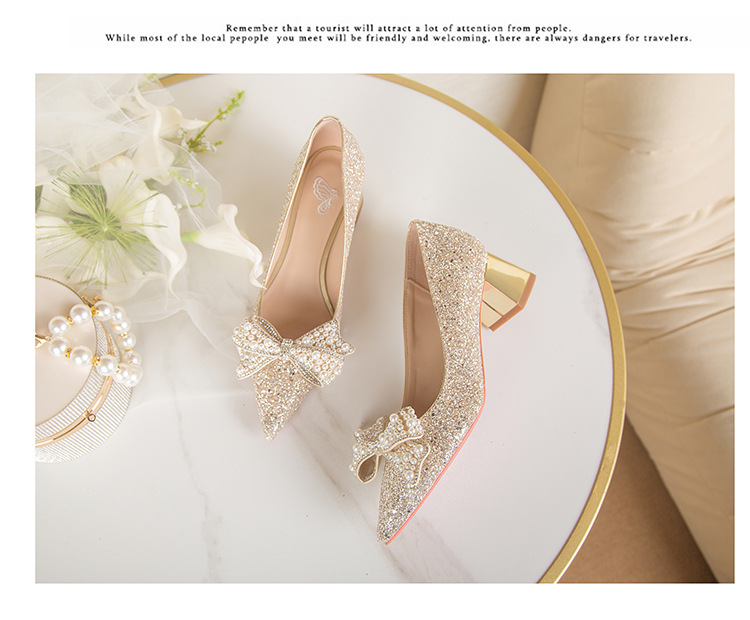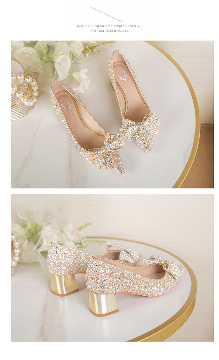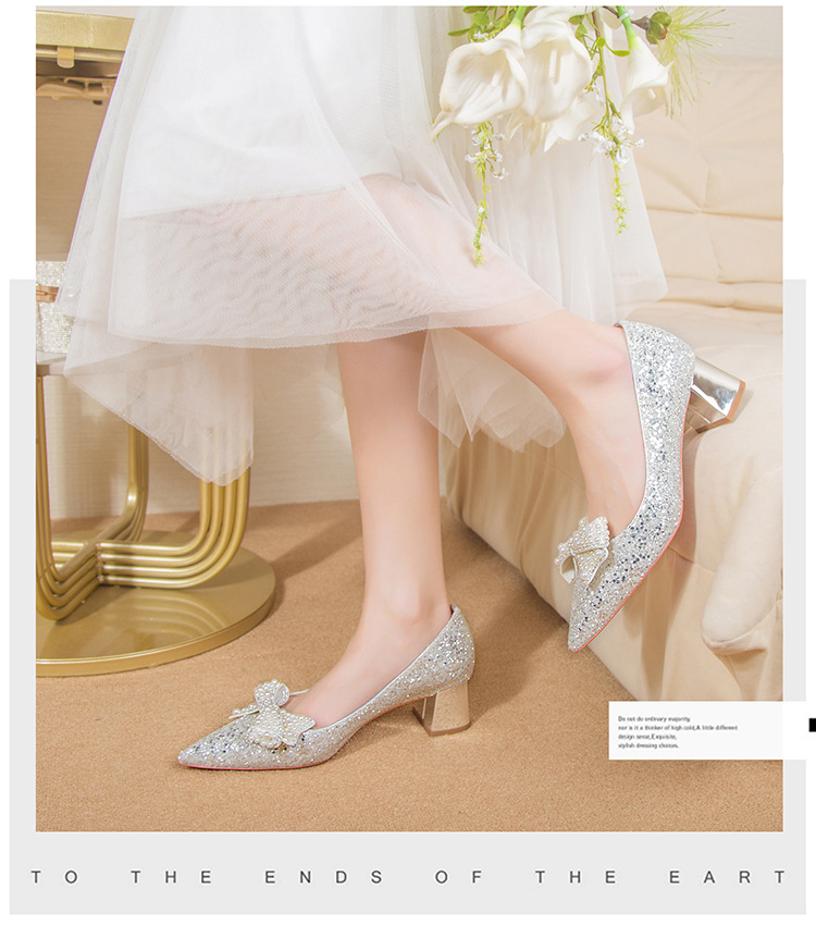 신부 신발 웨딩 신발 여성용 2023 새로운 피곤하지 않은 발 메인 웨딩 신발 거친 굽 들러리 크리스탈 신발 보통 단일 신발을 착용스토어 가기
