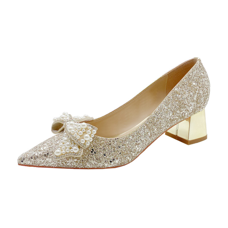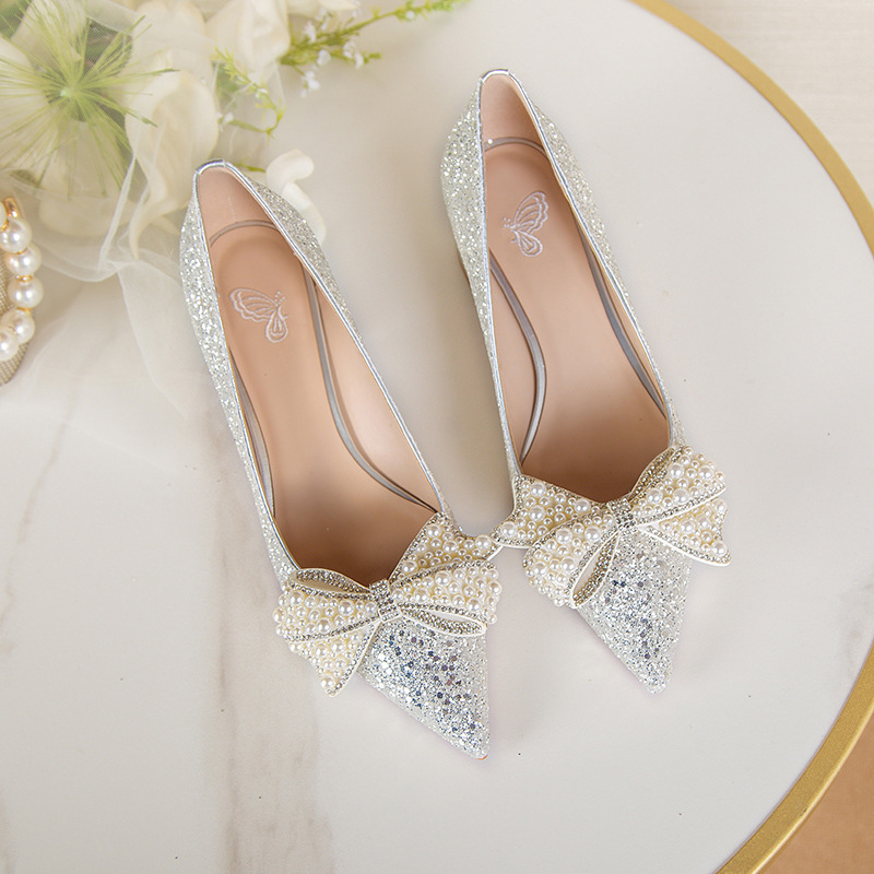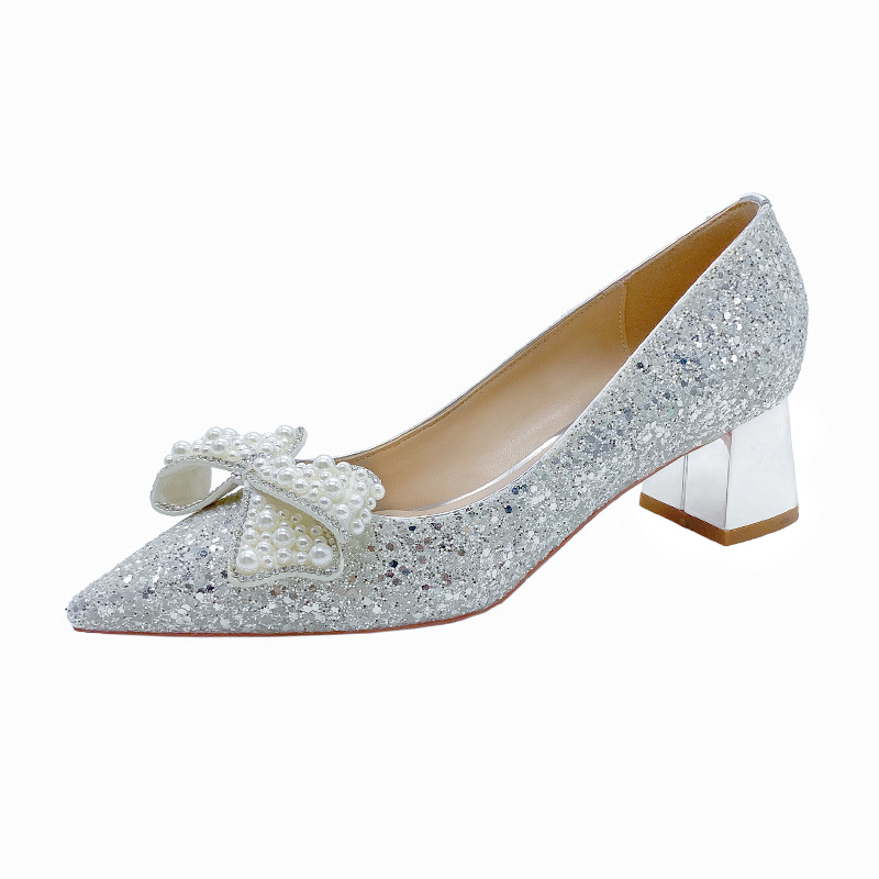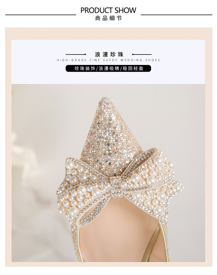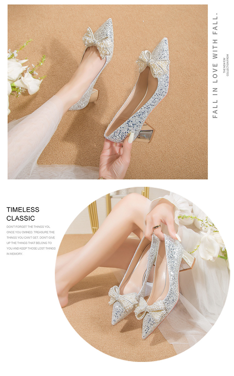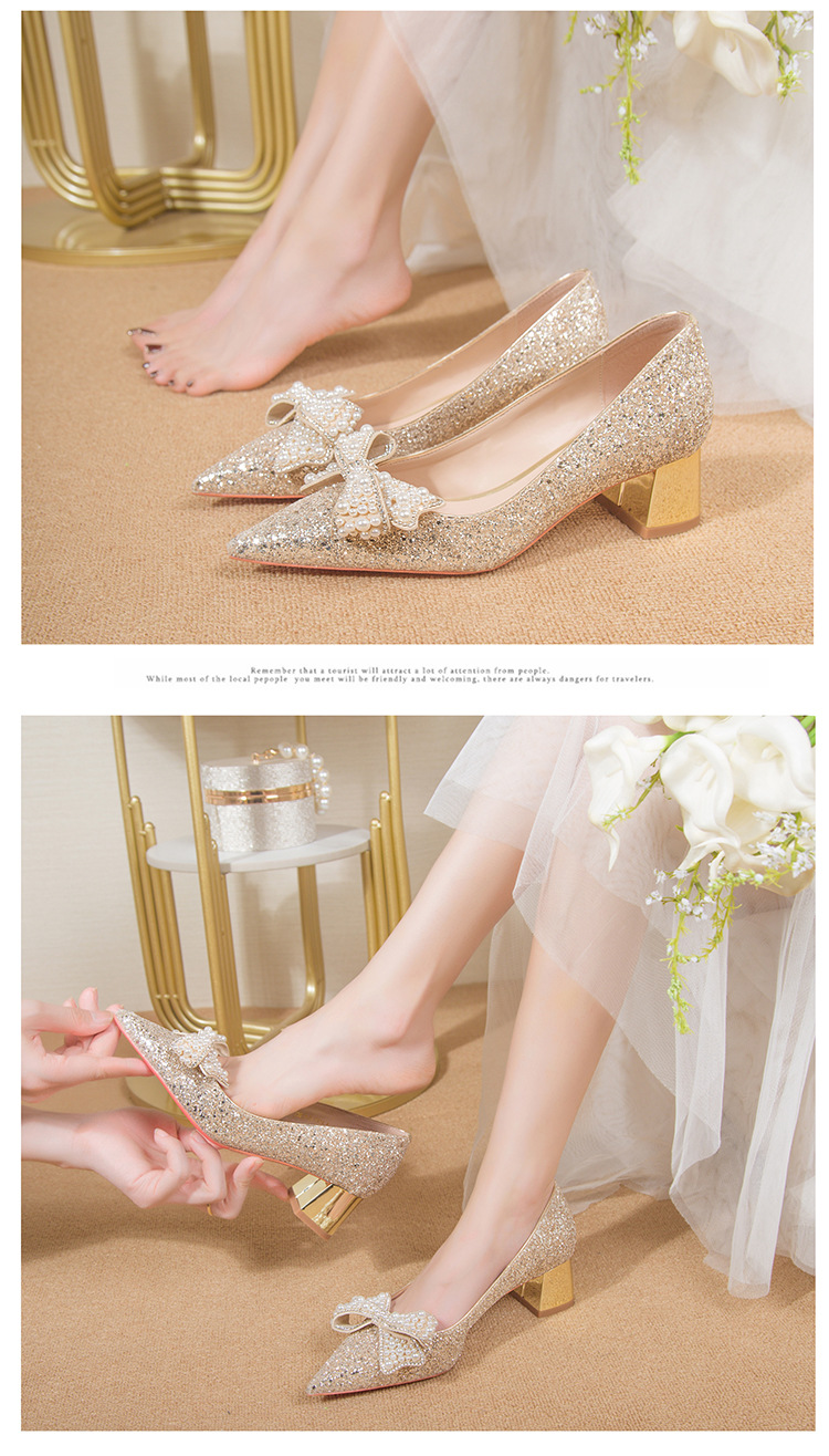 신부 신발 웨딩 신발 여성용 2023 새로운 피곤하지 않은 발 메인 웨딩 신발 거친 굽 들러리 크리스탈 신발 보통 단일 신발을 착용스토어 가기