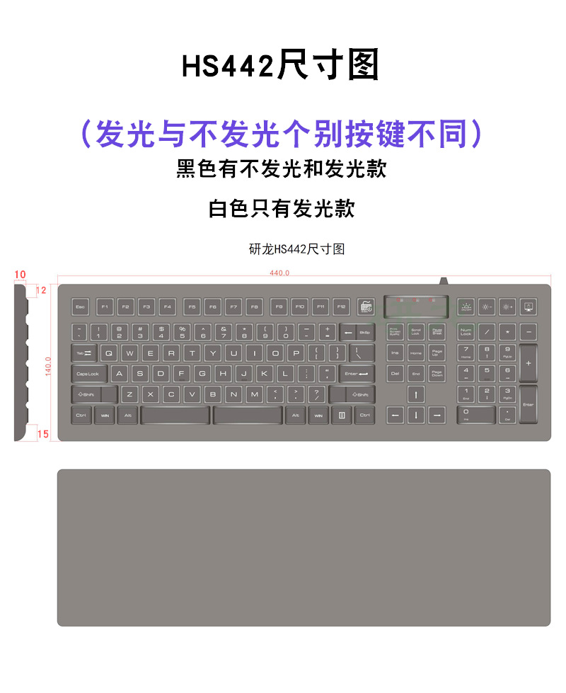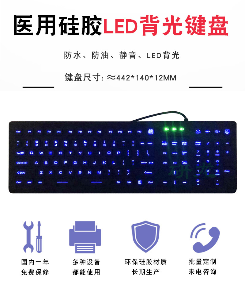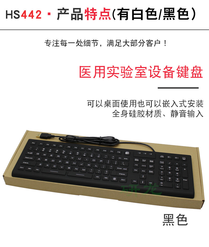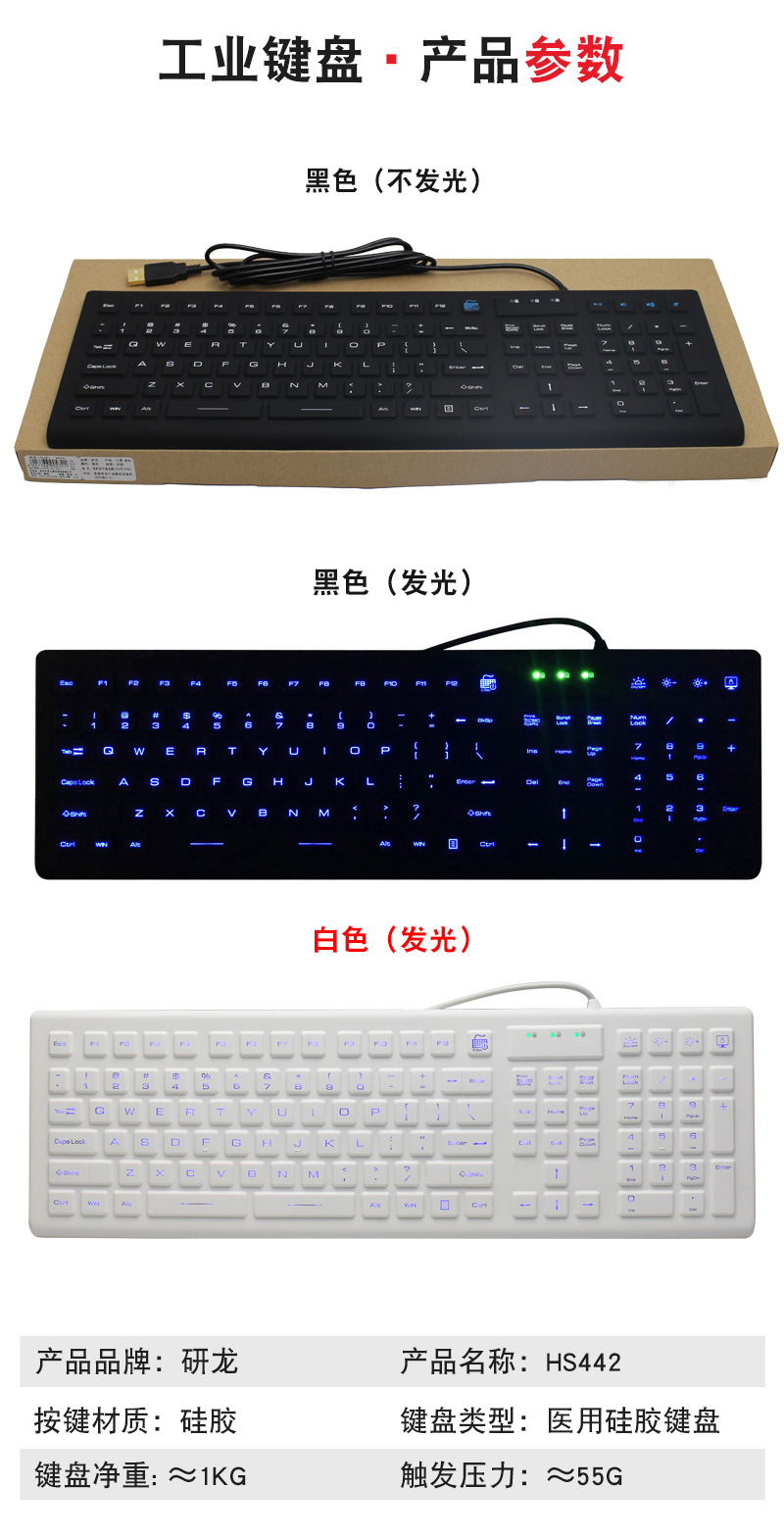 Yanlong HS442 실리콘 산업용 의료 실험실 키보드 IP67 방진 및 방수 최대 IP68 음소거 및 내유성