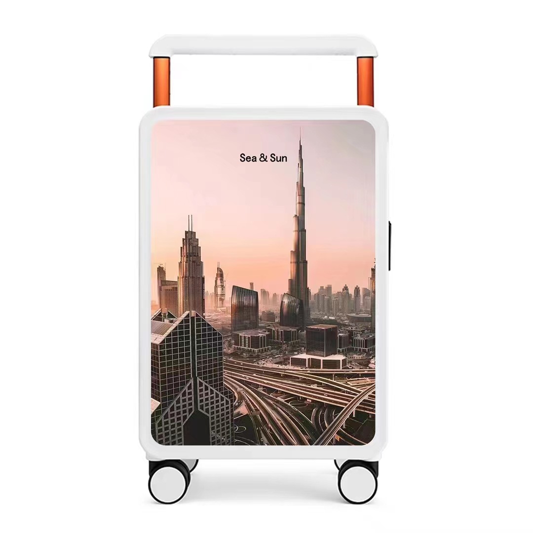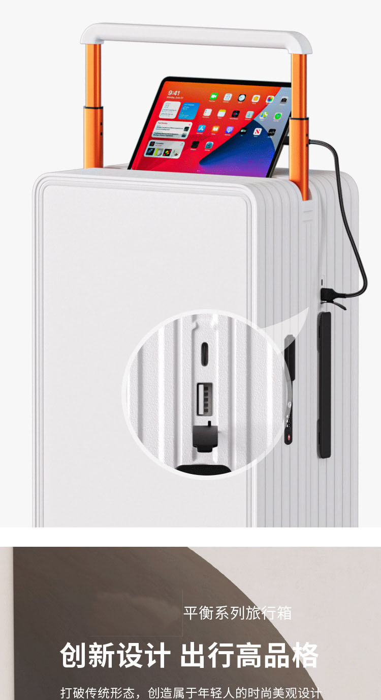 此款产品是当前很流行的宽拉杆时尚拉杆箱,都有现货,分两个尺寸,20“和24“,20”可登机,24寸需要托运,颜色有六个,大家可以浏览详情页,都是实物拍摄,此款产品现在给大家做活动价格包邮,如有疑问可以询问客服,13924294449 谢谢大家~ (可以LOGO定制哦 )