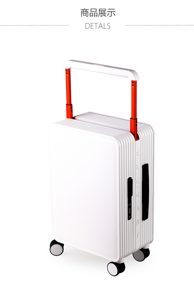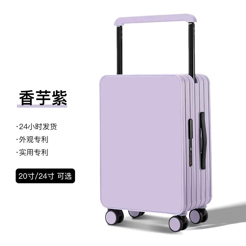 此款产品是当前很流行的宽拉杆时尚拉杆箱,都有现货,分两个尺寸,20“和24“,20”可登机,24寸需要托运,颜色有15个,大家可以浏览详情页,都是实物拍摄,此款产品现在给大家做活动价格包邮,如有疑问可以询问客服,13924294449 谢谢大家~ (可以LOGO定制哦